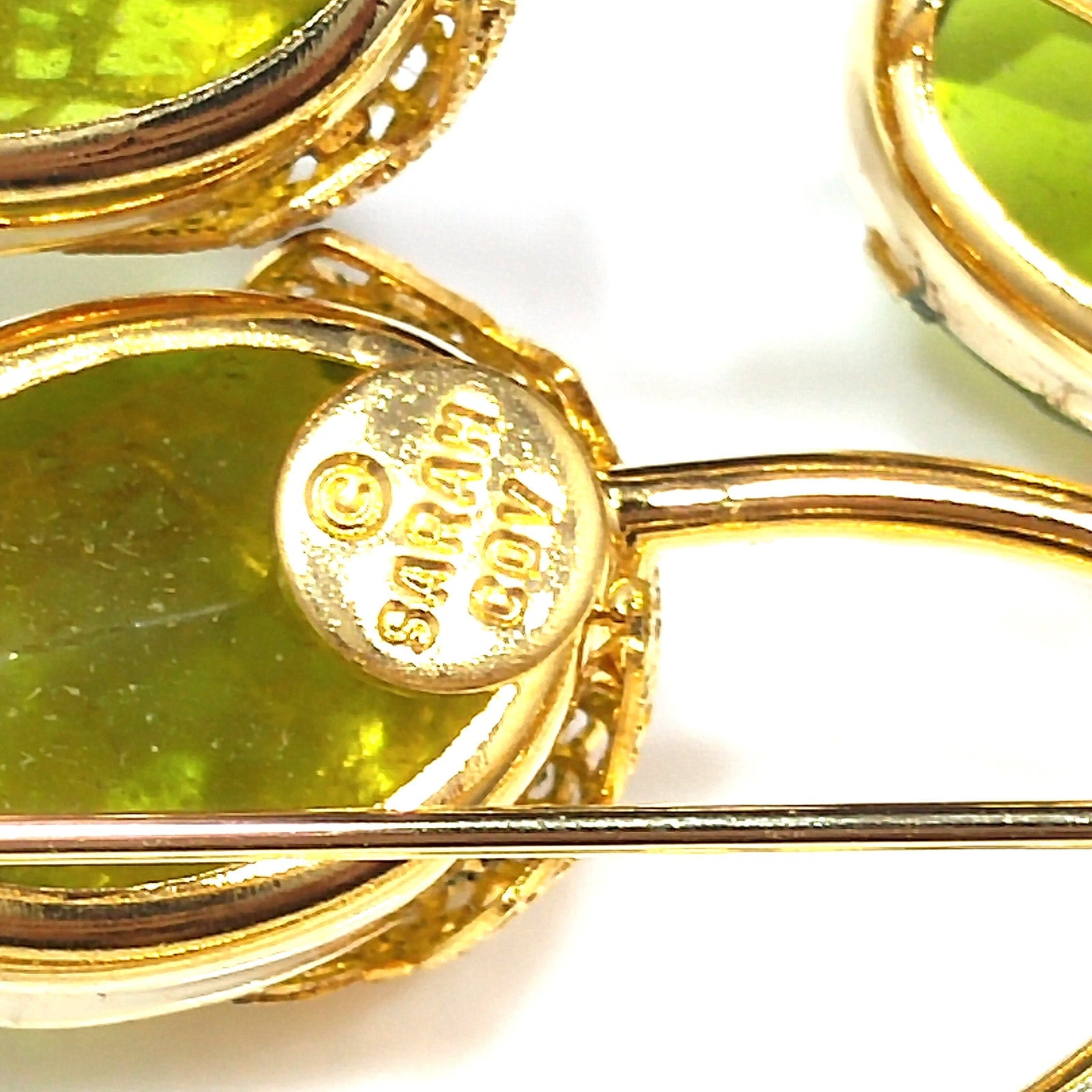 Sarah Coventry Touch of Elegance Green Crystal Brooch Gold Tone 1970s