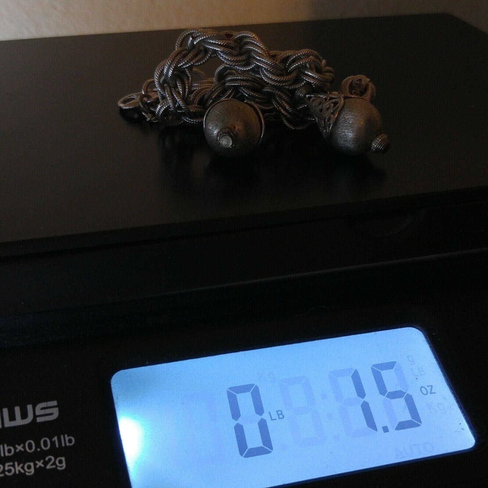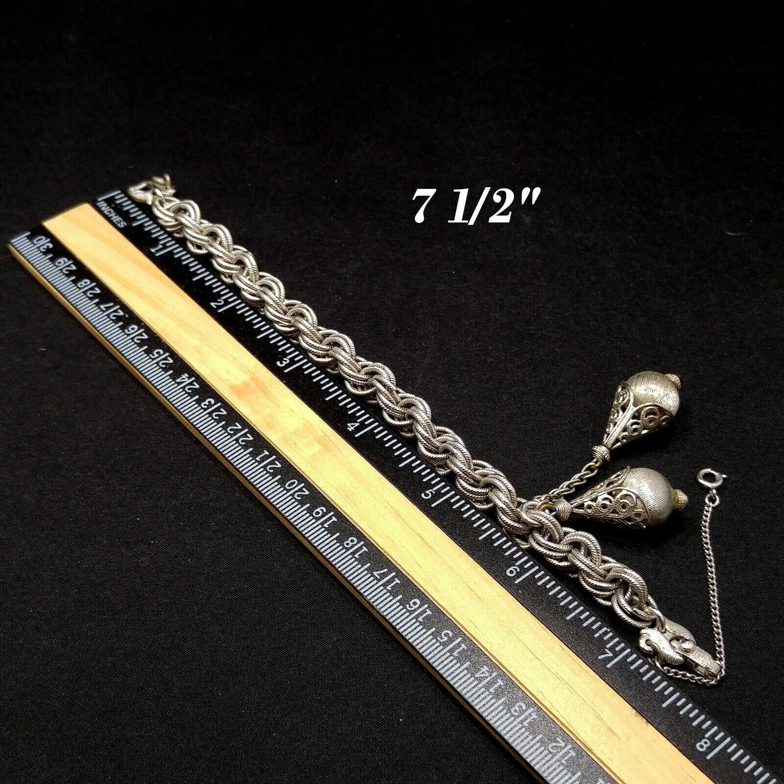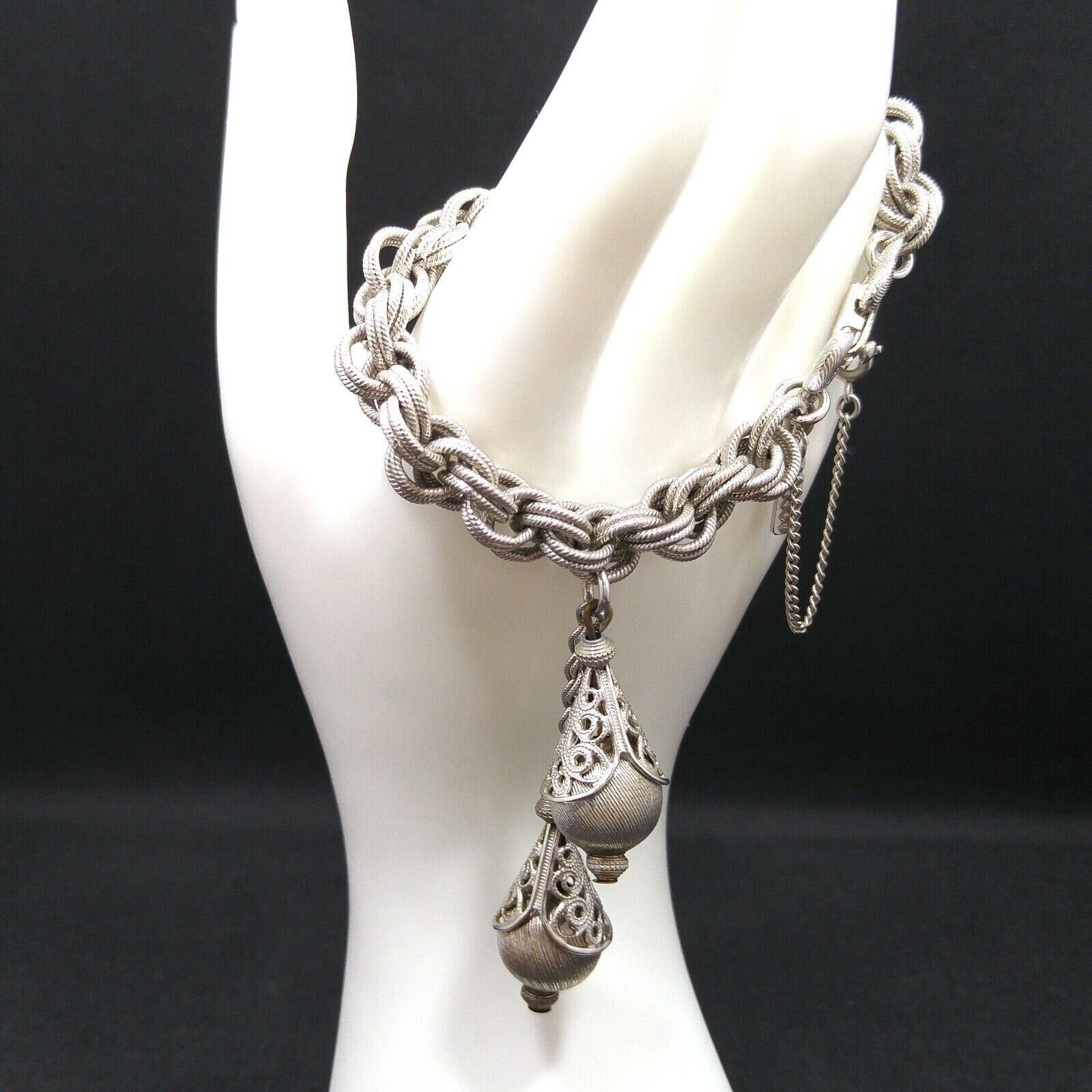*Description: This is a beautiful vintage Monet silver toned bracelet that was part of the "Bolero Series" with two dangling tassels from the 1960s. This is a book piece and is found in "Monet, the Master Jewelers" by Alice Vega, on page 191. The silver tone is probably rhodium plating. It is a unique style and is a great Monet vintage design. This would be a great addition to your vintage jewelry collection or make a great vintage gift!