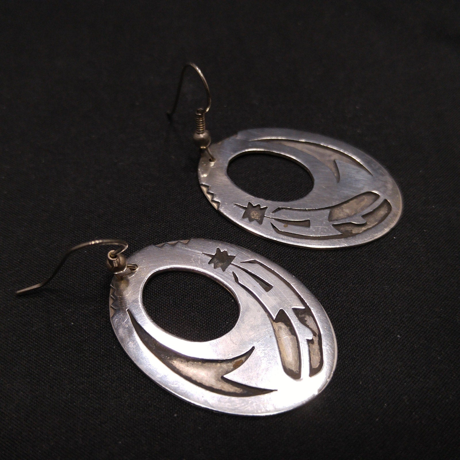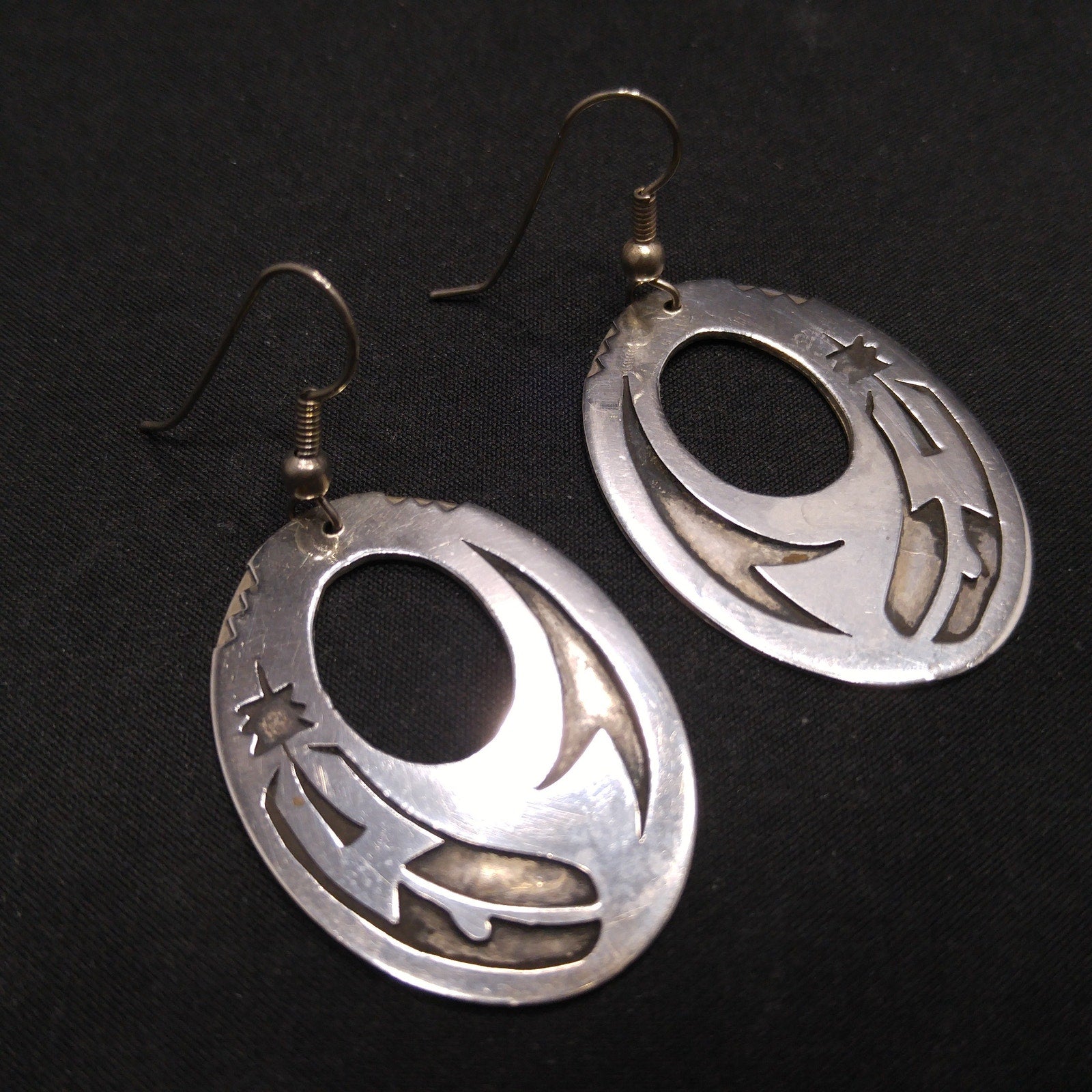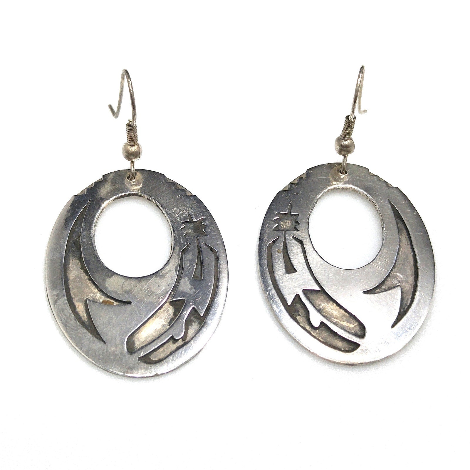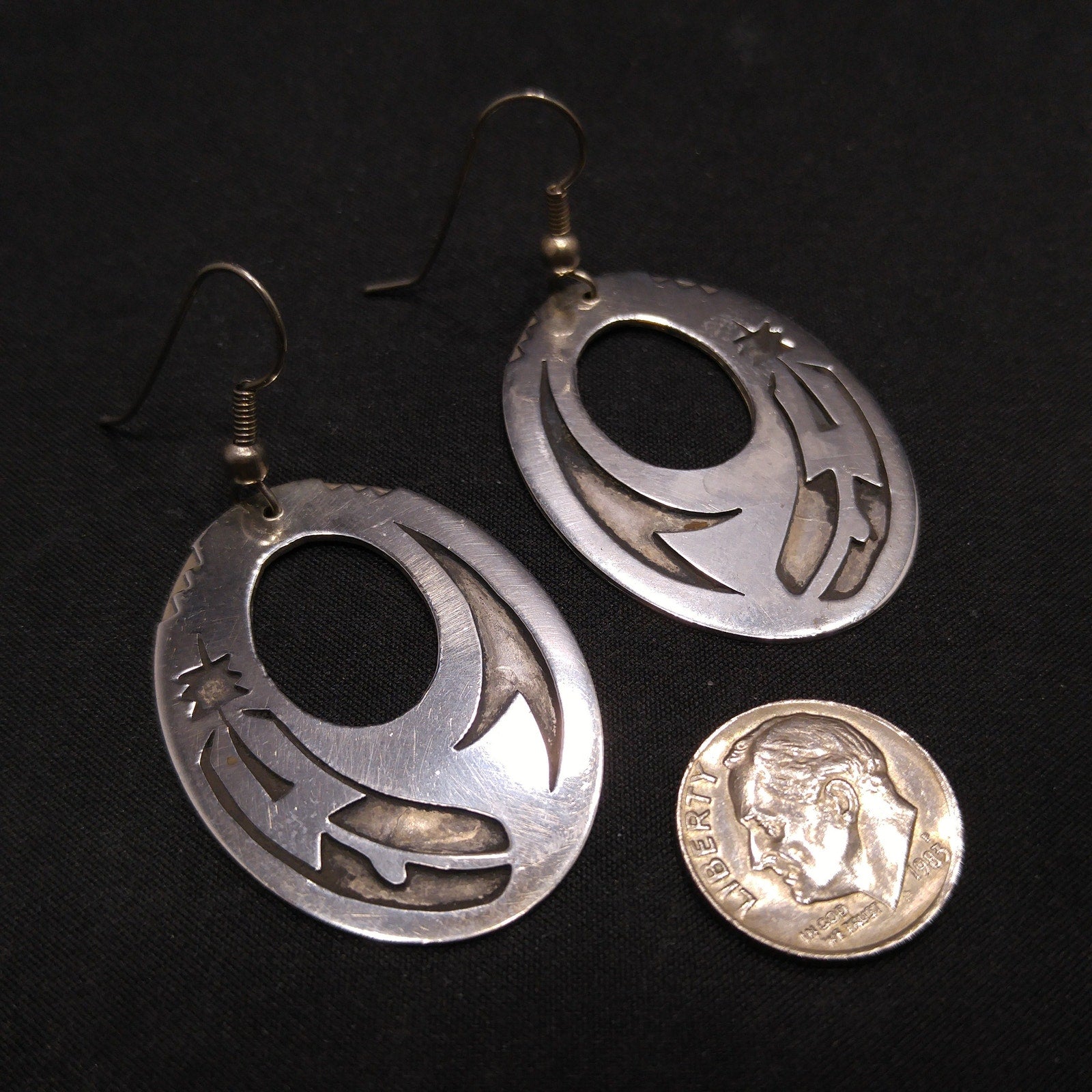 Silver Navajo Handmade Earrings, Unknown Mark, Vintage Jewelry