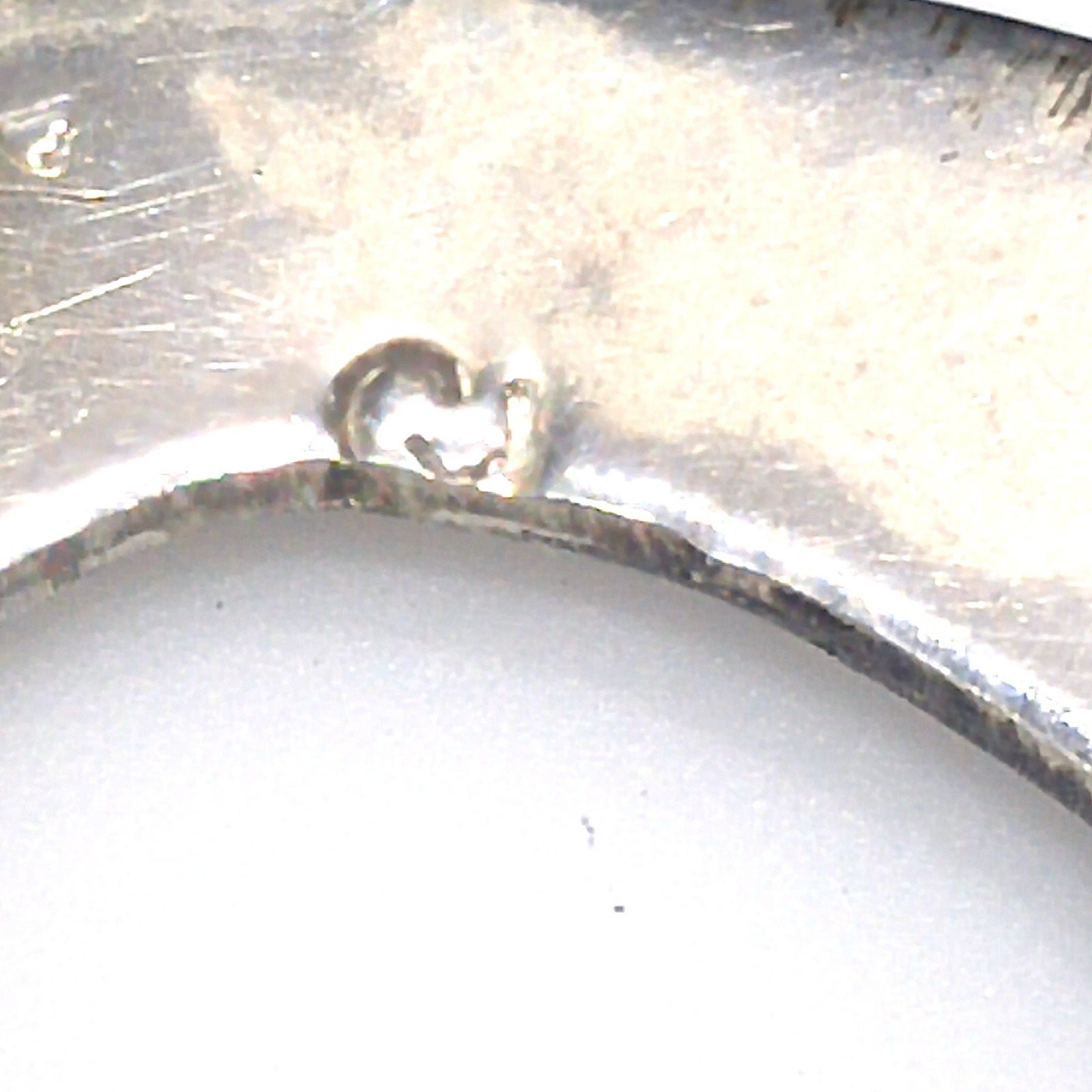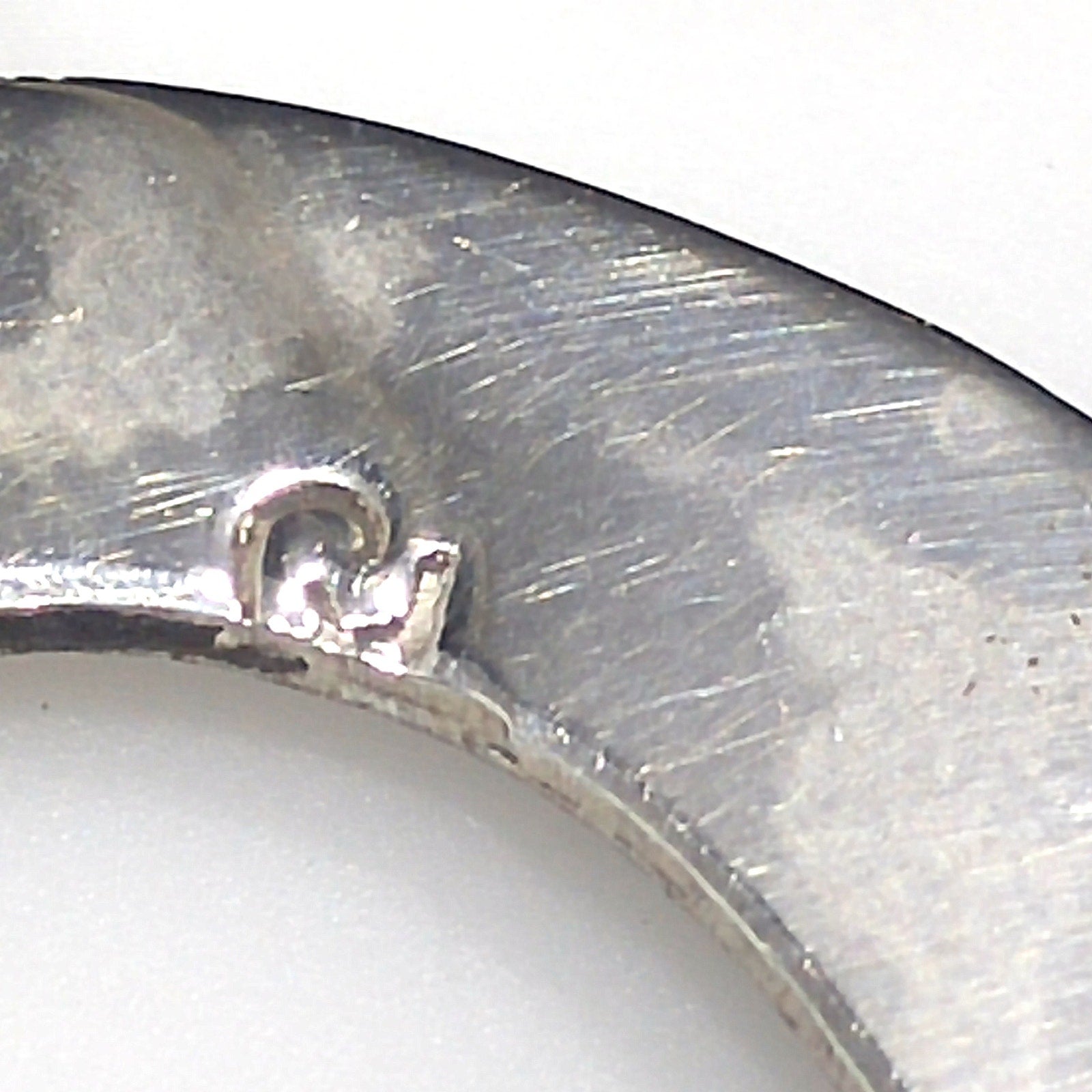 *Description: This is a Navajo pair of silver handmade earrings with unknown markings on the back from prior to 2000. These earrings were sold as Alvin Joe Navajo but I have been unable to verify this Native American designer by this hallmark. Please review the photo images of the hallmarks included. I did dip these briefly in silver cleaner to brighten the surface. There was some black enamel worn away from age within the design. They are definitely a vintage pair of hand crafted Native American earrings. This would be a great addition to your vintage jewelry collection or make a great vintage gift!