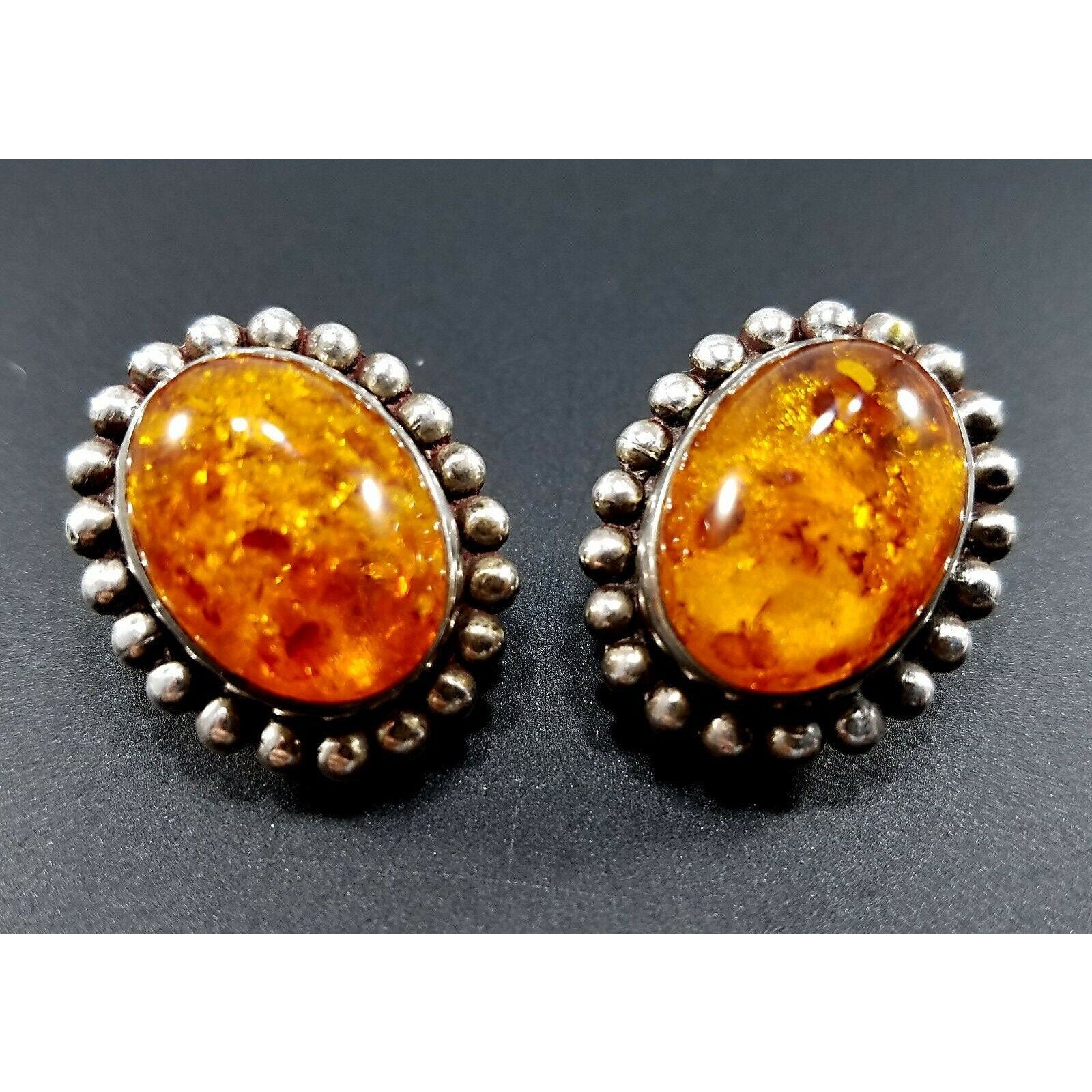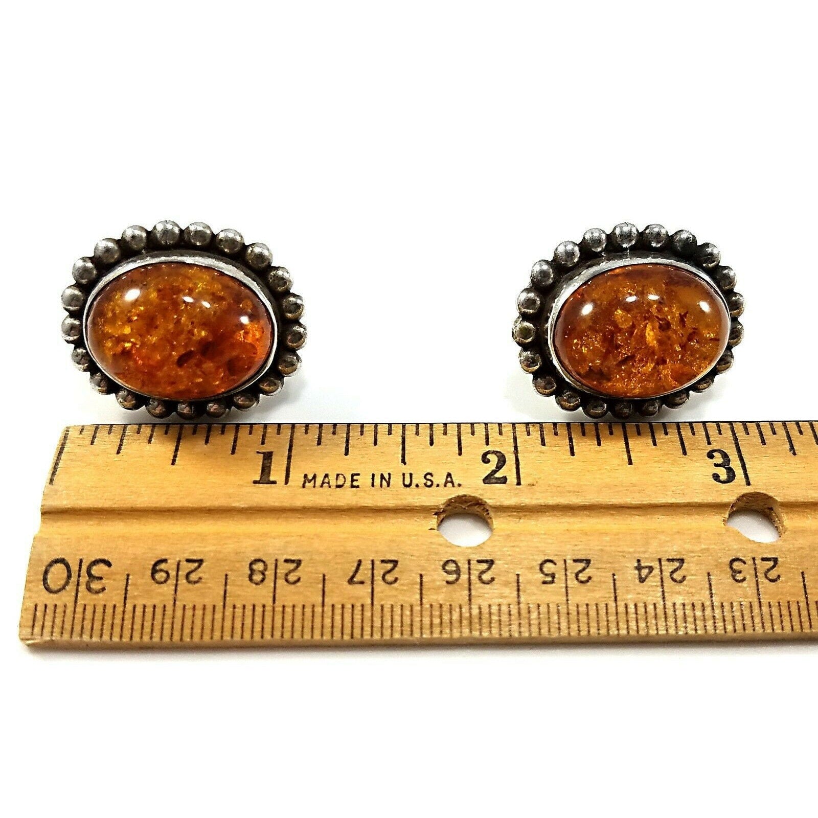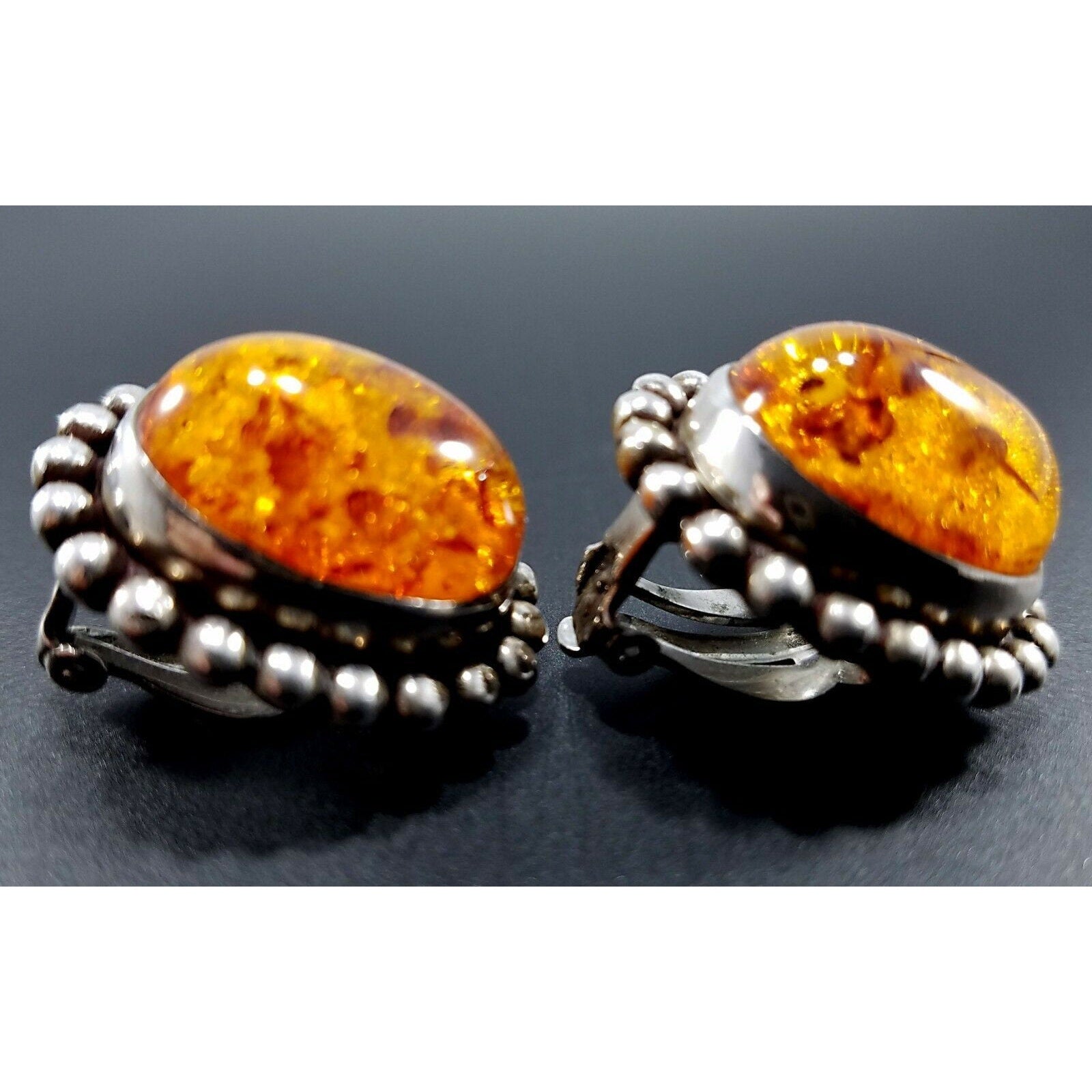 Stephen Dweck Amber Oval Clip Earrings, Sterling Silver, Vintage Jewelry