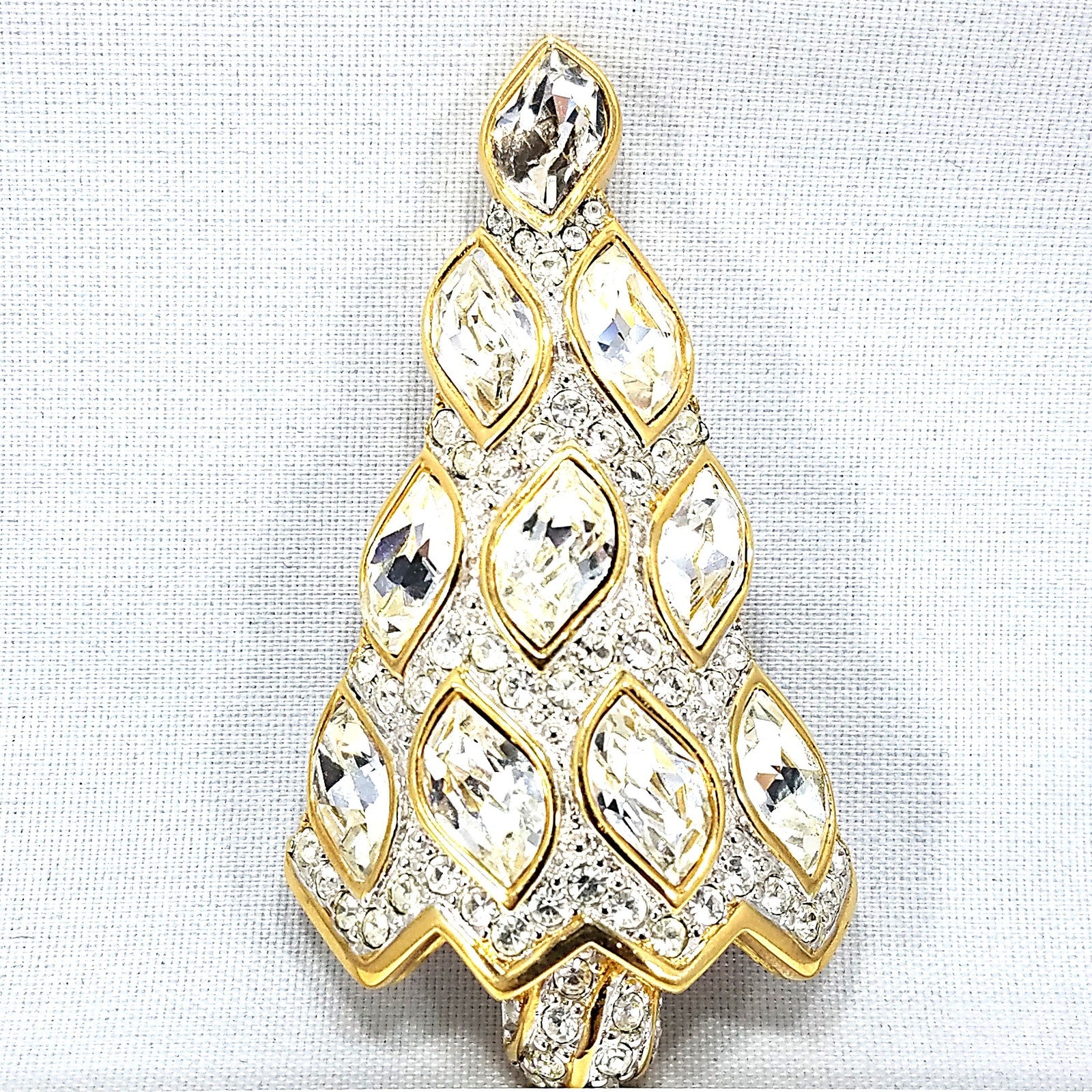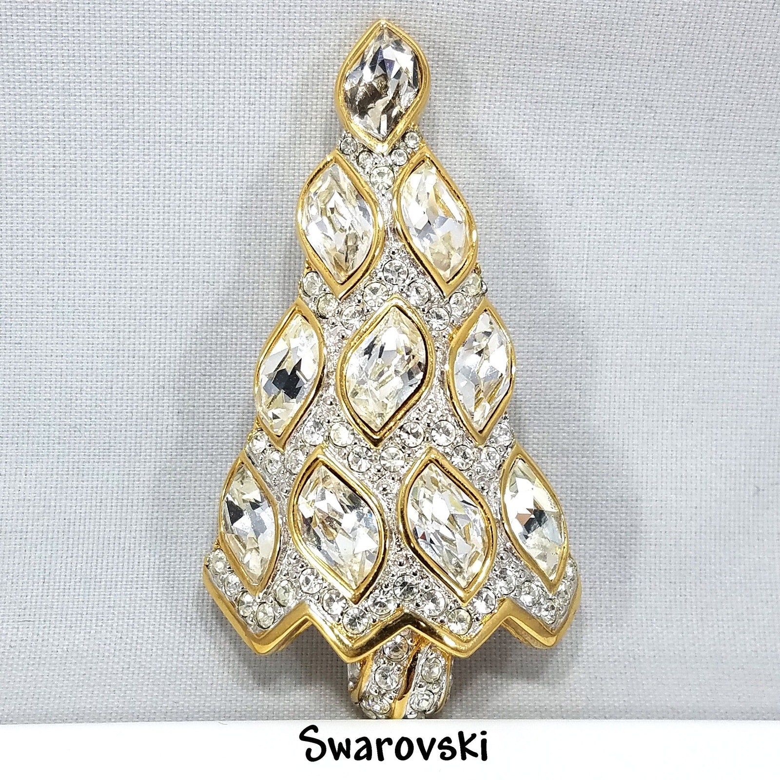 Swarovski Christmas Tree Brooch, 1996 Collectible, Skewed Navette Rhinestones, Vintage Jewelry