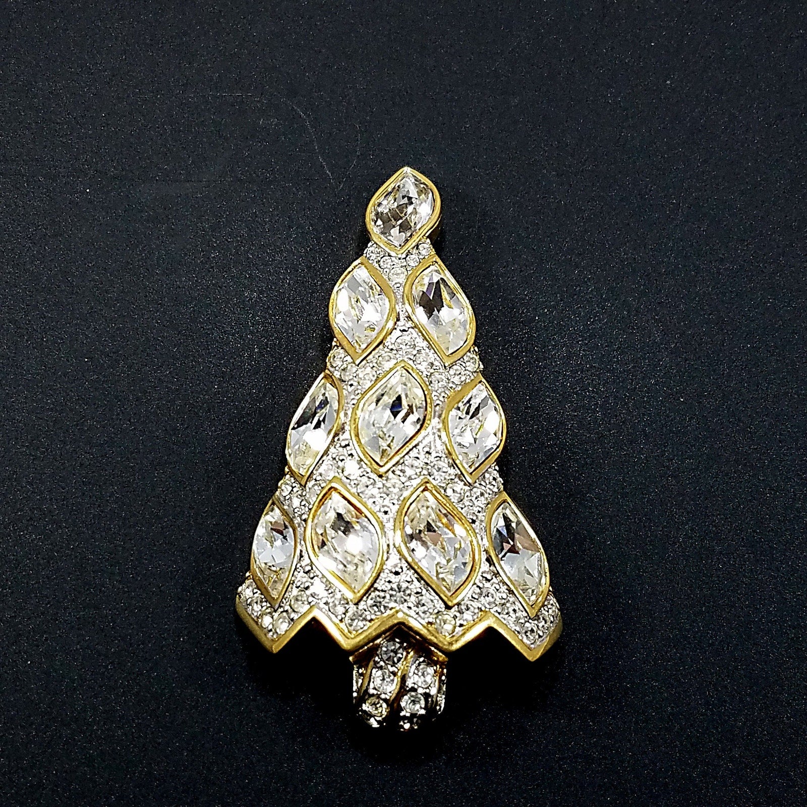 A note on condition: the top crystal rhinestone has a slightly gray tone. This appears to be a foil-related flaw rather than damage, giving it the look of a tree topper in a different shade. The stone itself is intact and not cracked.