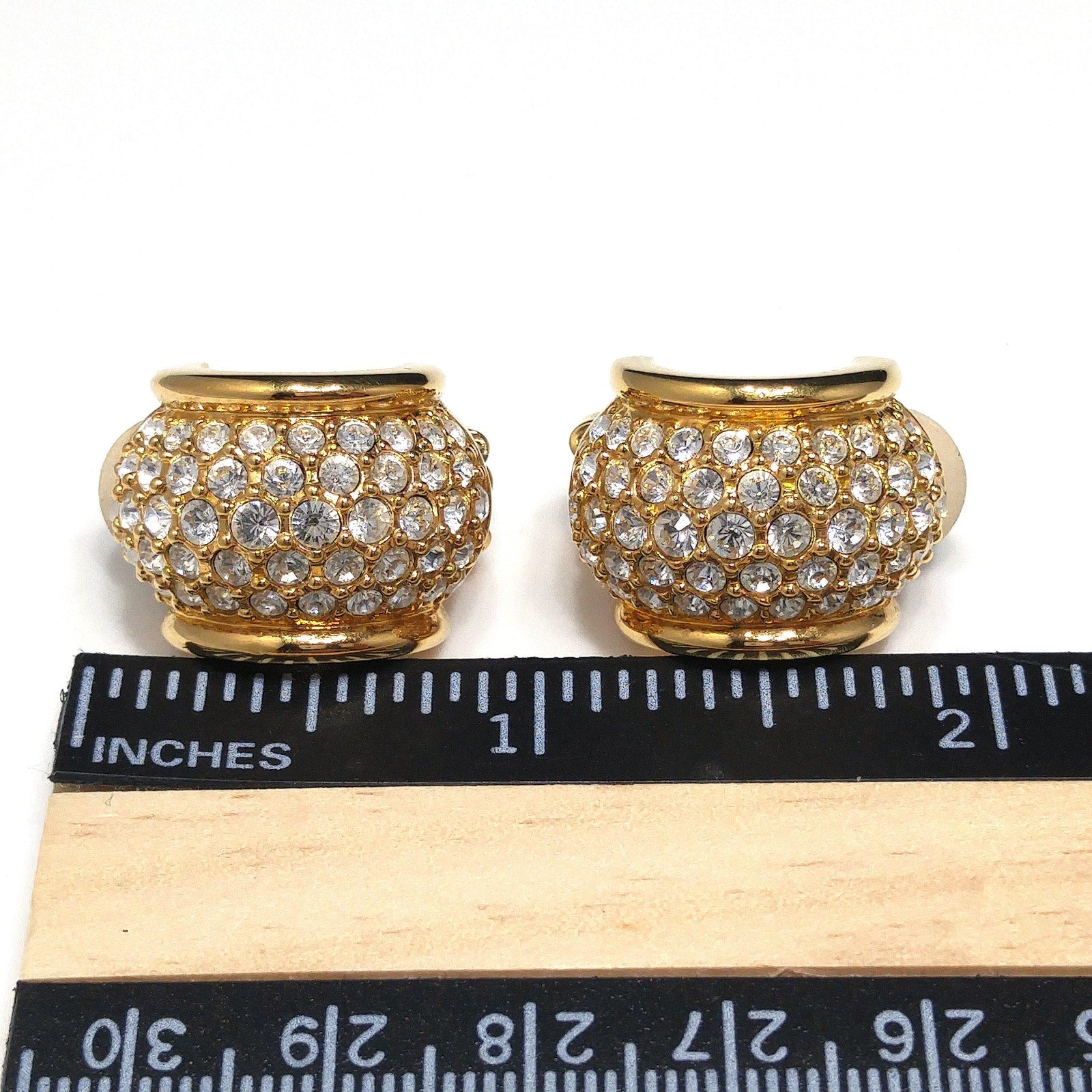 Swarovski Clear Pave Wide Hoop Earrings, Gold Plated Clips, 1990s Vintage Jewelry