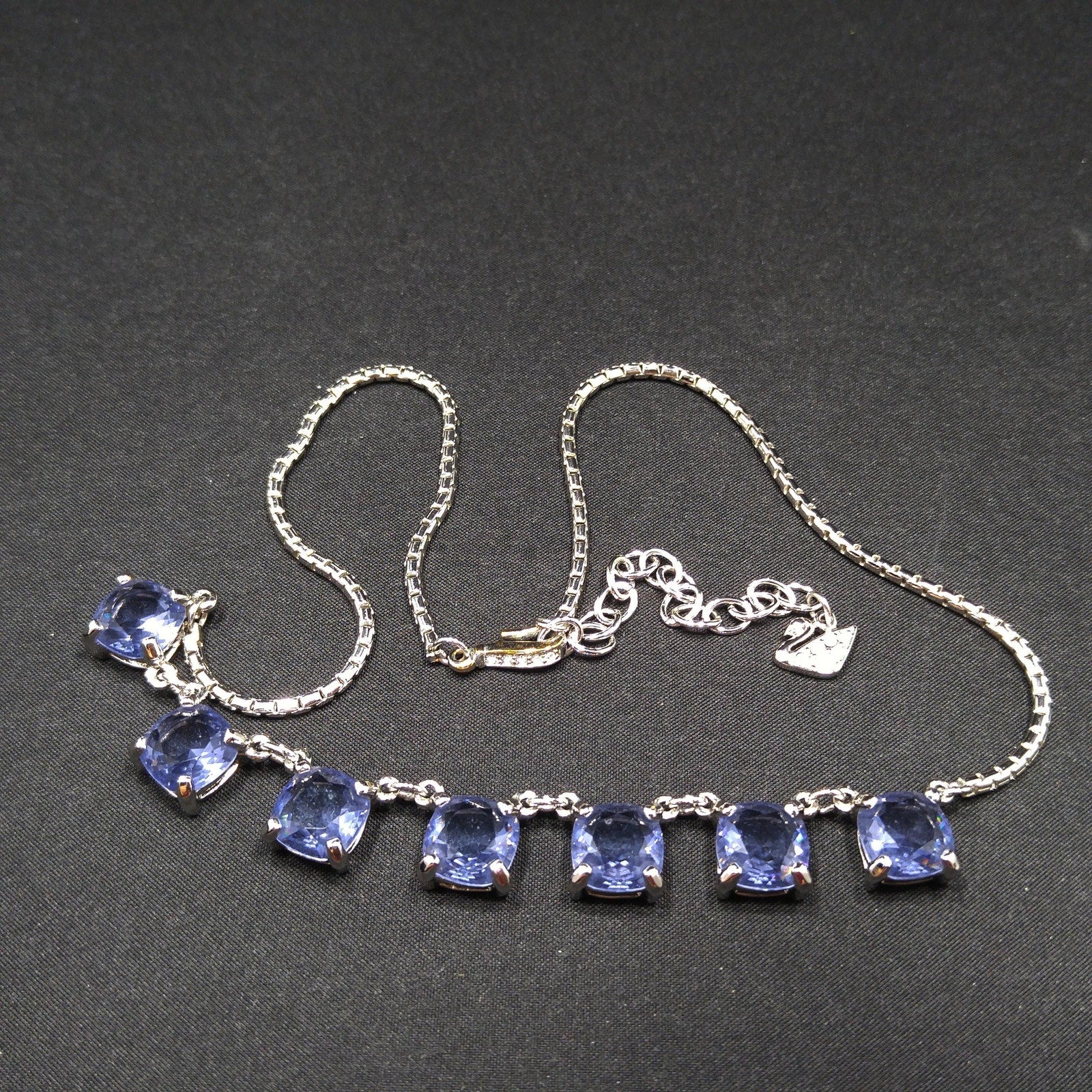 Swarovski Swan Logo Necklace, Blue Lavender Crystals, Art Deco Style Vintage