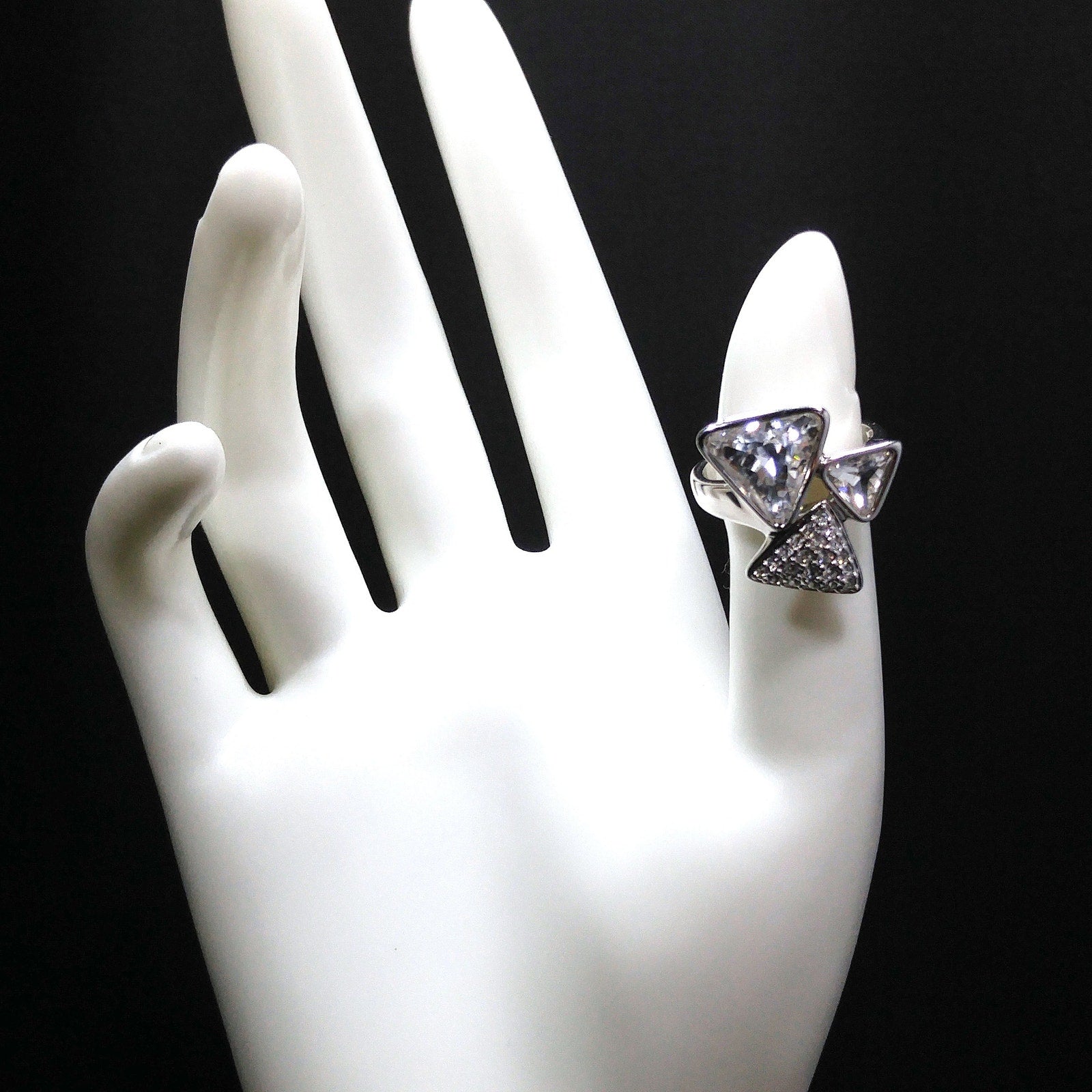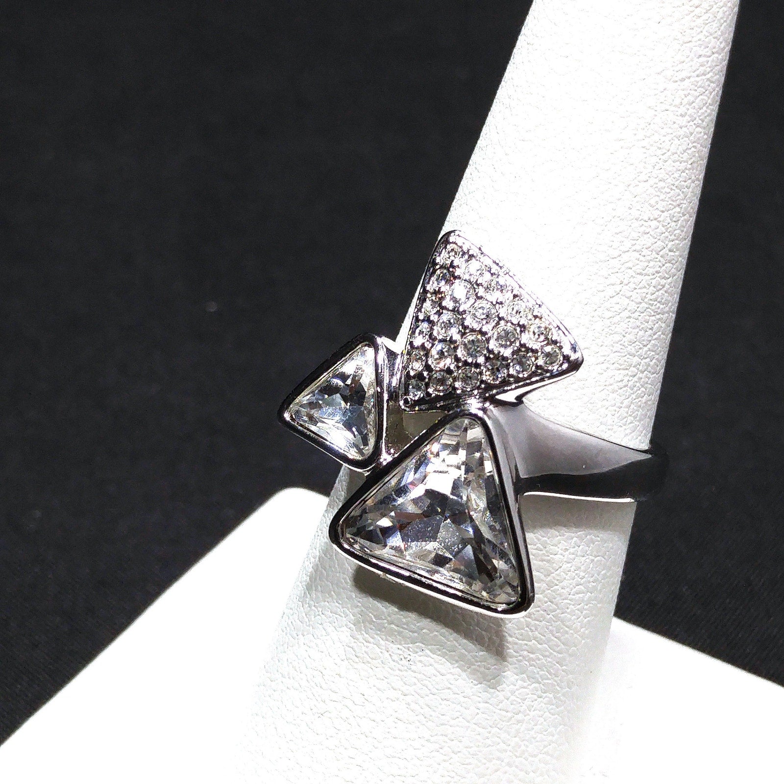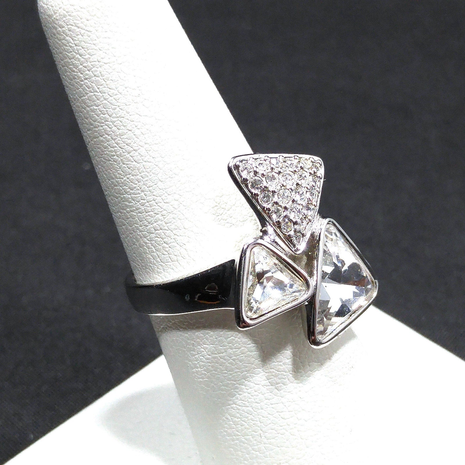 Swarovski Three Triangle Ring, Crystal & Pave, Rhodium Plated, Size 7.5
