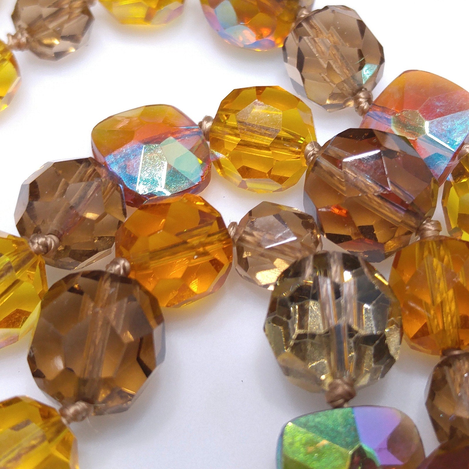 Topaz Crystal Necklace Bracelet Earrings Set, Aurora Borealis, 1960s Vintage Jewelry