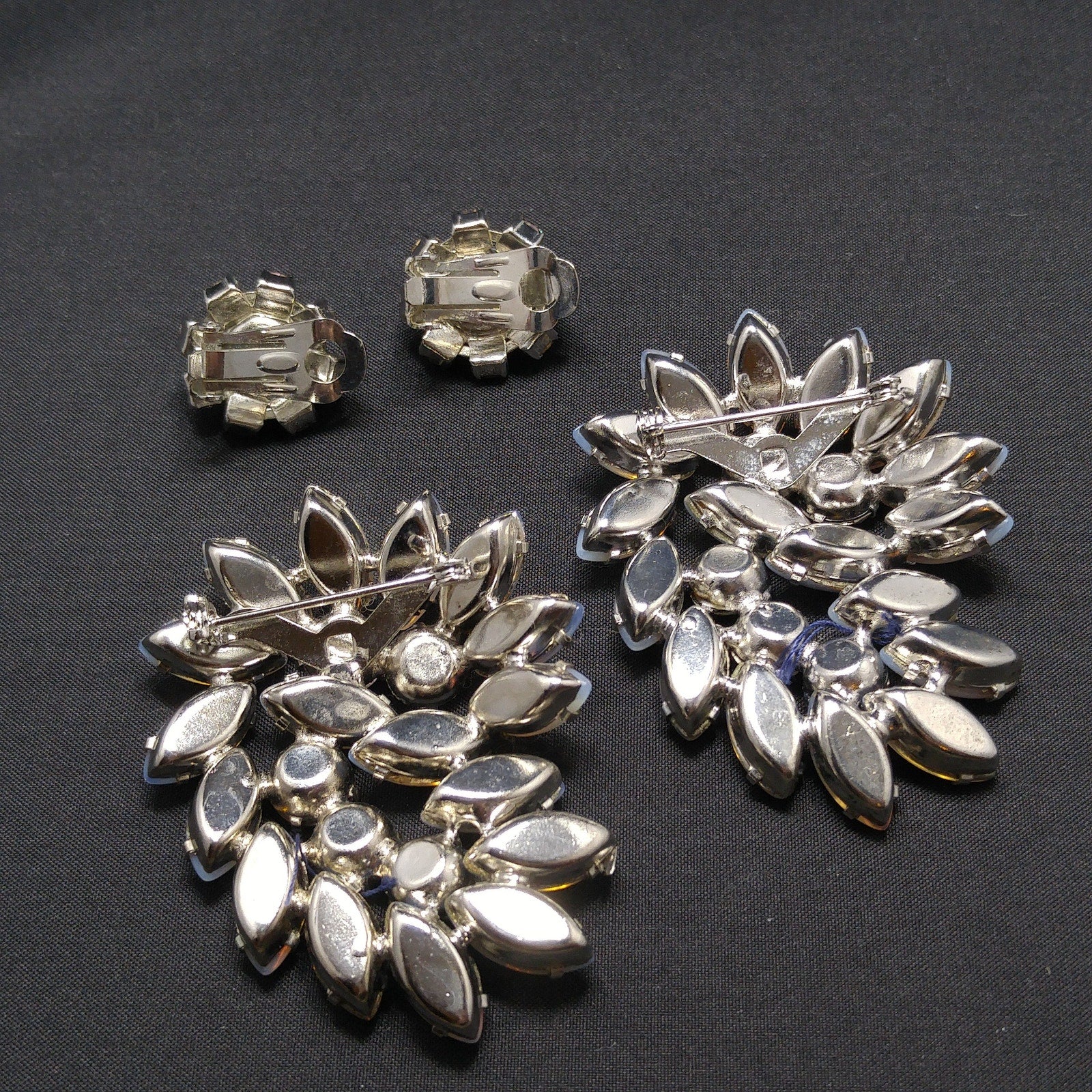 *Approximate Measurements: Two Brooches Length - 2 1/4 Inches, Two Brooches Width - 2 Inches, Earrings Length & Width - 3/4 Inch, Total Weight - 1.9 Ounces