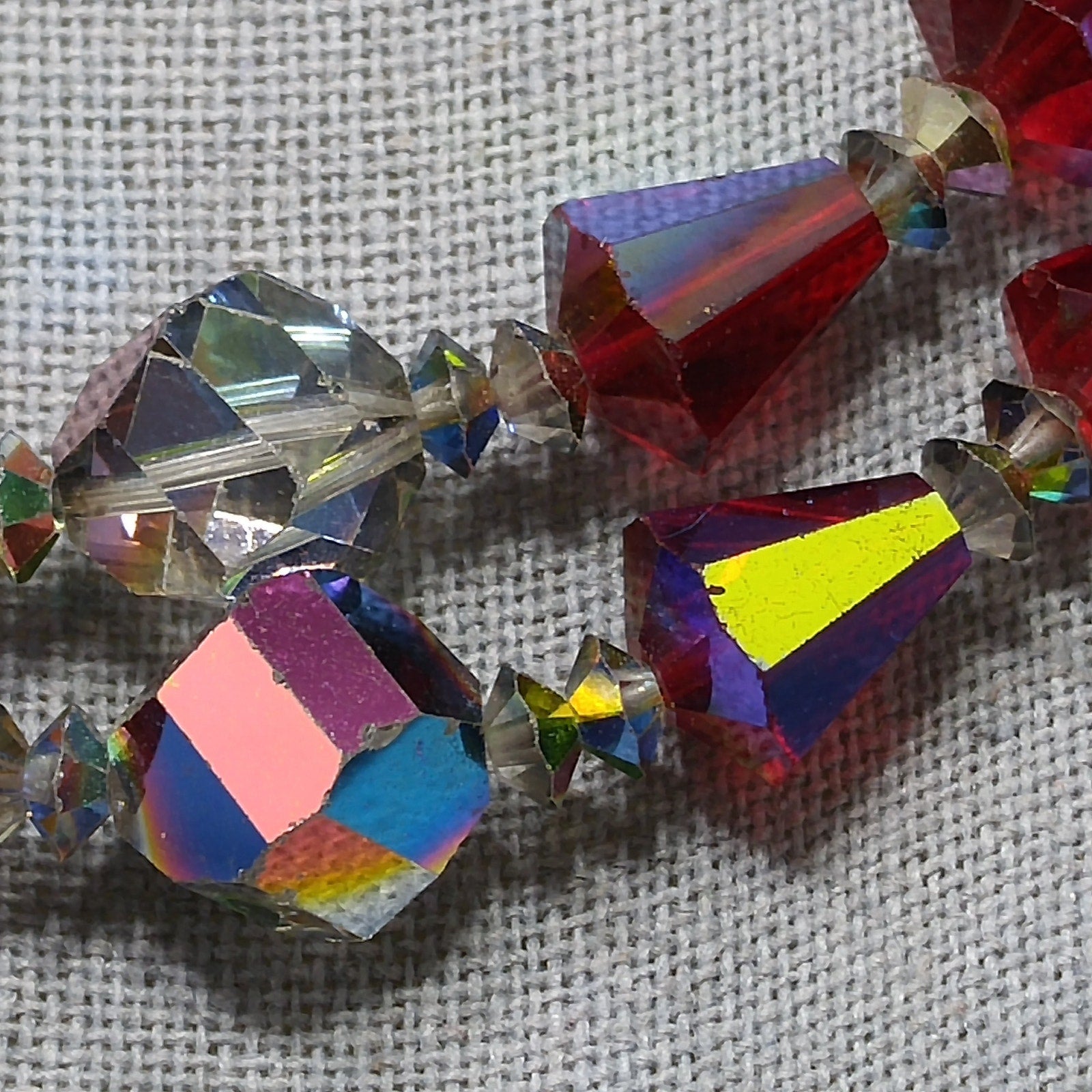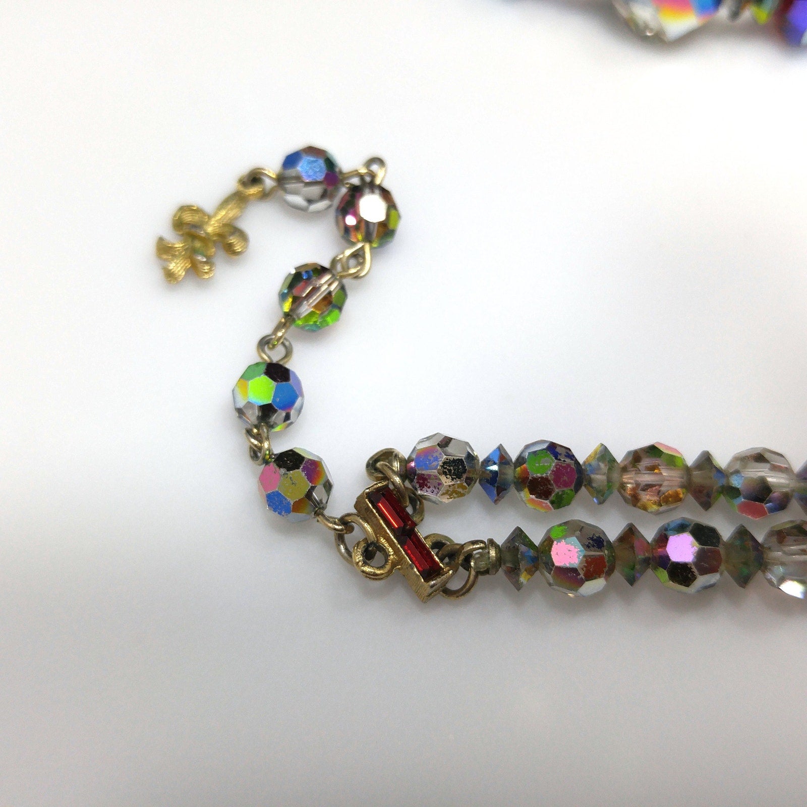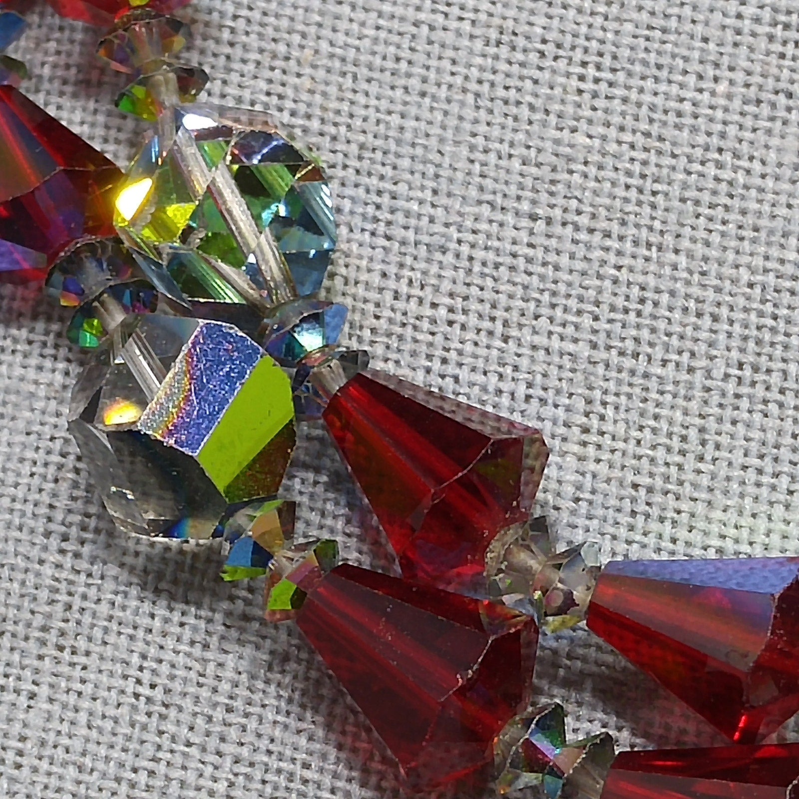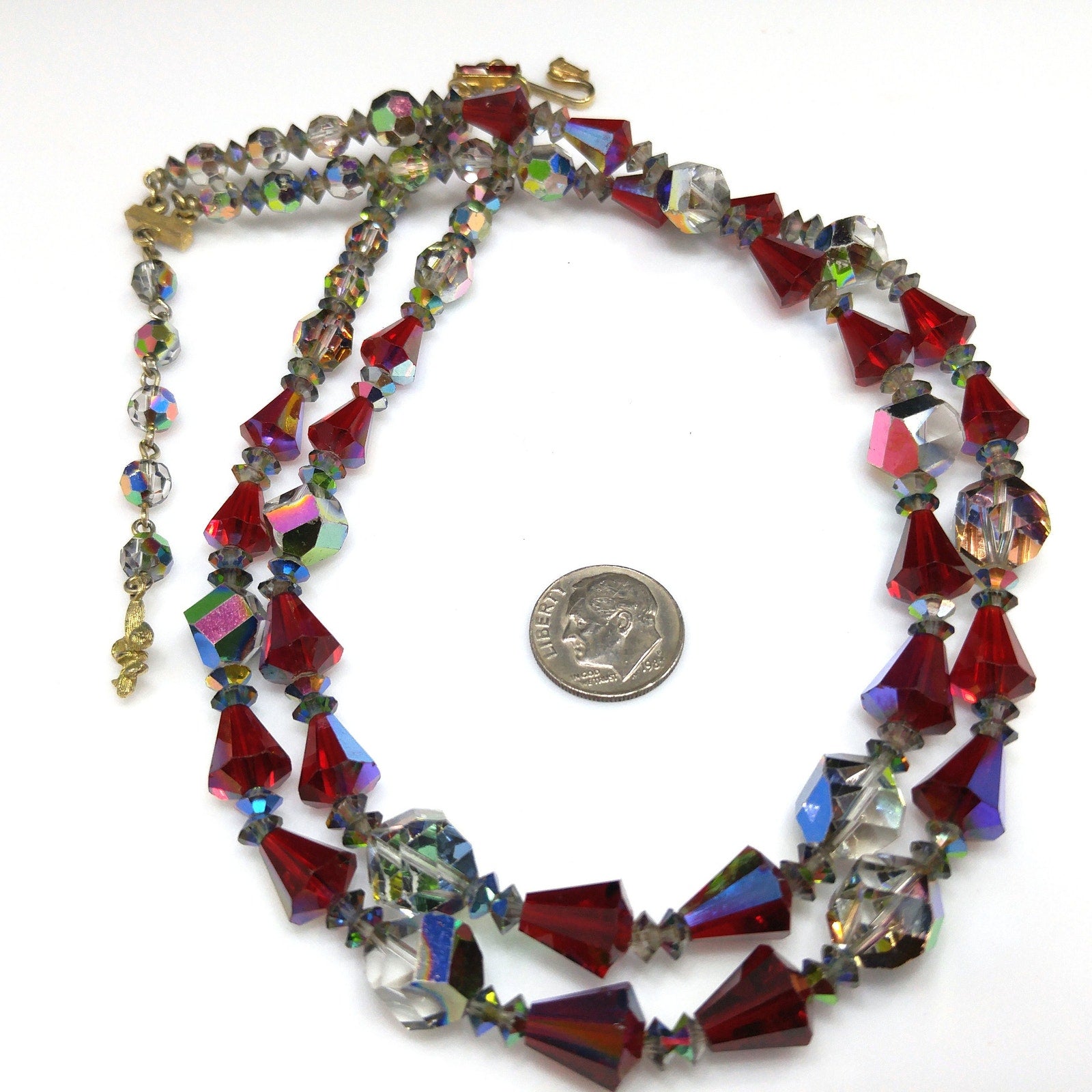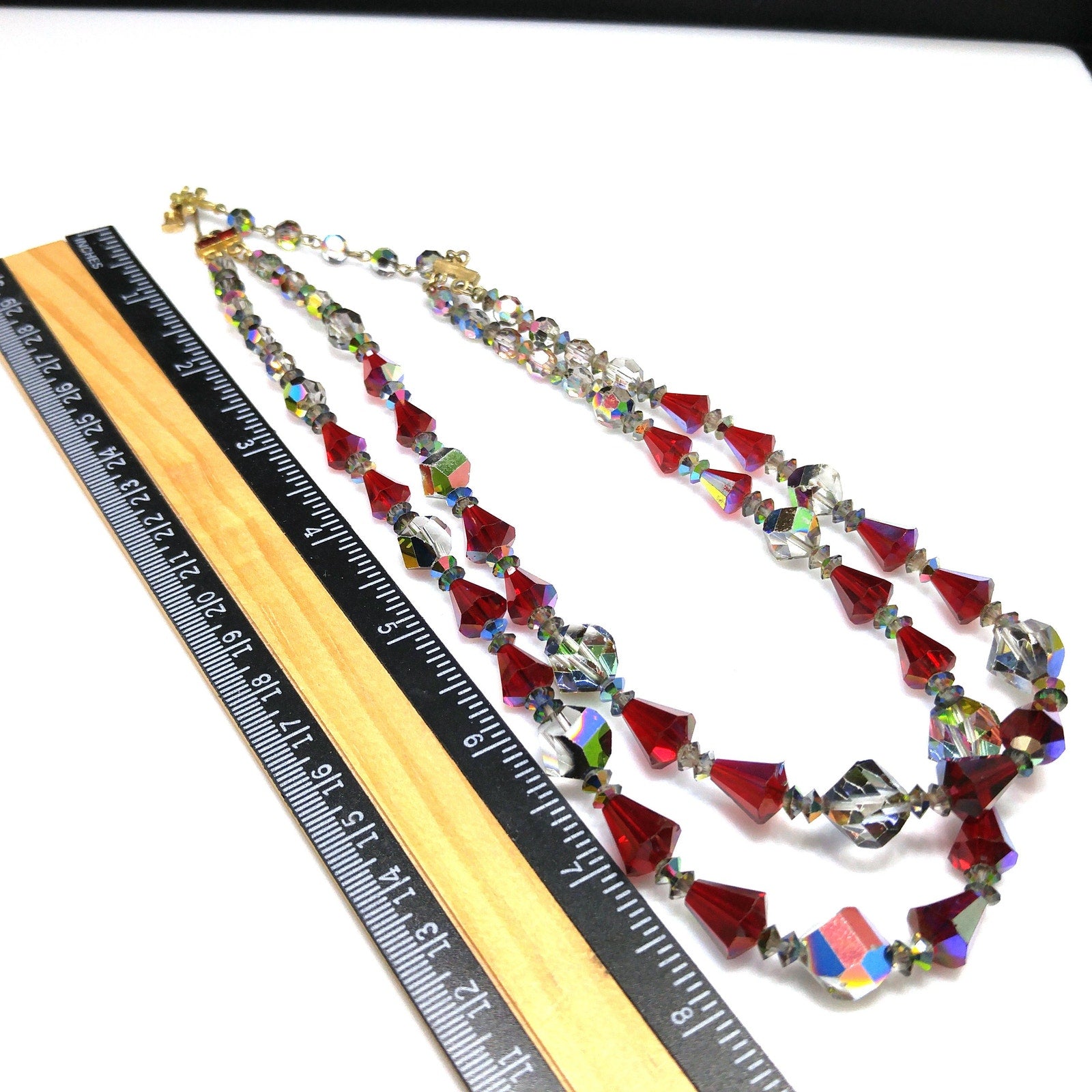 Vendome Red Crystal Two Strand Necklace, Aurora Borealis, 1960s Vintage Jewelry