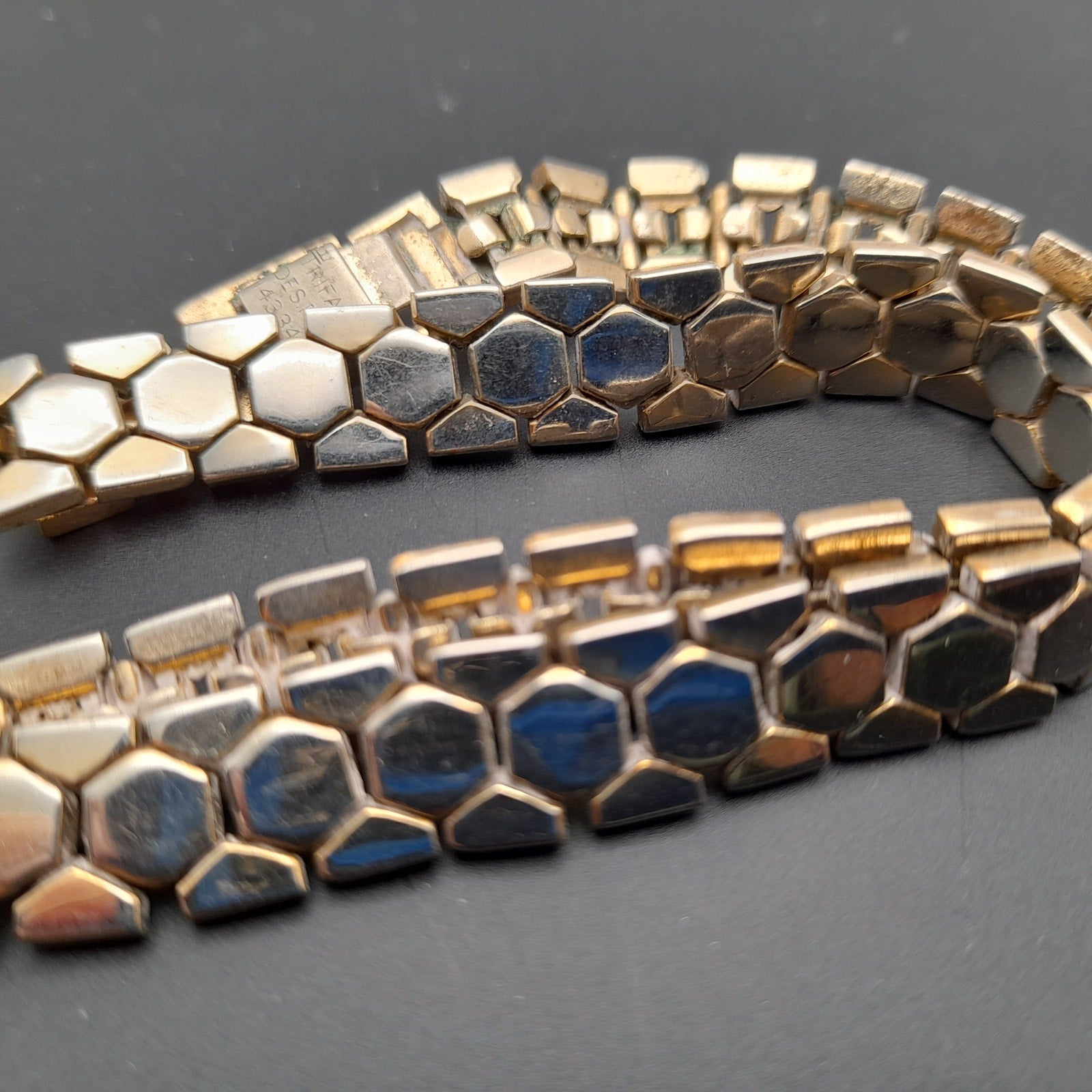 Absolutely stunning vintage 1940s Crown Trifari Alfred Philippe honeycomb choker necklace! This exquisite piece features a unique honeycomb design, showcasing timeless elegance. The necklace measures 14 inches in length, making it a perfect fit for any occasion. A true collector's item, this necklace is sure to turn heads and add a touch of vintage glamour to any outfit. Don't miss the opportunity to own a piece of history! It will be packaged with care and shipped promptly.