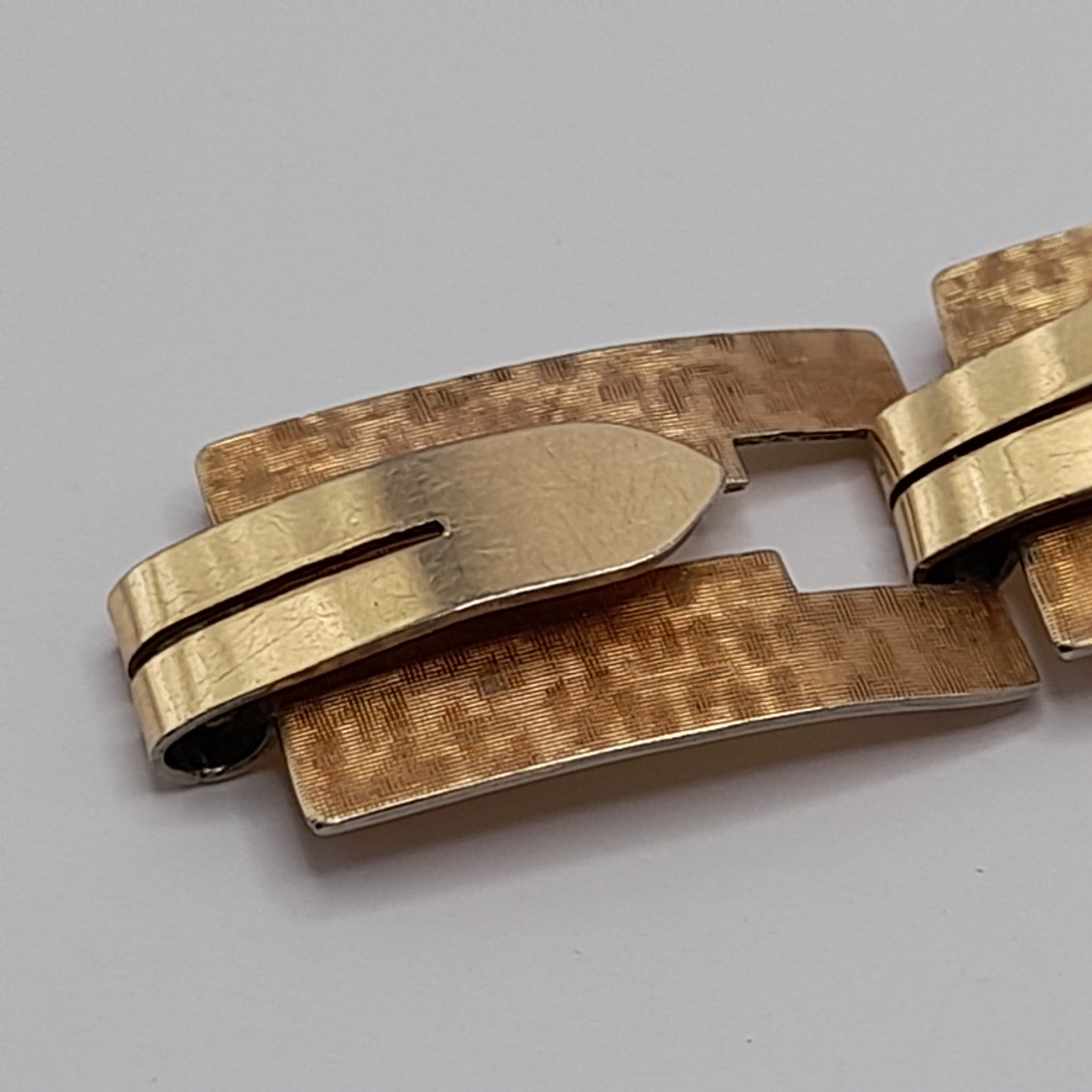 Vintage 1940s Krementz Bracelet, Two Tone Rose Yellow Gold Links, Retro Geometric Jewelry, Mid Century Gift, 7 3/4 Inch