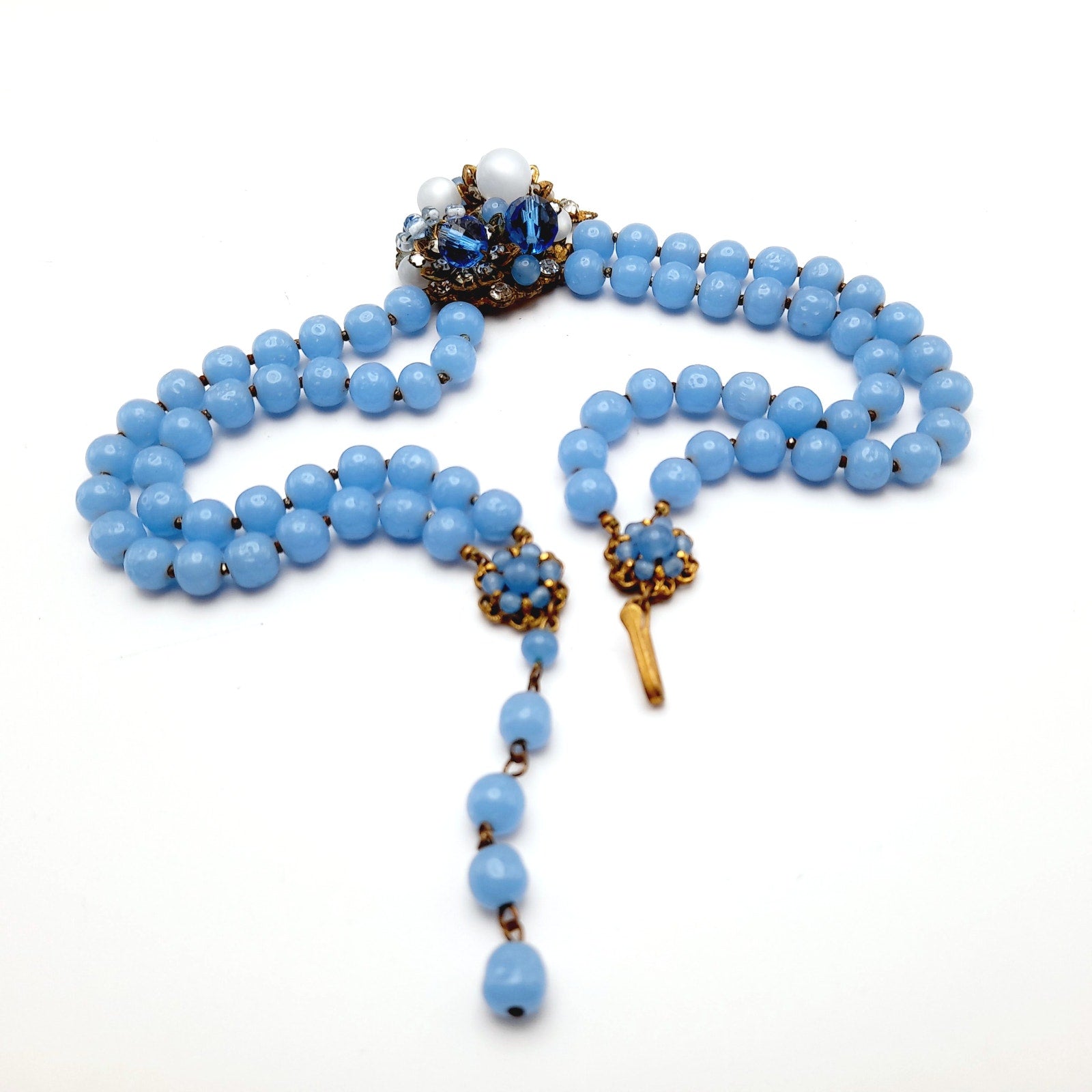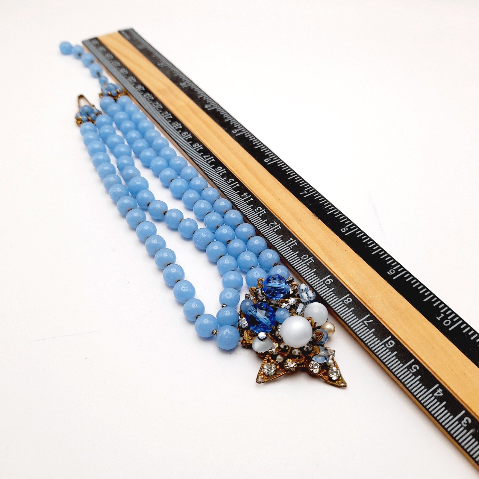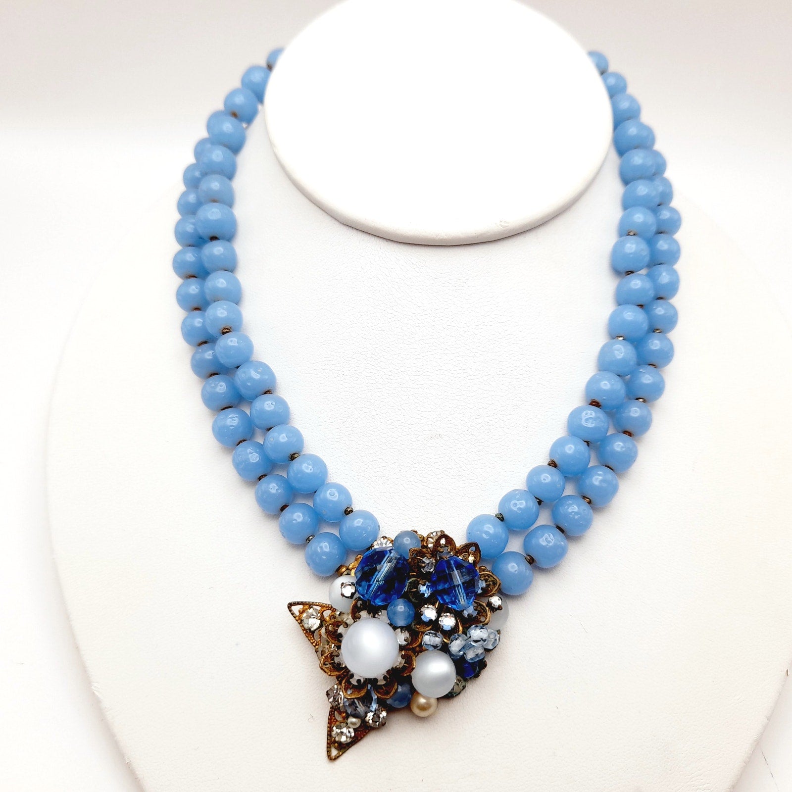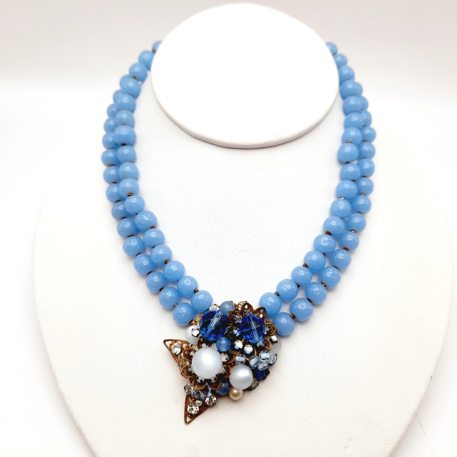 Vintage 1940s Unsigned Hattie Carnegie Style Blue Glass Necklace