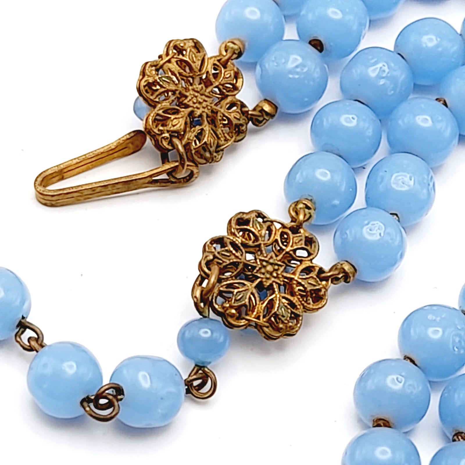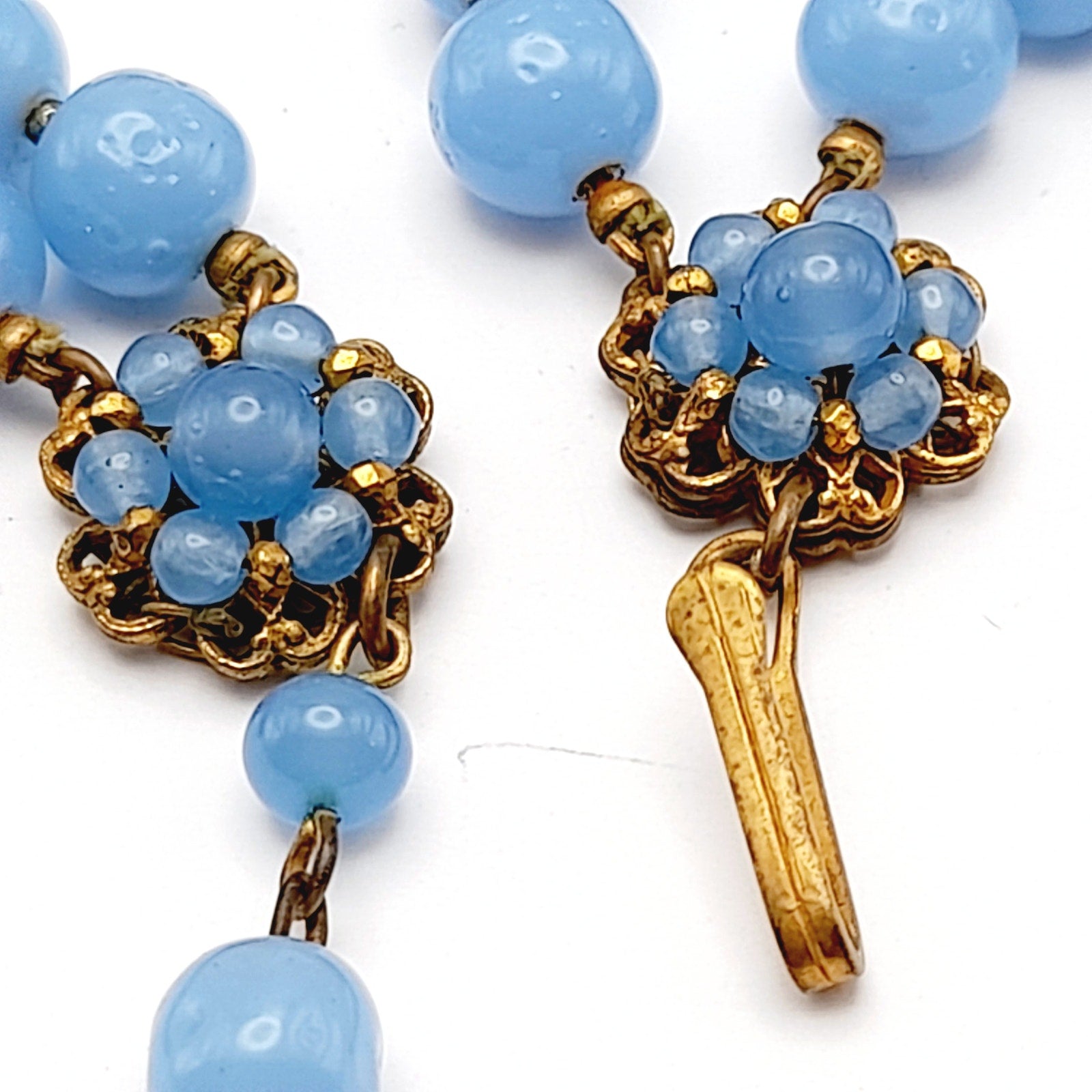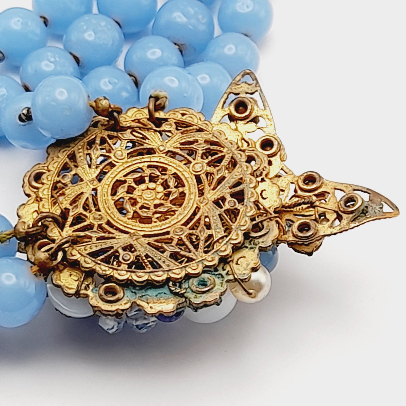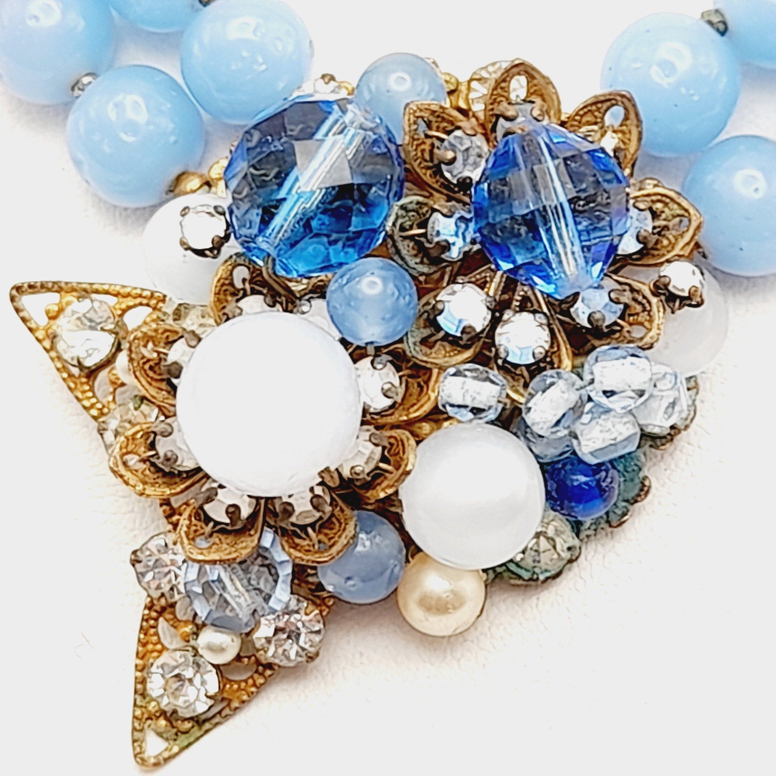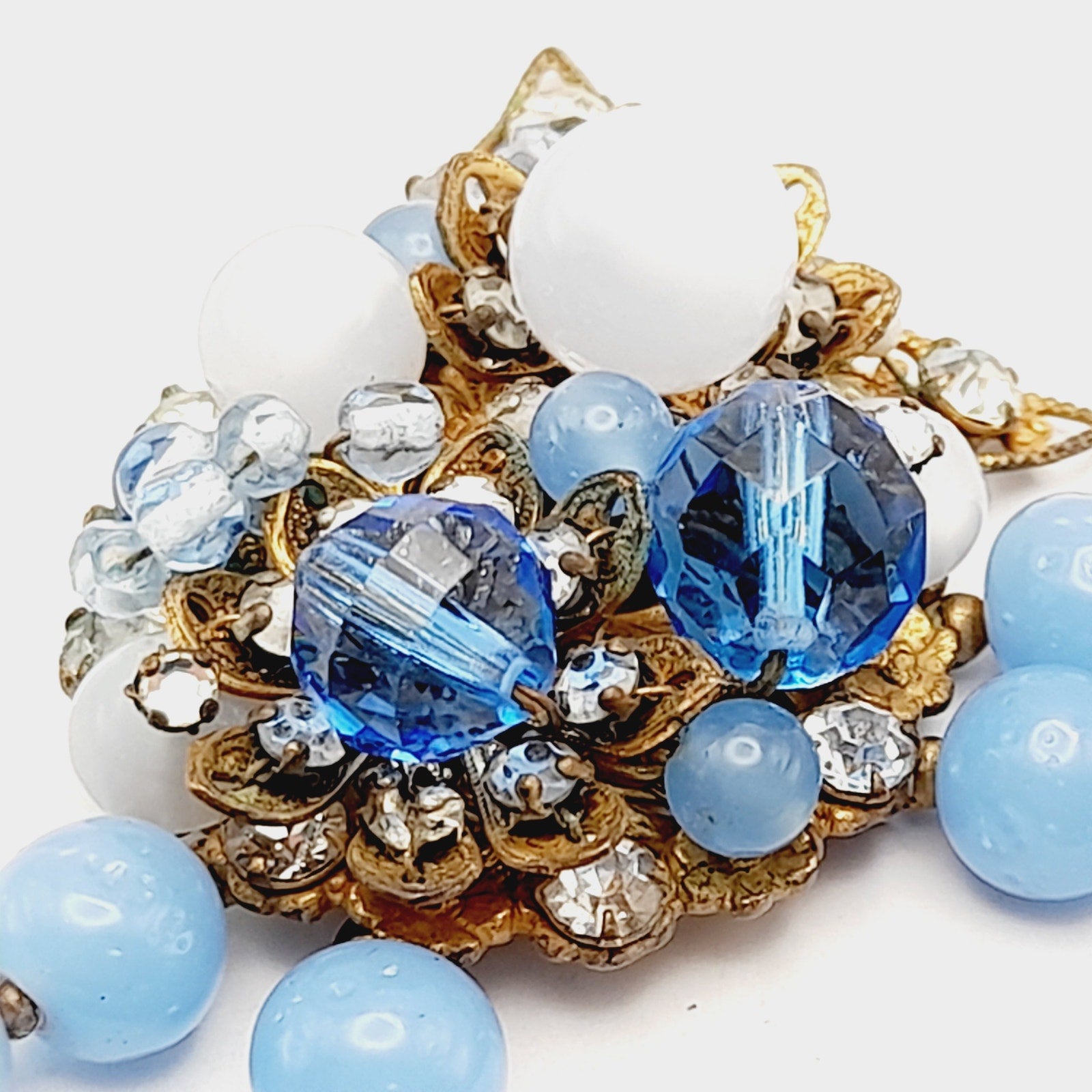 Vintage 1940s Unsigned Hattie Carnegie Style Blue Glass Necklace