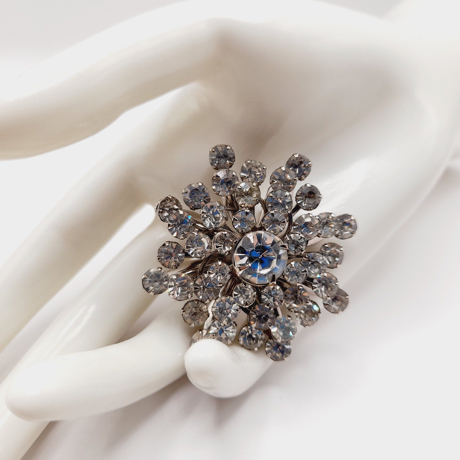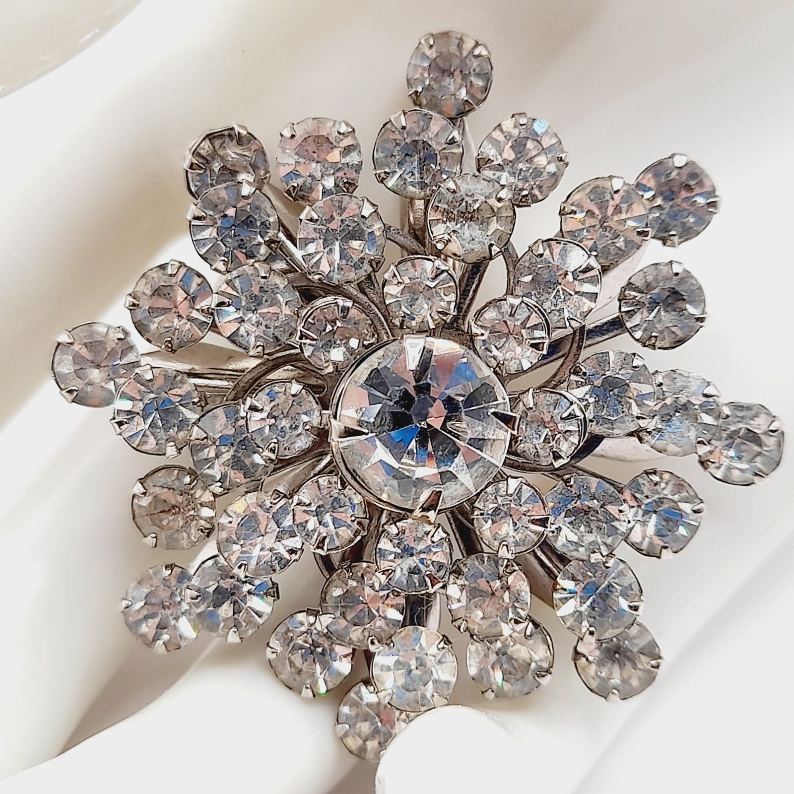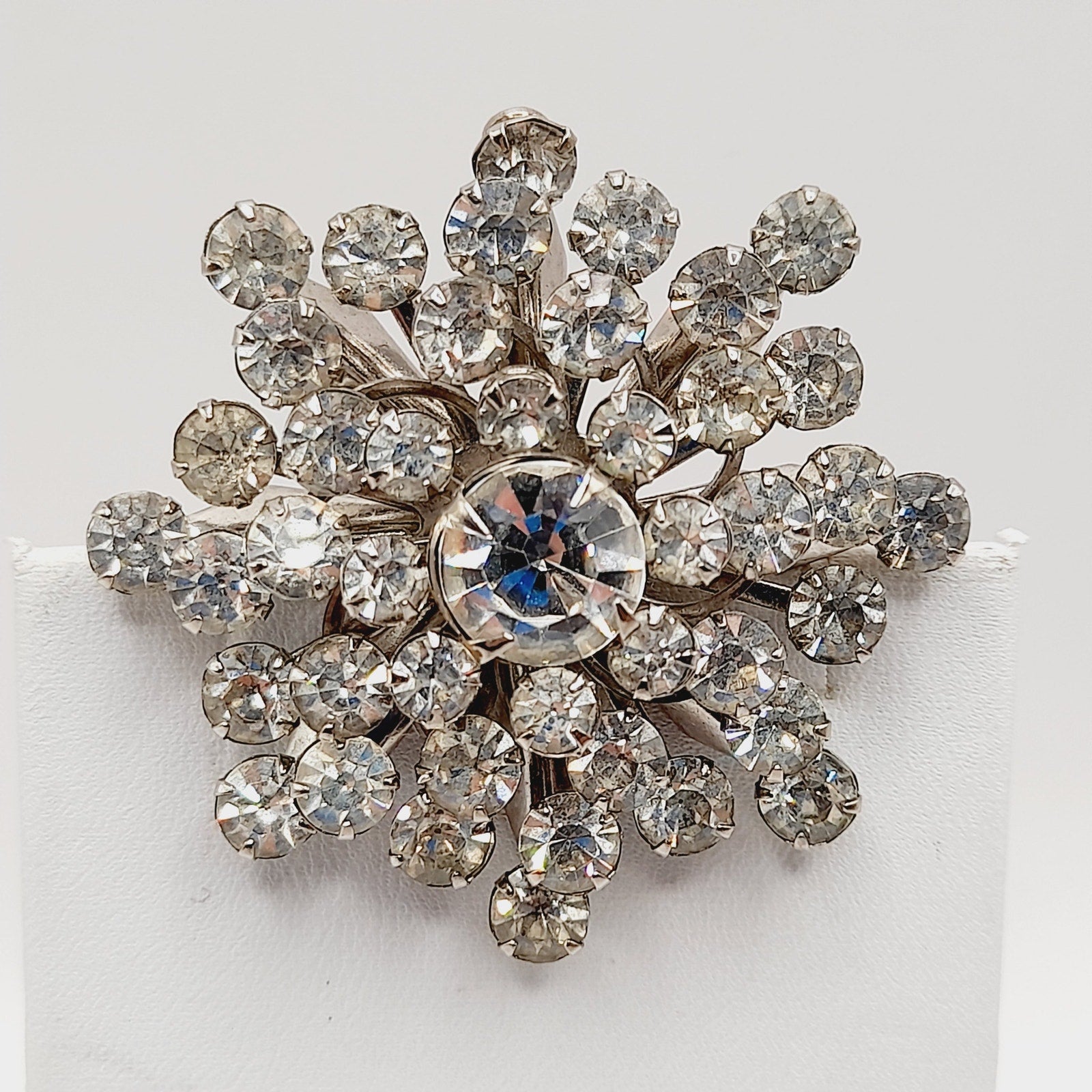 Vintage 1950s Clear Rhinestone Snowflake Wedding Brooch – Mid-Century Bridal Pin