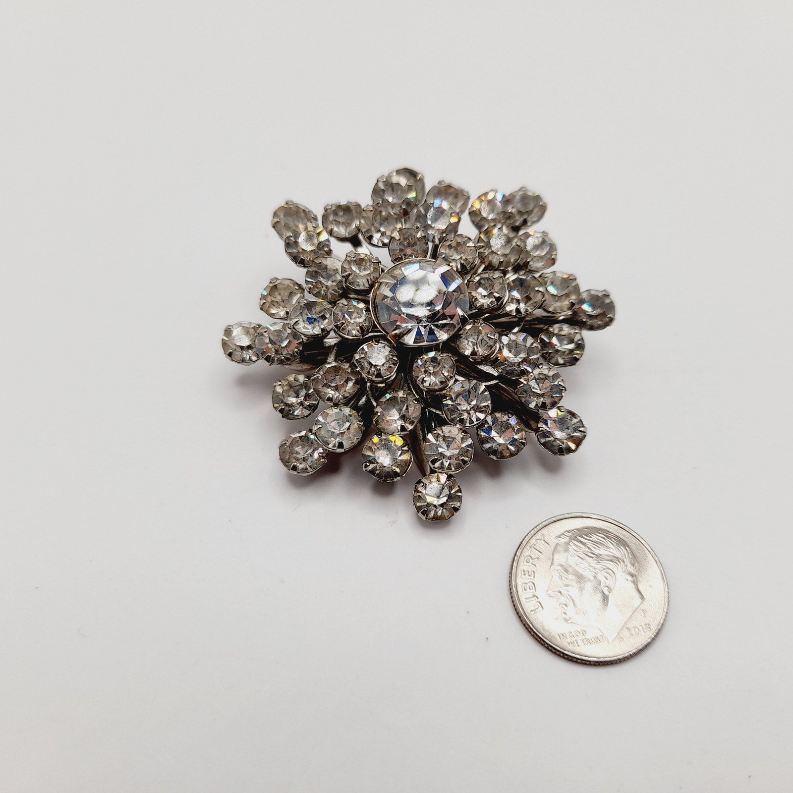 The silver-tone setting enhances the brilliance of the stones, making this brooch ideal for both special occasions and vintage jewelry collections. Its secure clasp ensures durability while keeping this classic piece wearable for years to come.
