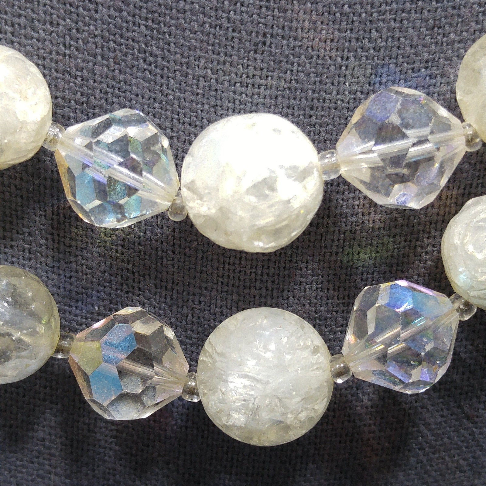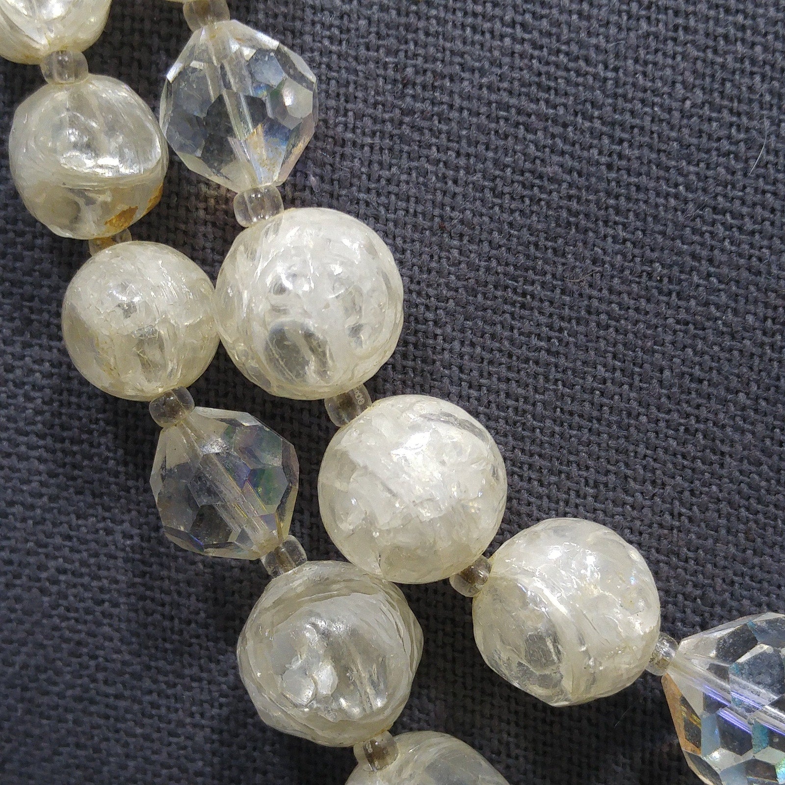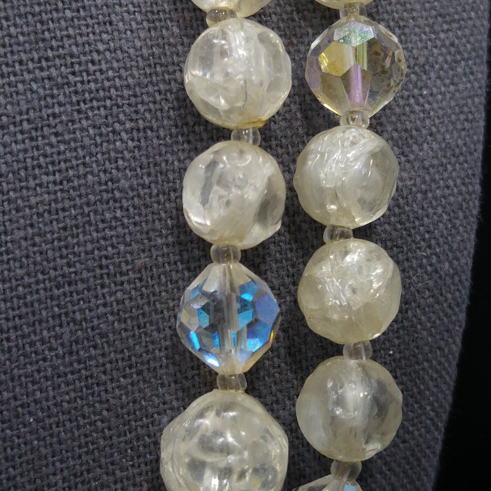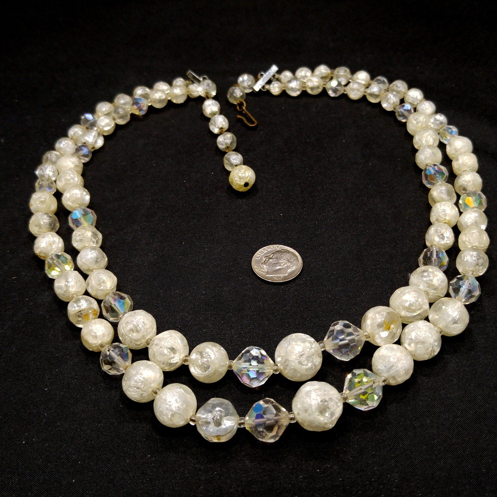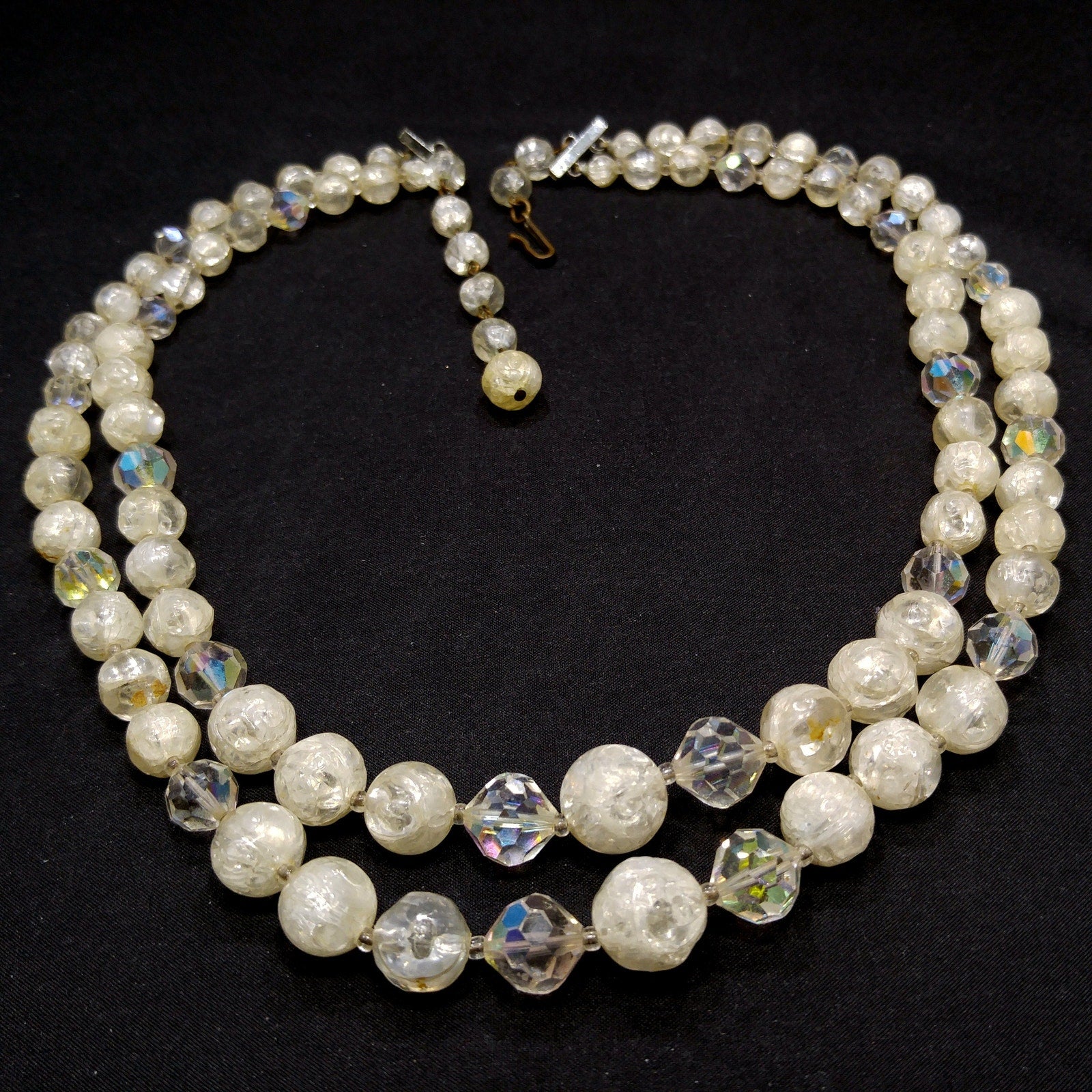 Vintage 1950s Laguna Crackle Lucite Crystal Bead Necklace 2 Strand Signed