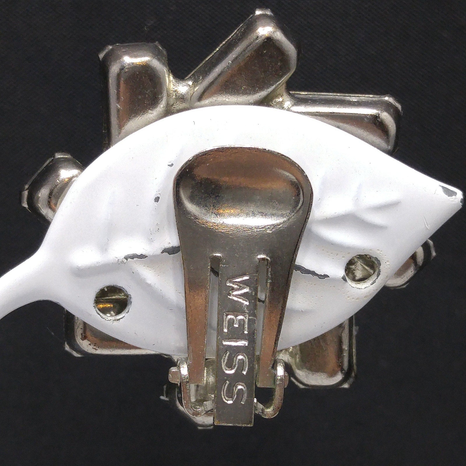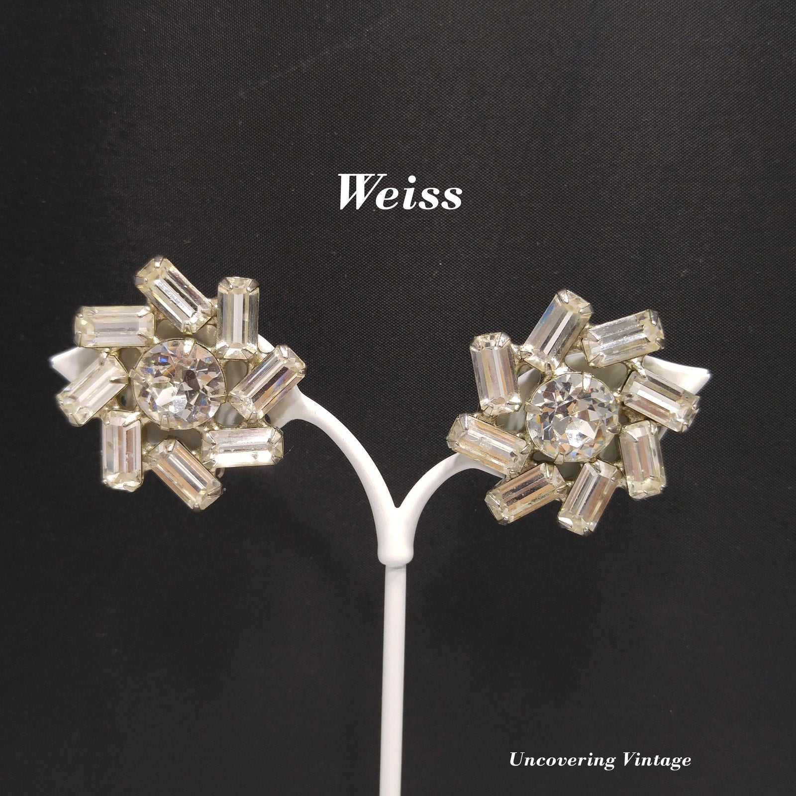 This pair of Weiss 1950s rhinestone earrings captures the glamour of the mid-century era and would make a beautiful addition to your vintage jewelry collection or a dazzling gift for someone special.