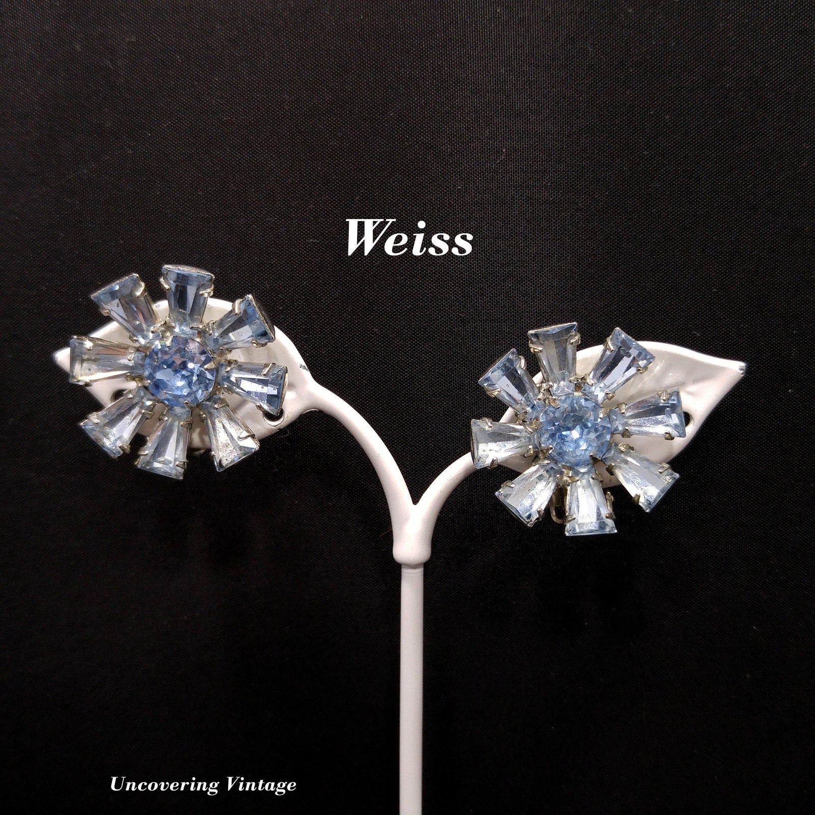 These earrings are a fine example of mid-century Weiss craftsmanship, combining elegant geometry with radiant color. They are perfect for weddings, special events, or collectors of high-quality vintage rhinestone jewelry.