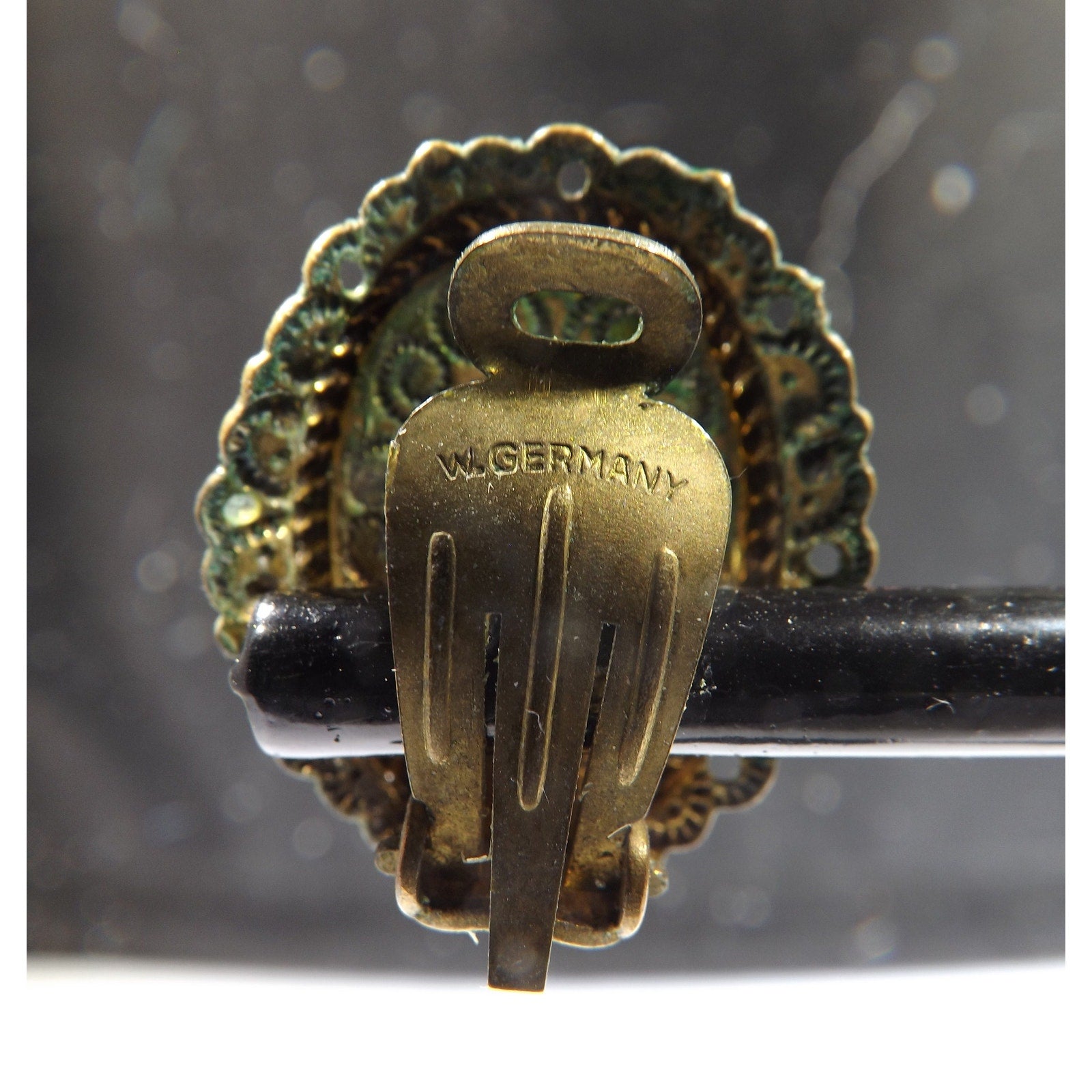 Vintage 1950s West Germany Courting Couple Cameo Pendant Brooch Earrings Set