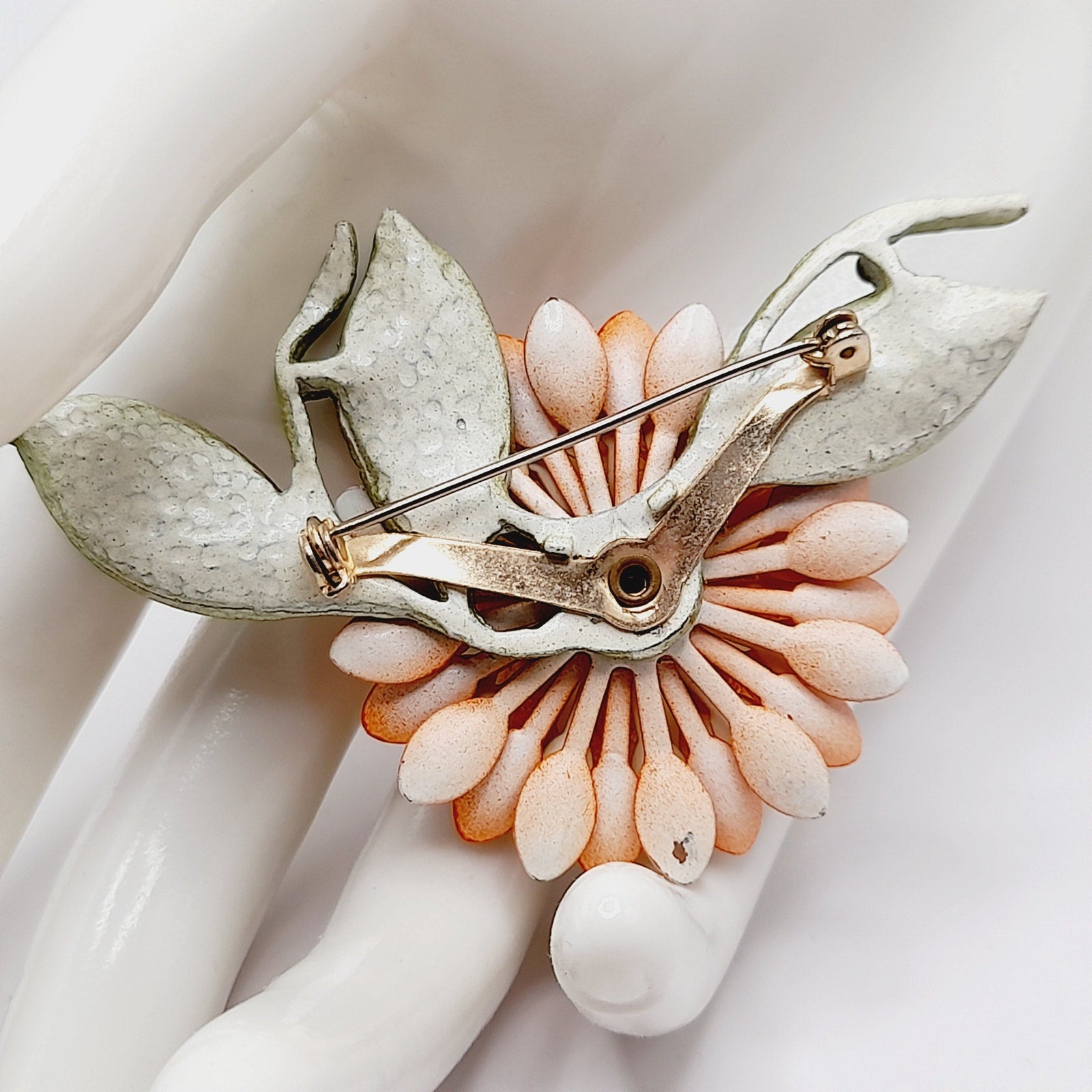 Vintage 1960s Orange Green Enamel Flower Brooch