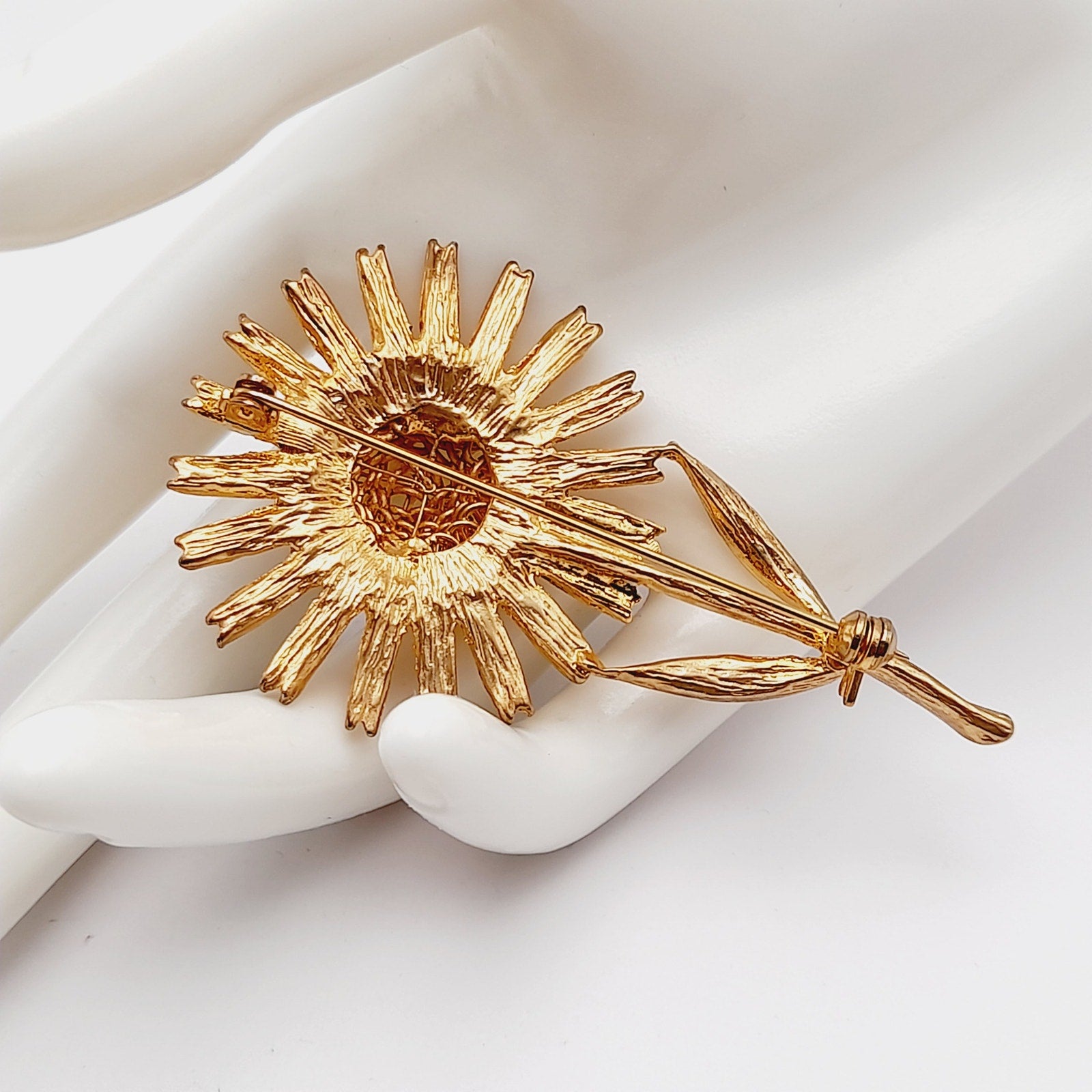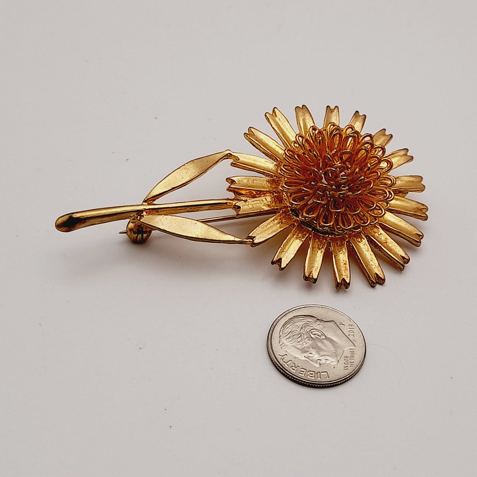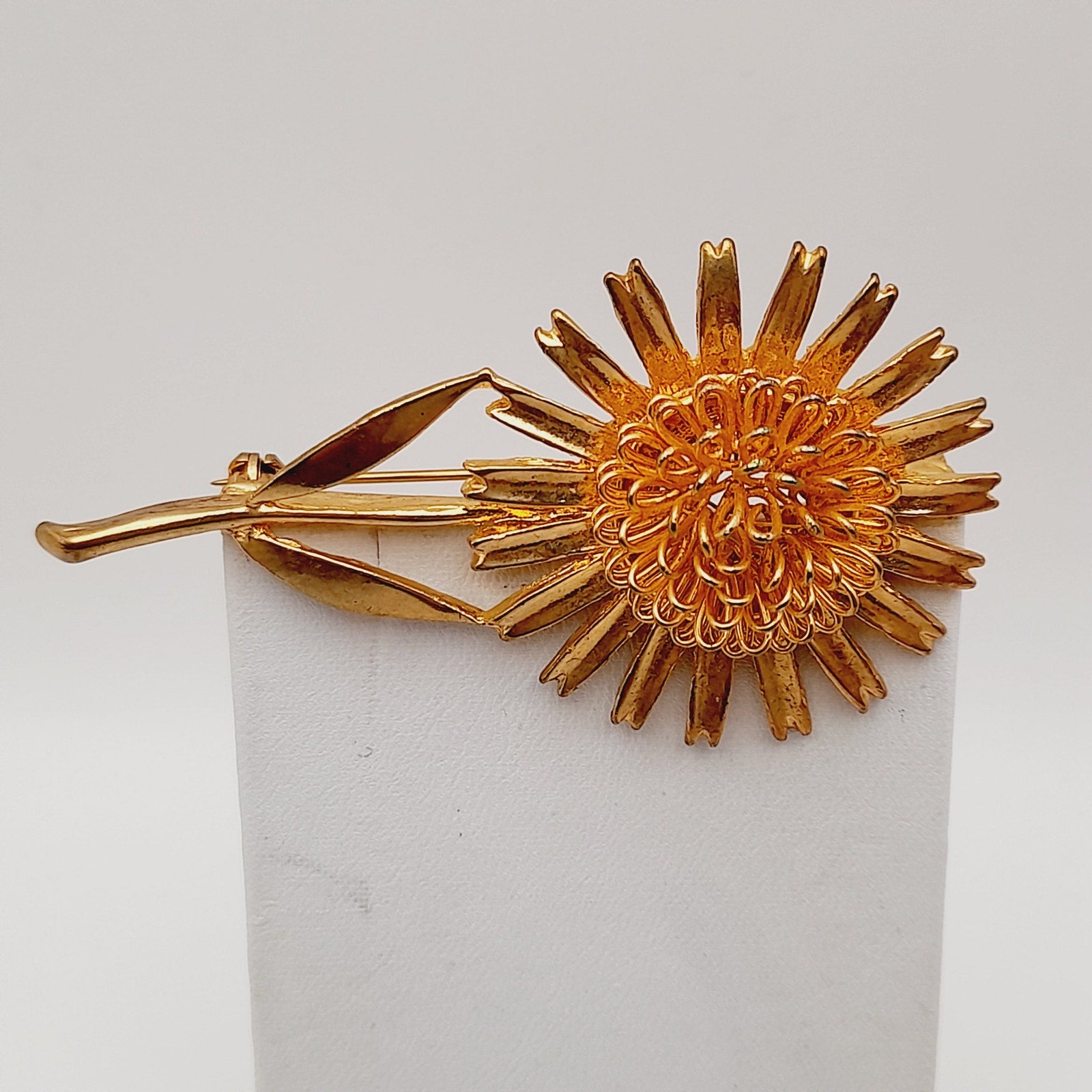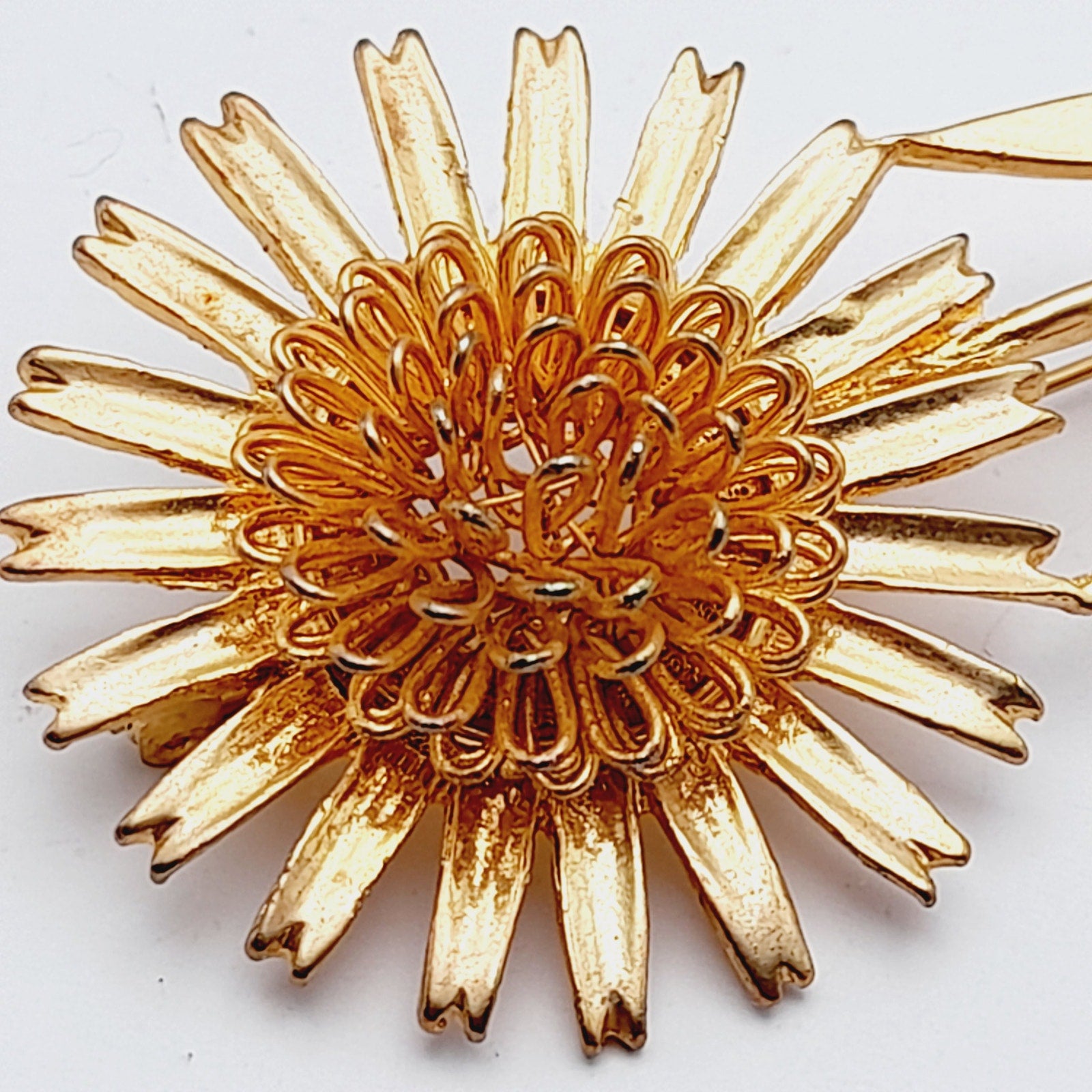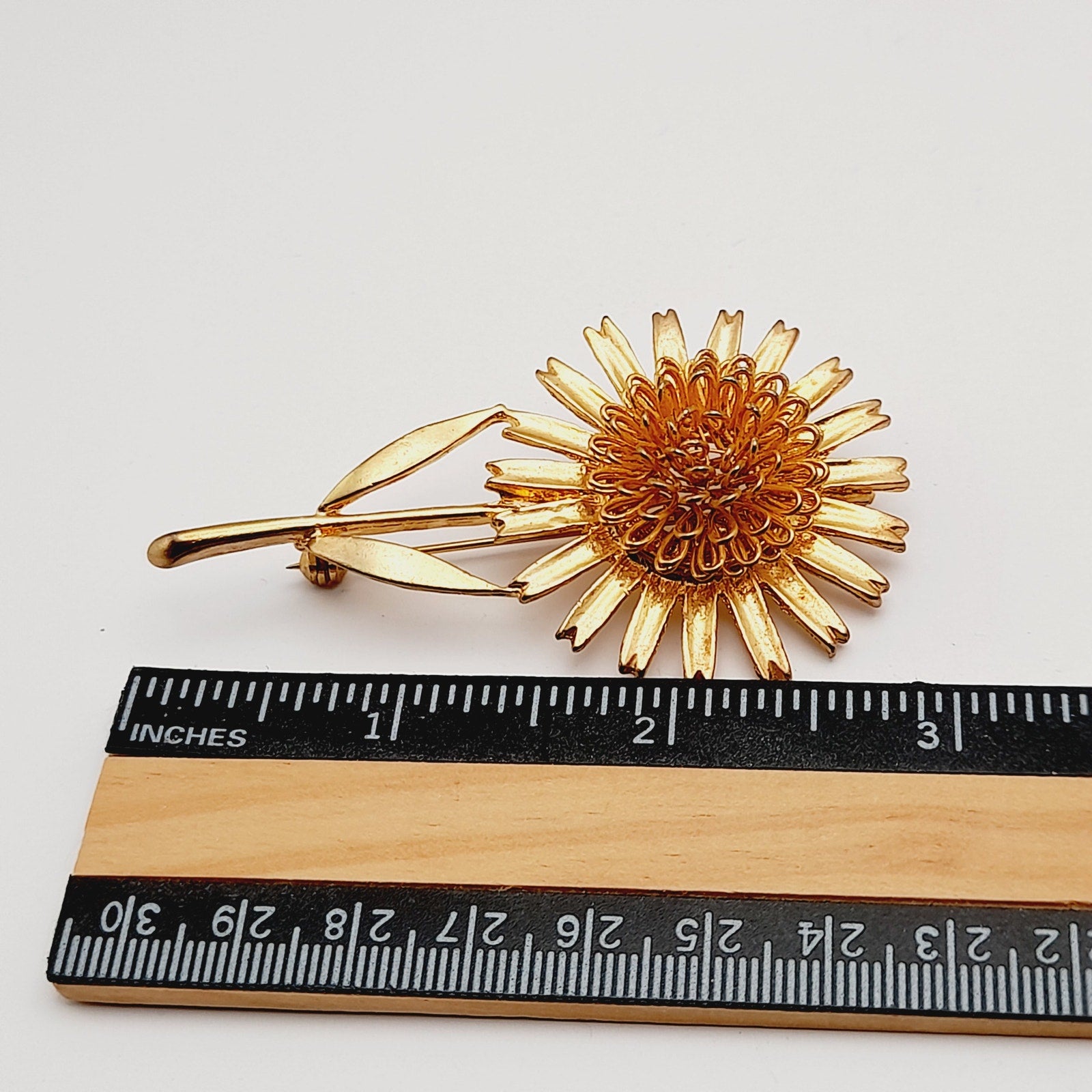 Vintage 1970s Gold Tone Daisy Floral 3 Inch Brooch