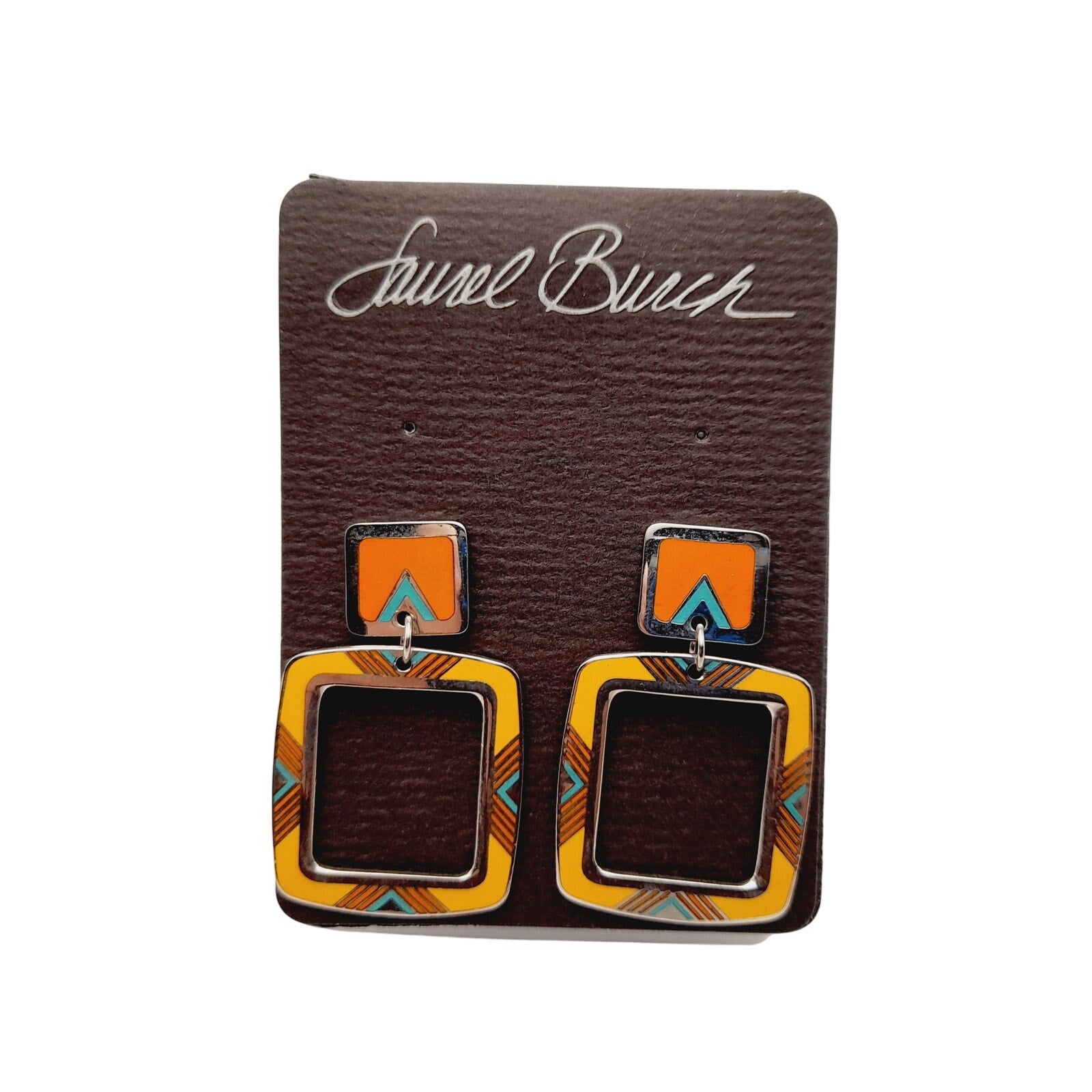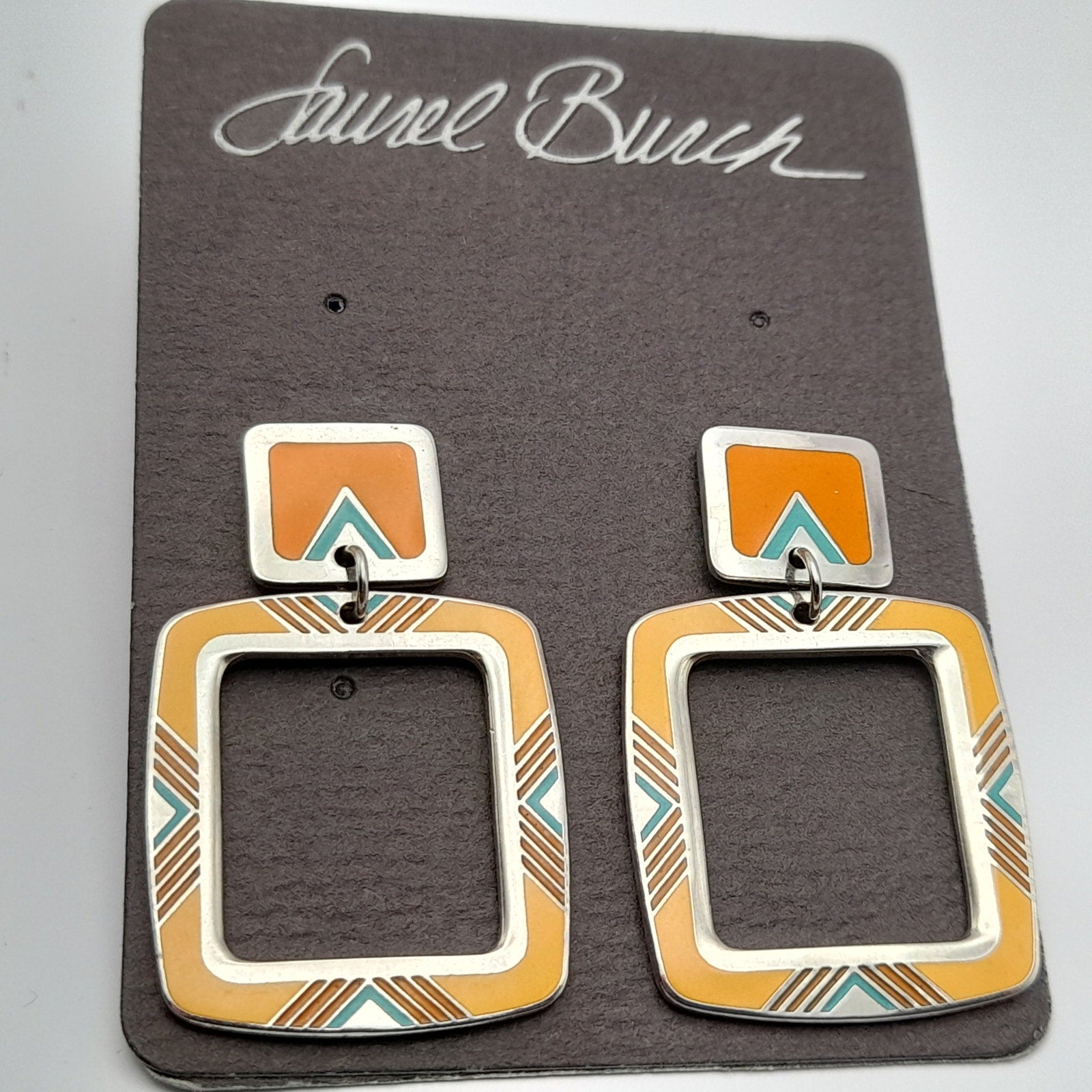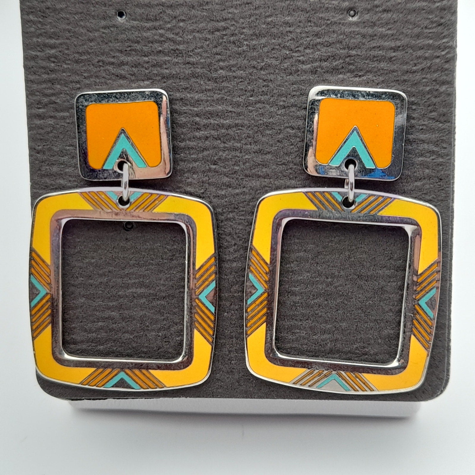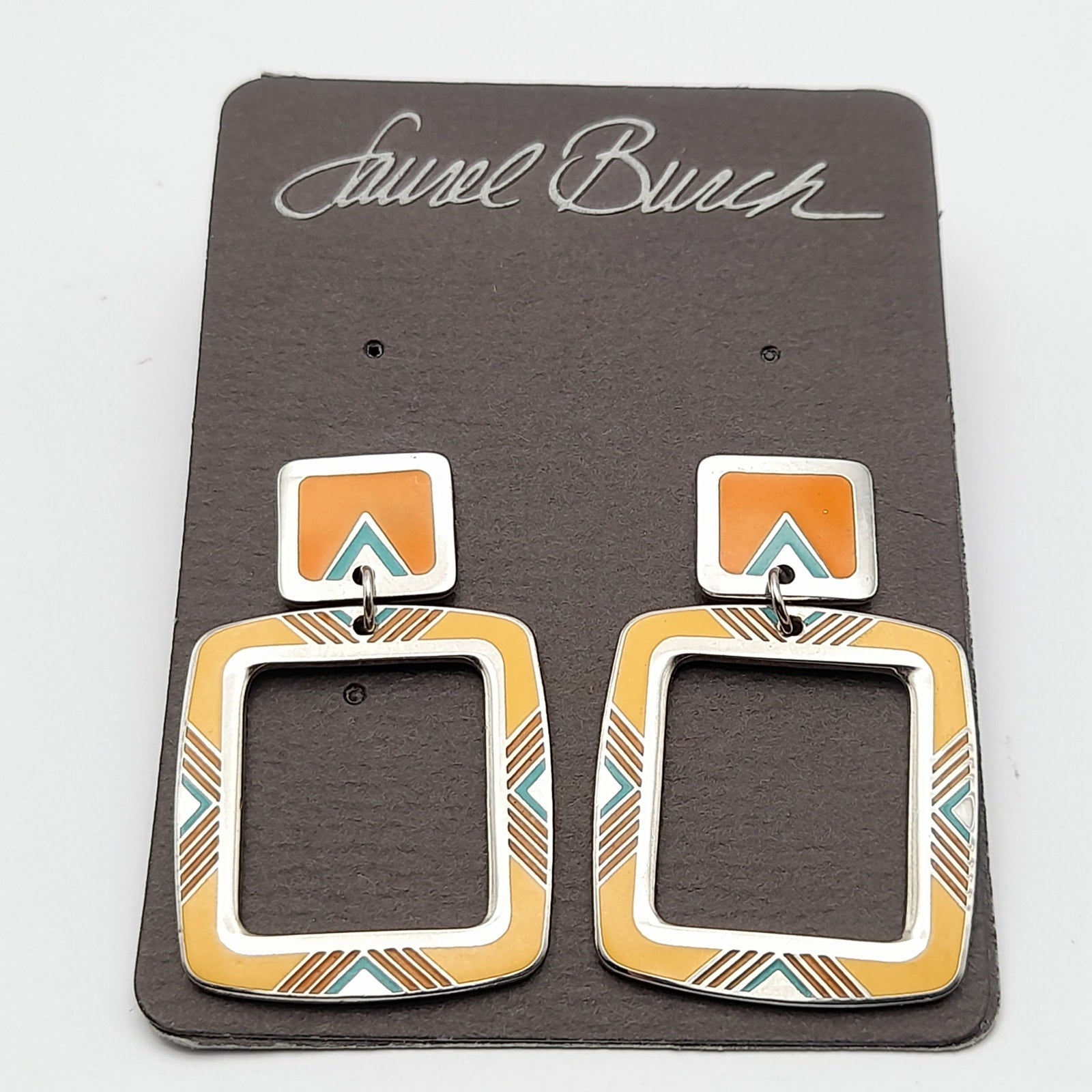 Vintage 1988 Laurel Burch Geometric Yellow Orange Enamel Post Earrings on Original Card