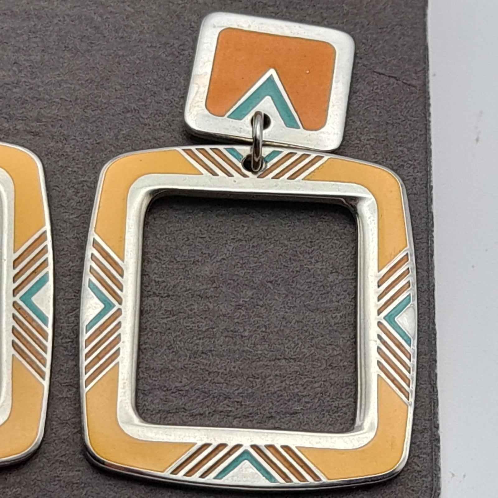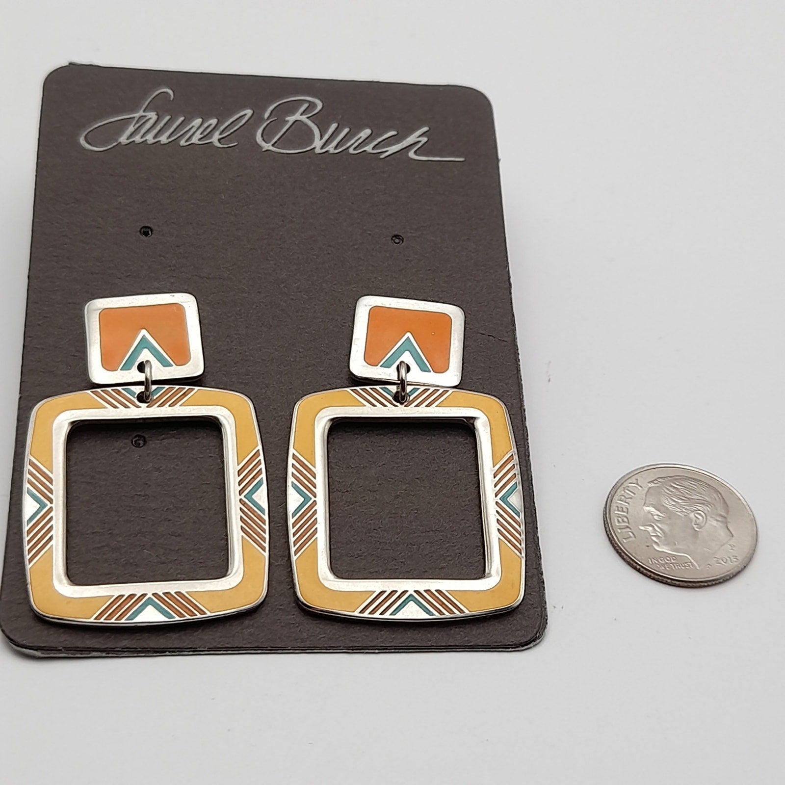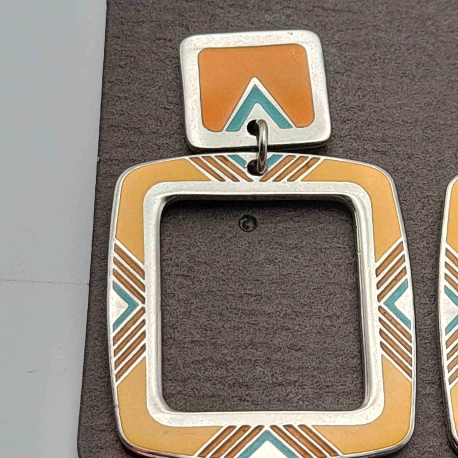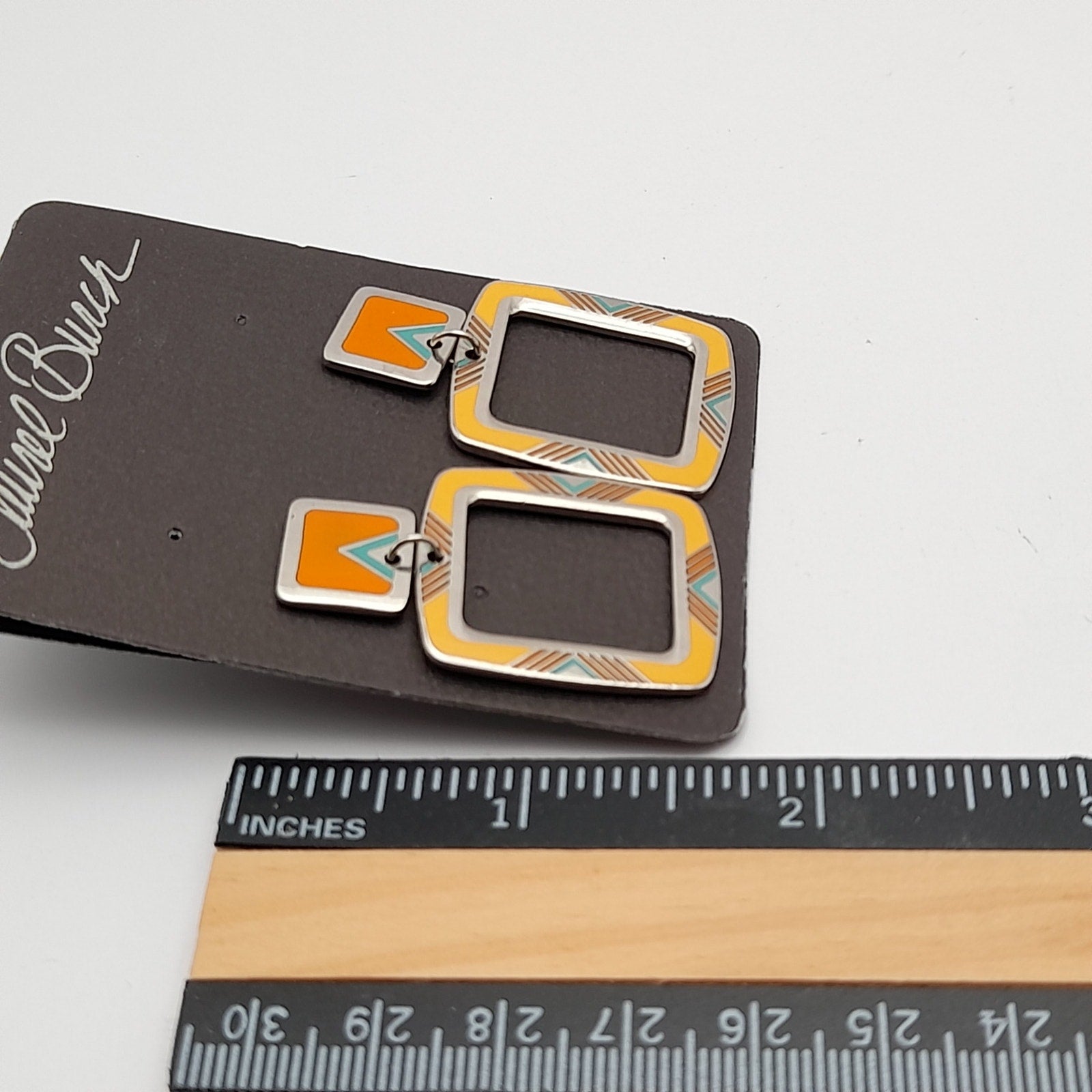 Vintage 1988 Laurel Burch Geometric Yellow Orange Enamel Post Earrings on Original Card