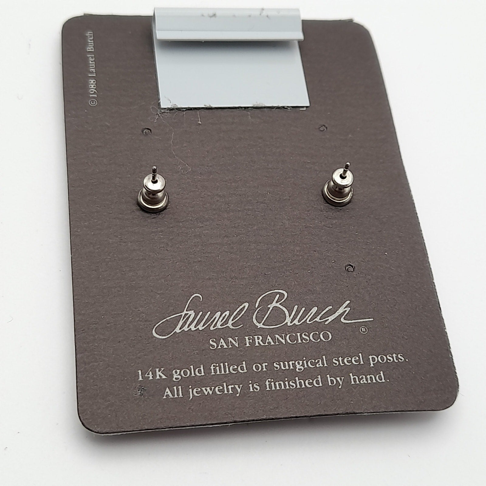 Add a bold pop of color to your jewelry collection with these vintage 1988 Laurel Burch geometric post earrings. Featuring a striking yellow and orange enamel design with signature artistic flair, these earrings showcase Burch’s iconic style of mixing vibrant hues with distinctive shapes. Crafted with attention to detail and still on their original card, they are perfect for collectors, Laurel Burch enthusiasts, or anyone seeking a unique 1980s statement accessory. Lightweight and comfortable for all-day wear, these earrings embody the playful yet sophisticated charm of vintage Laurel Burch jewelry.