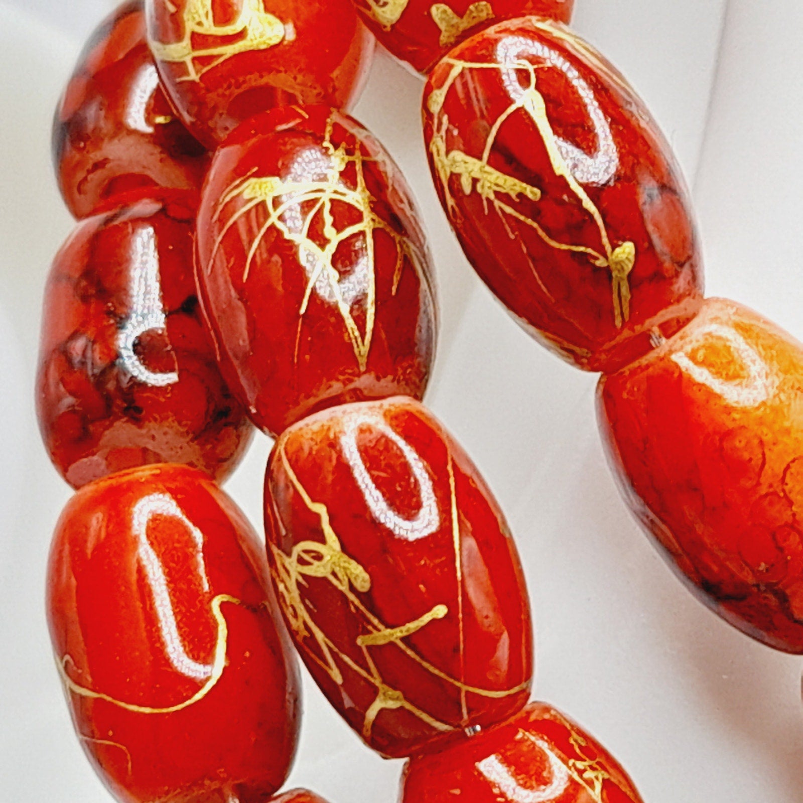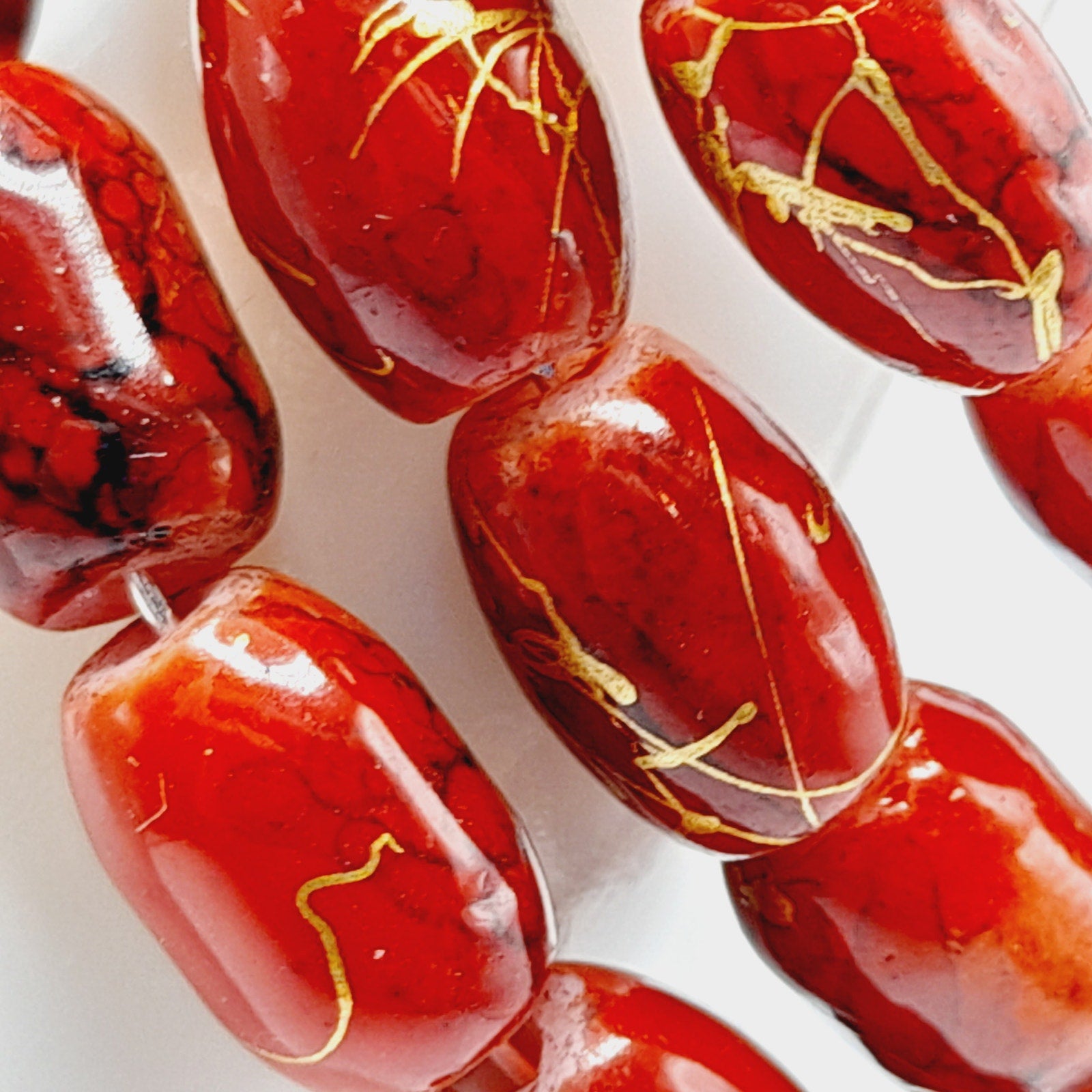 Beads: Vintage Asian-themed red glass beads with gold accents