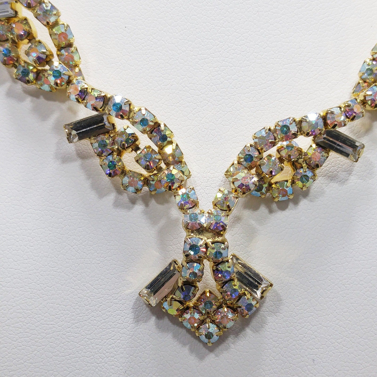 Vintage Aurora Borealis Rhinestone Choker Necklace, 3D Design, Gold Plated, 1960s Vintage Jewelry