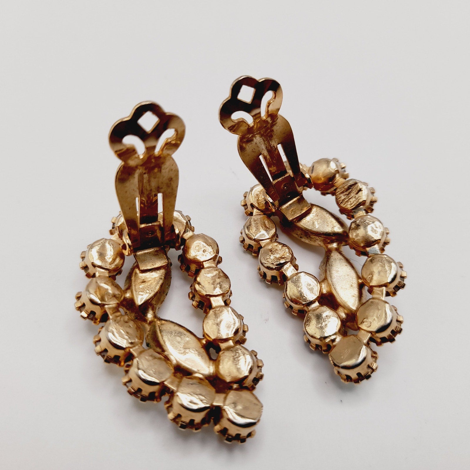 A classic pair of mid-century rhinestone earrings—perfect for weddings, collectors, or adding vintage glamour to your wardrobe.