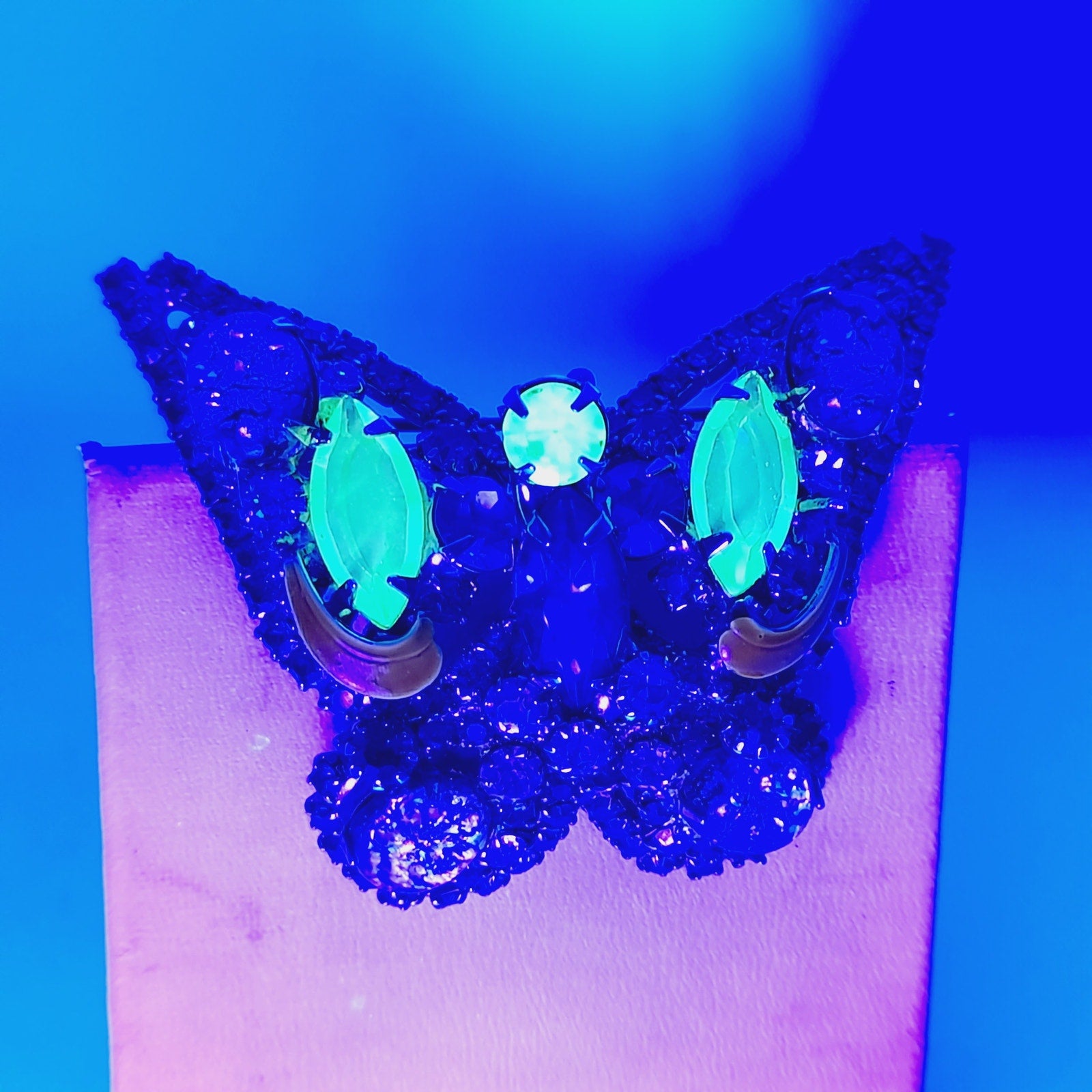 A rare and colorful addition to any vintage rhinestone jewelry collection.