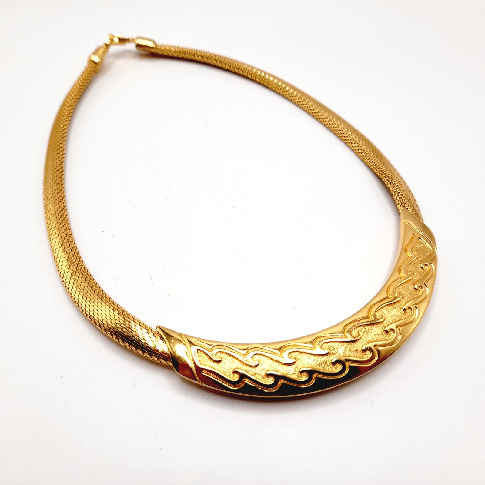 Vintage Christian Dior Mesh Choker Gold Plated Necklace