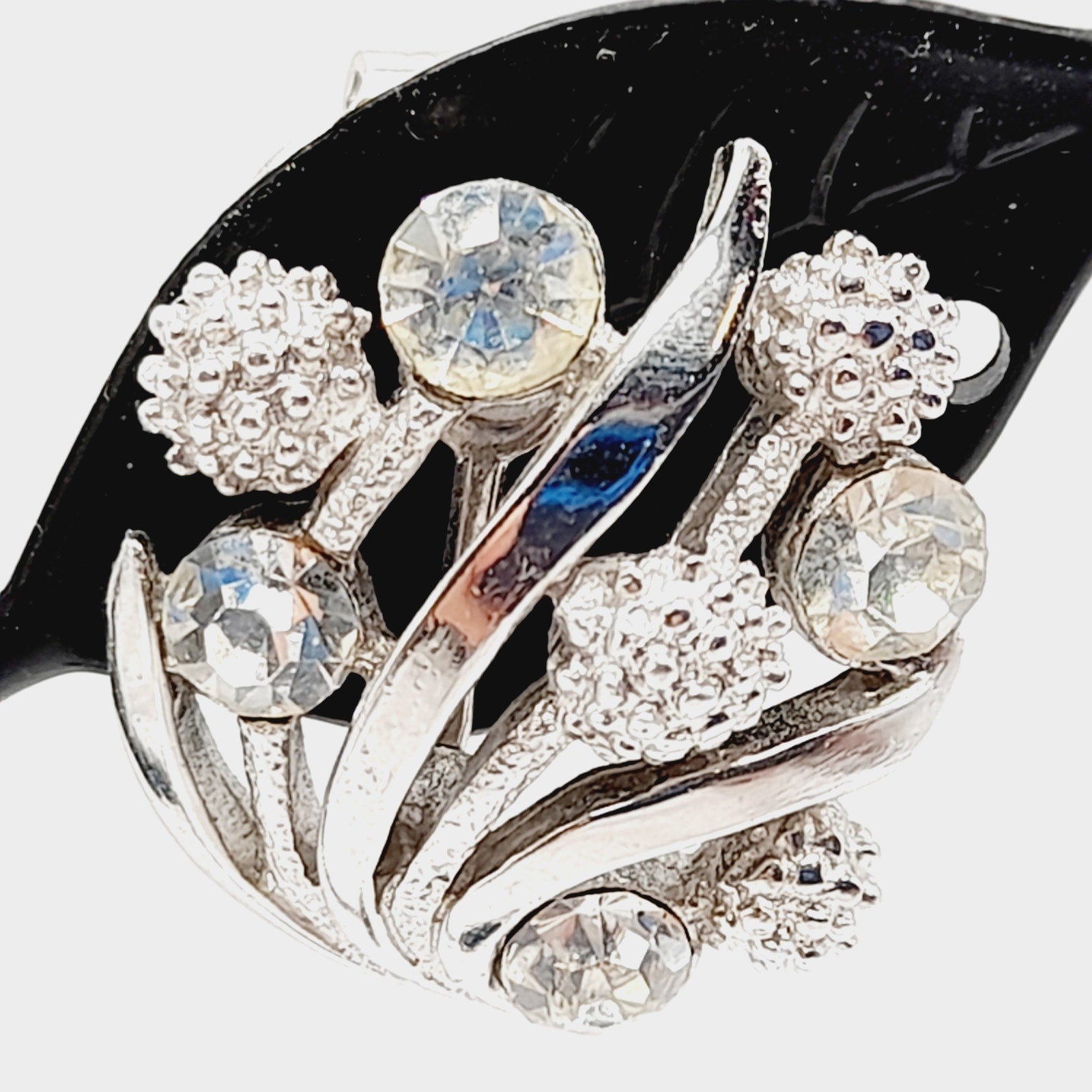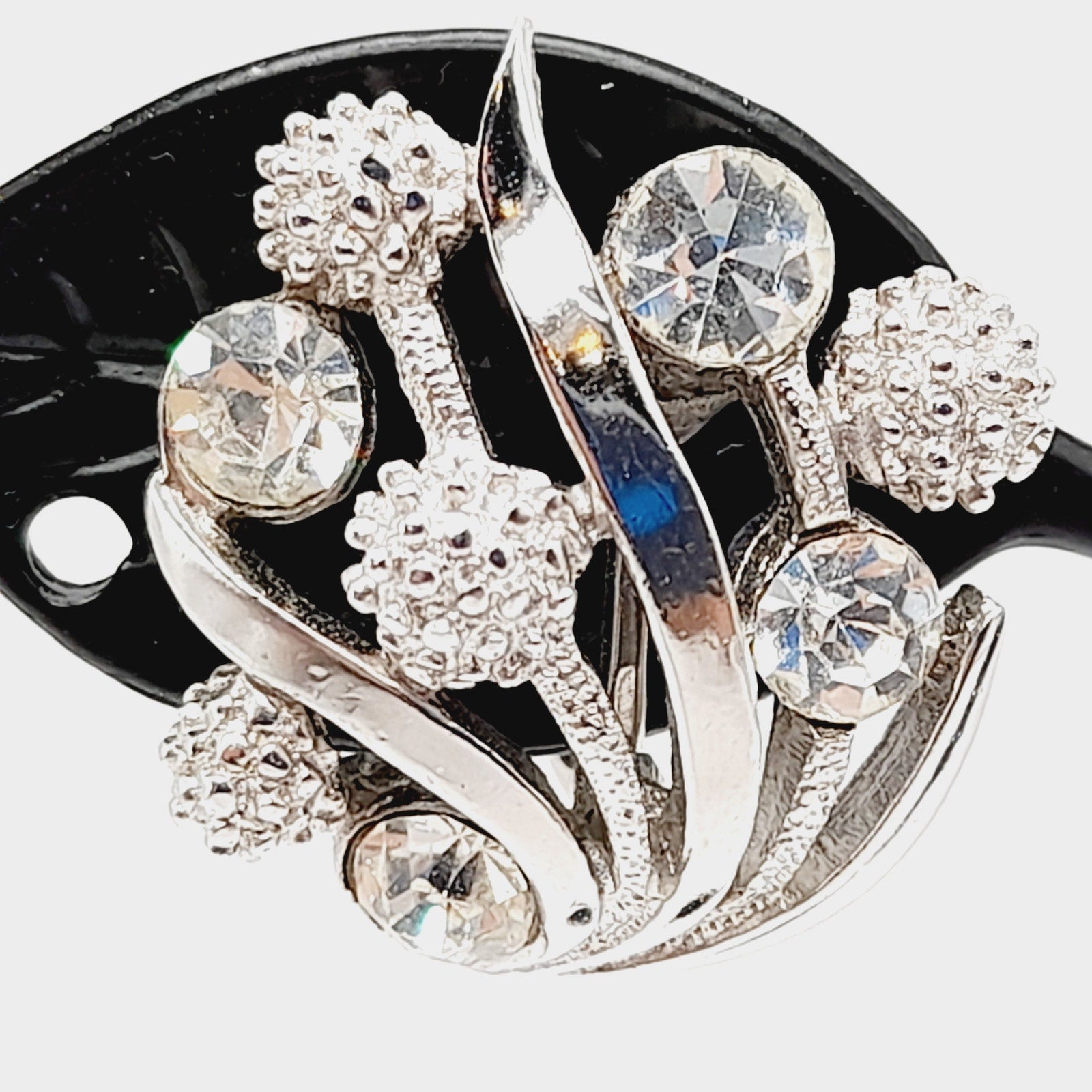 Metal: Rhodium-plated silver tone