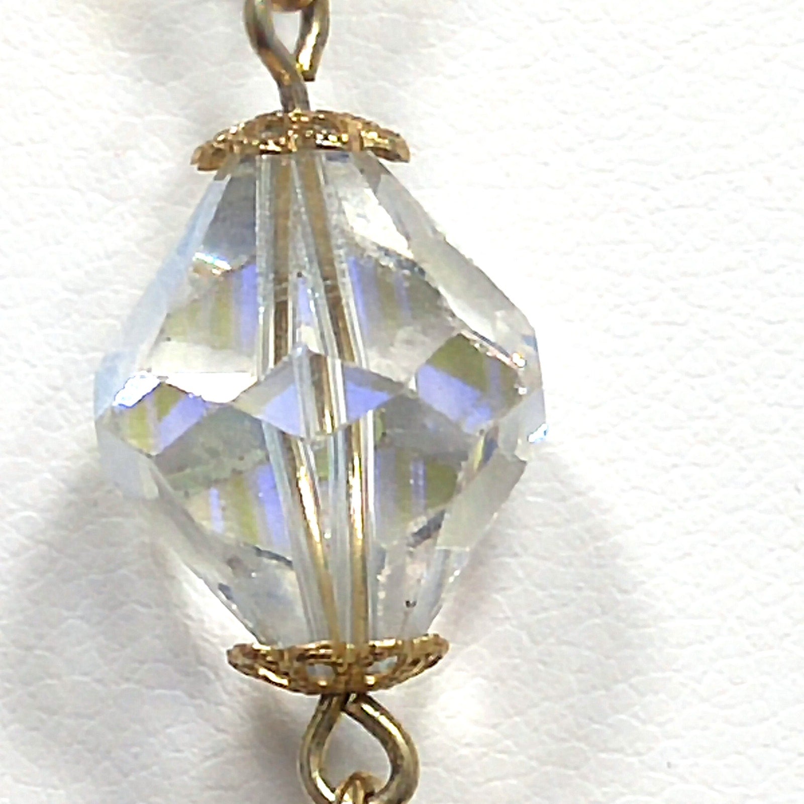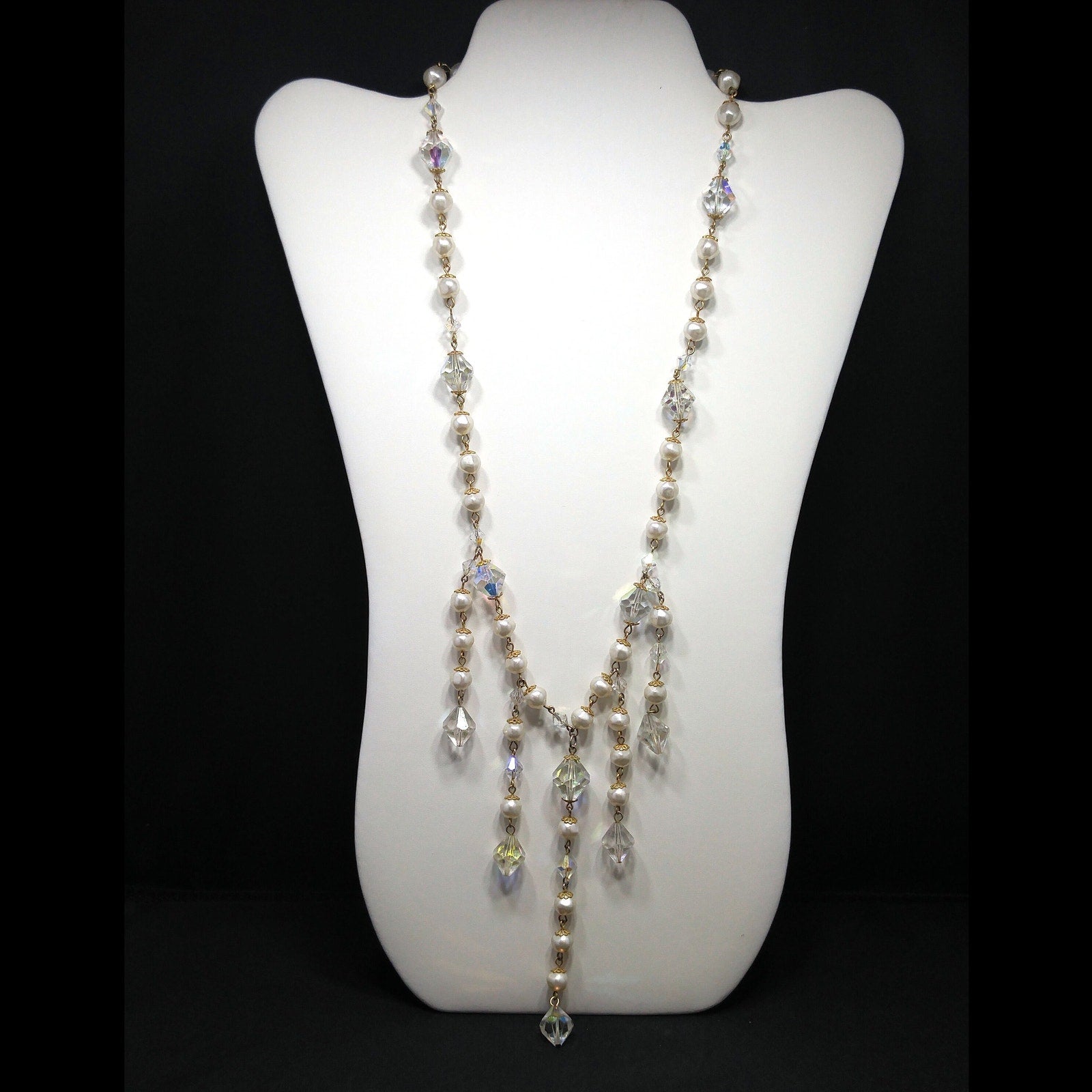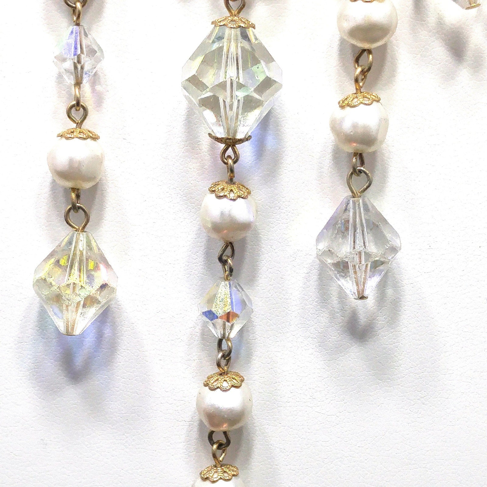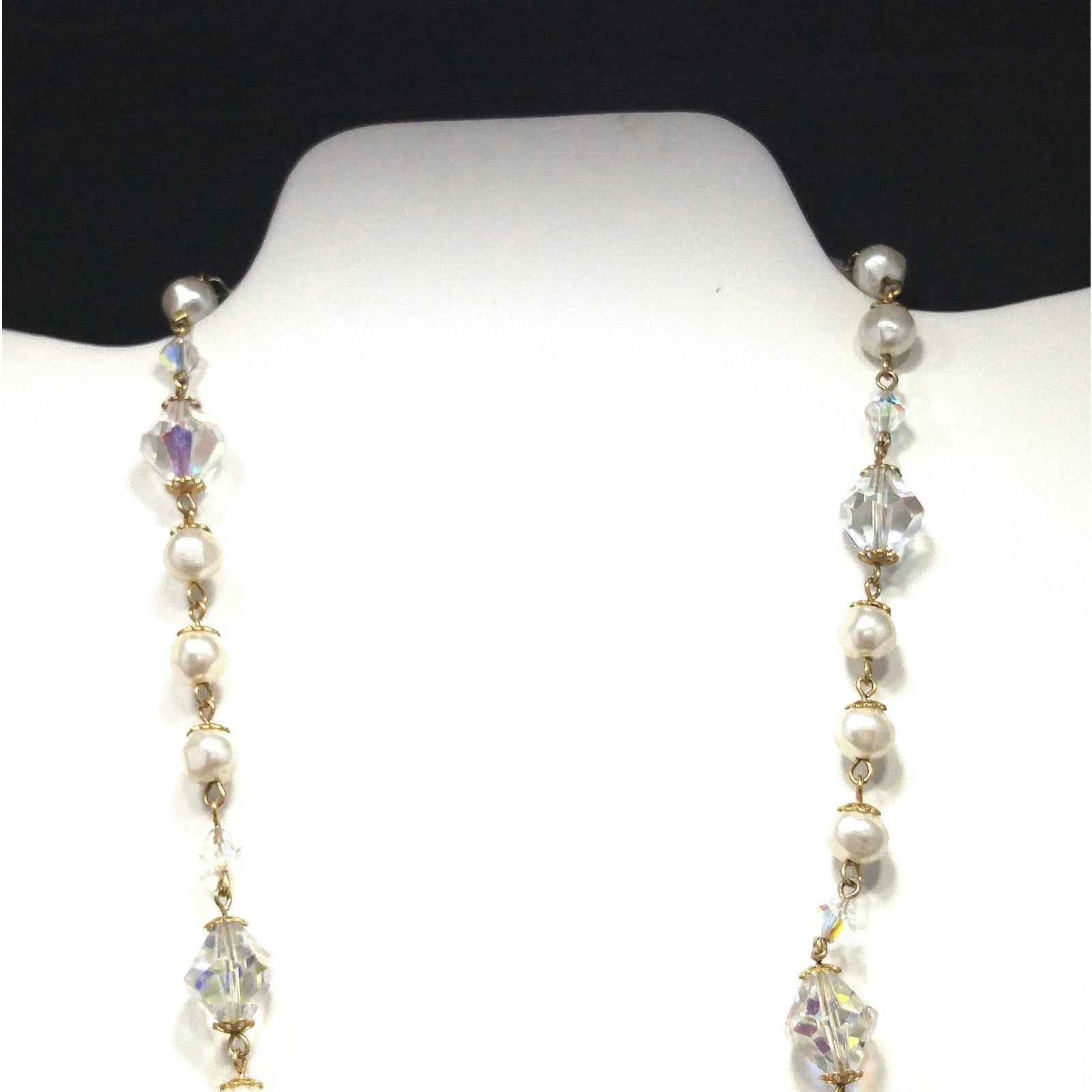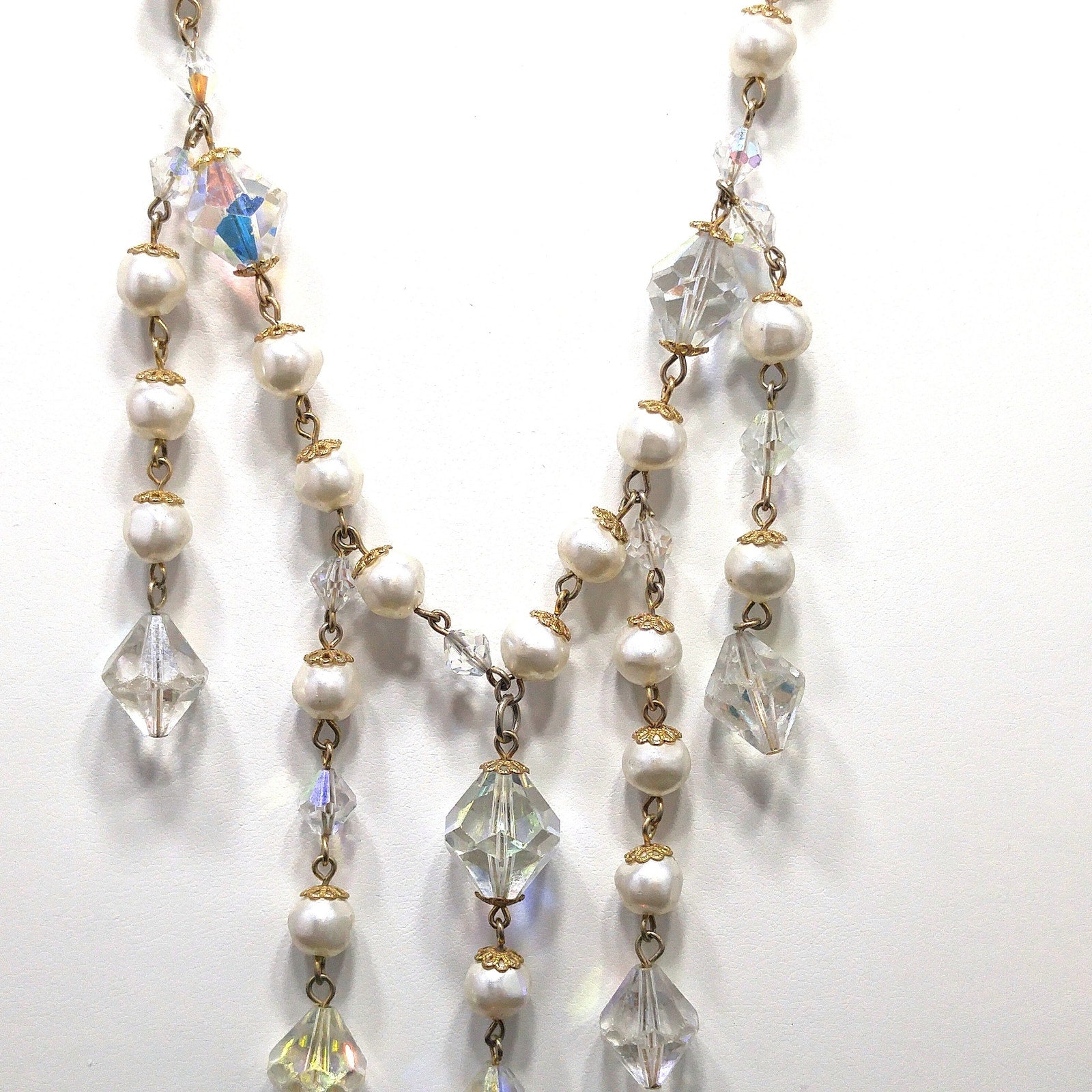 Vintage Crystal Faux Pearl Dangle Necklace, Large Aurora Borealis Crystal Beads, Vintage Jewelry