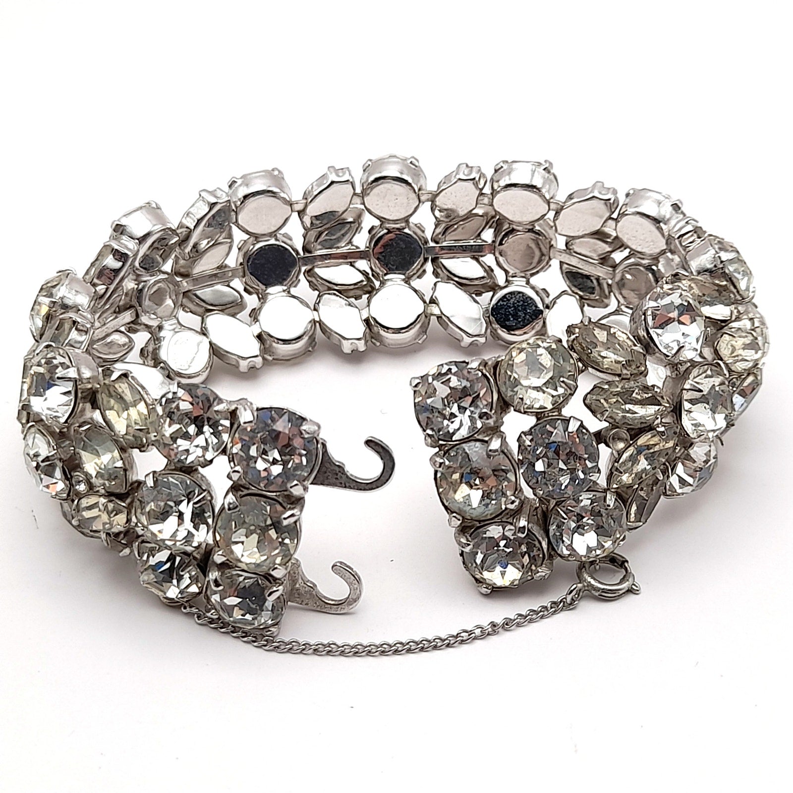 Vintage Eisenberg Ice Wide Rhinestone Bracelet | 1950s Bridal Statement