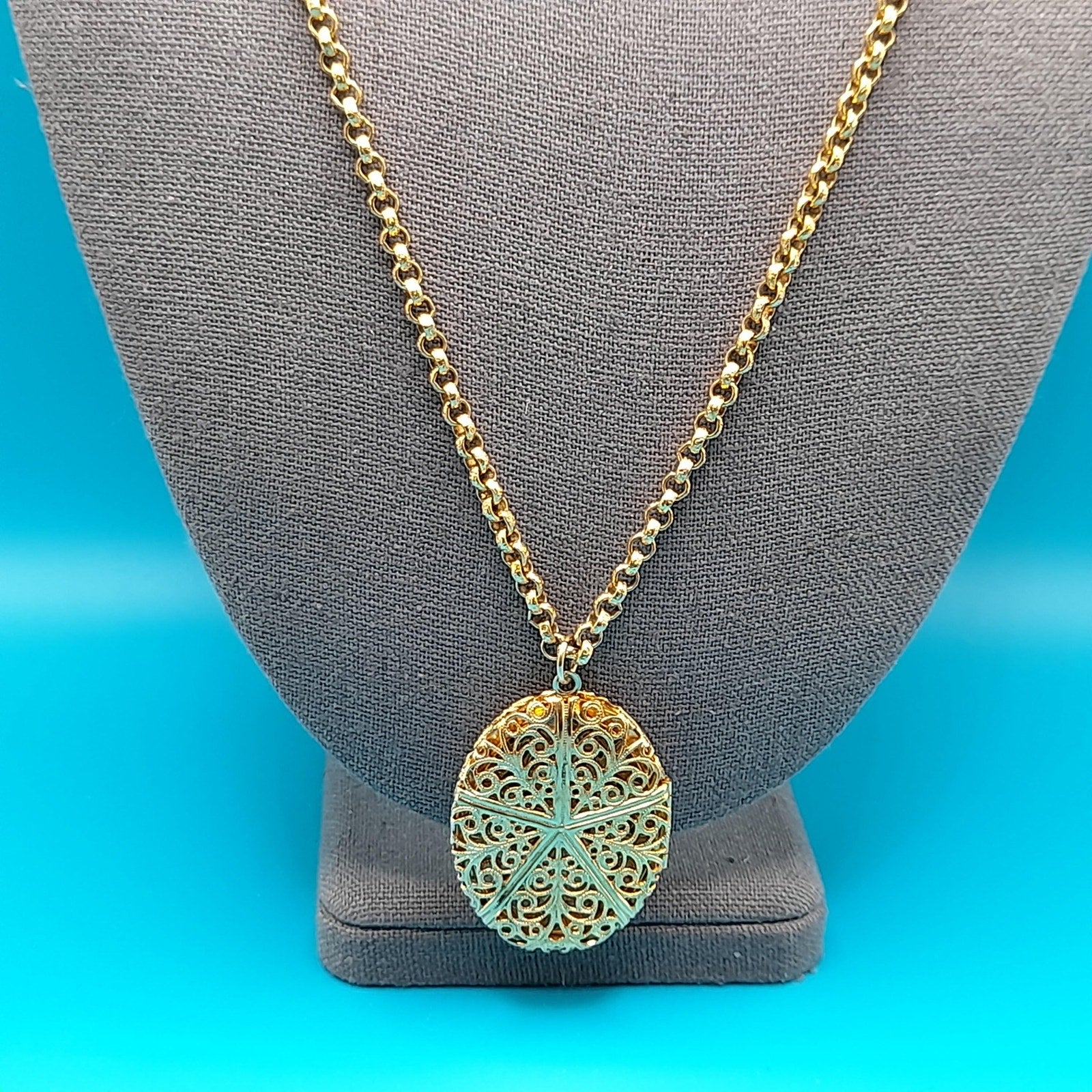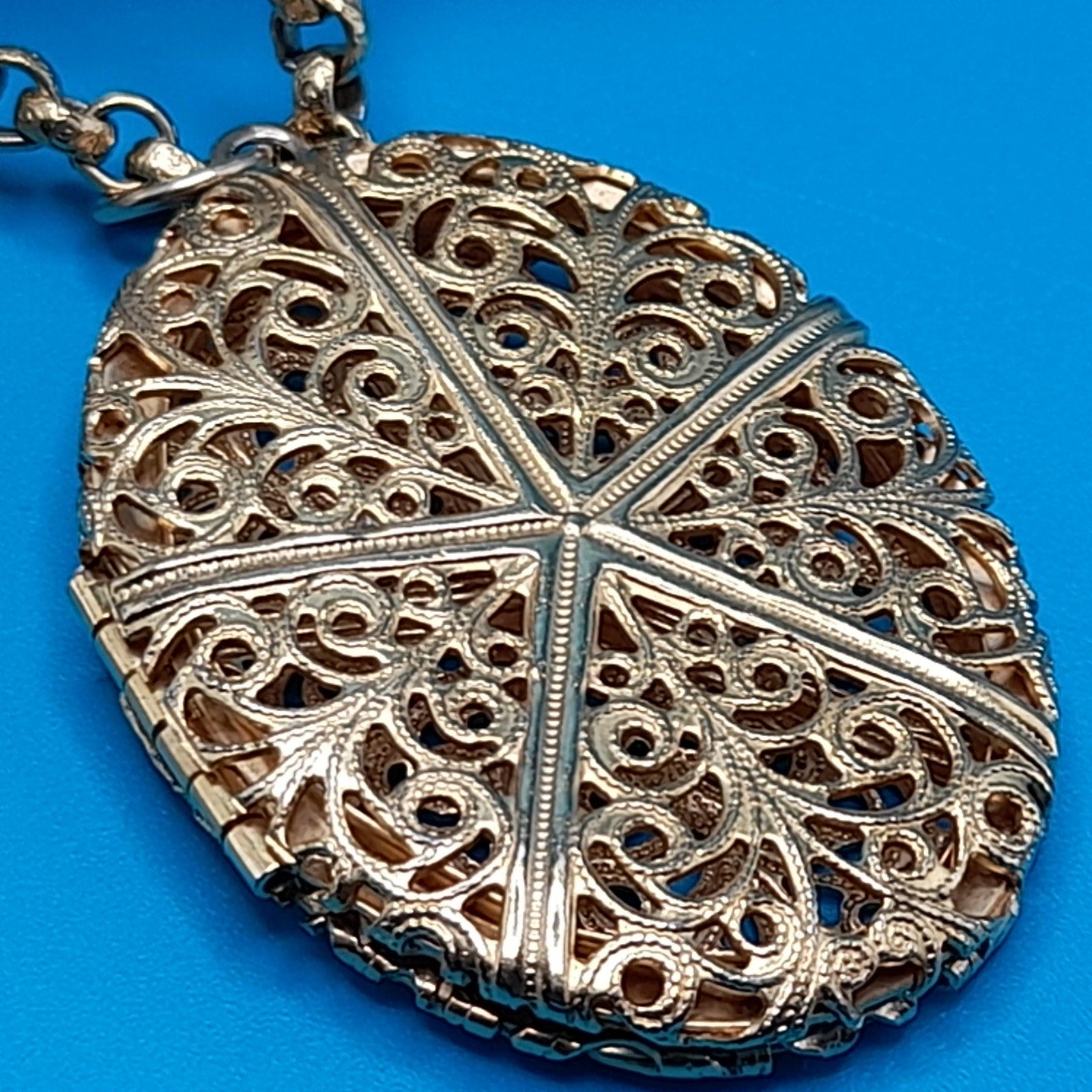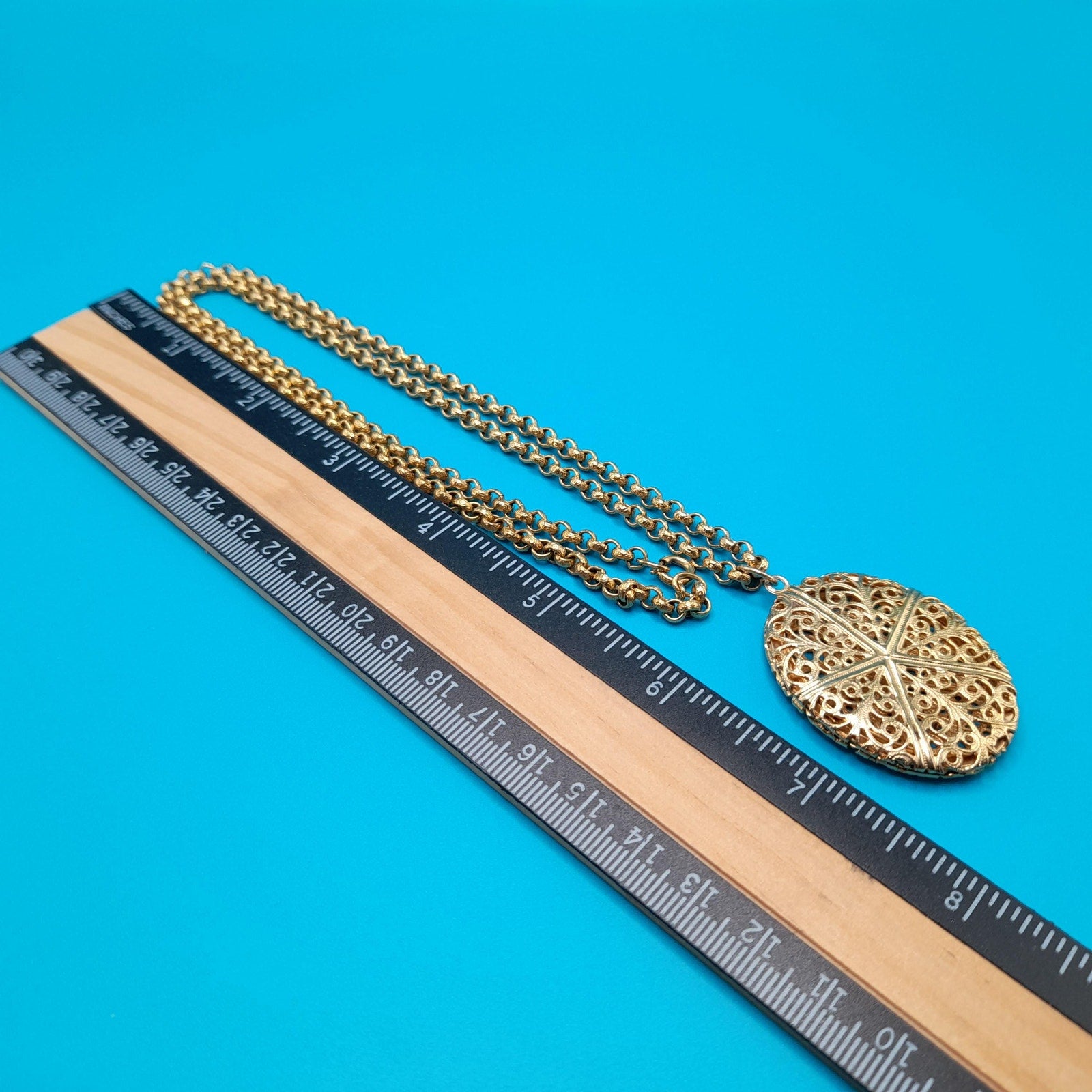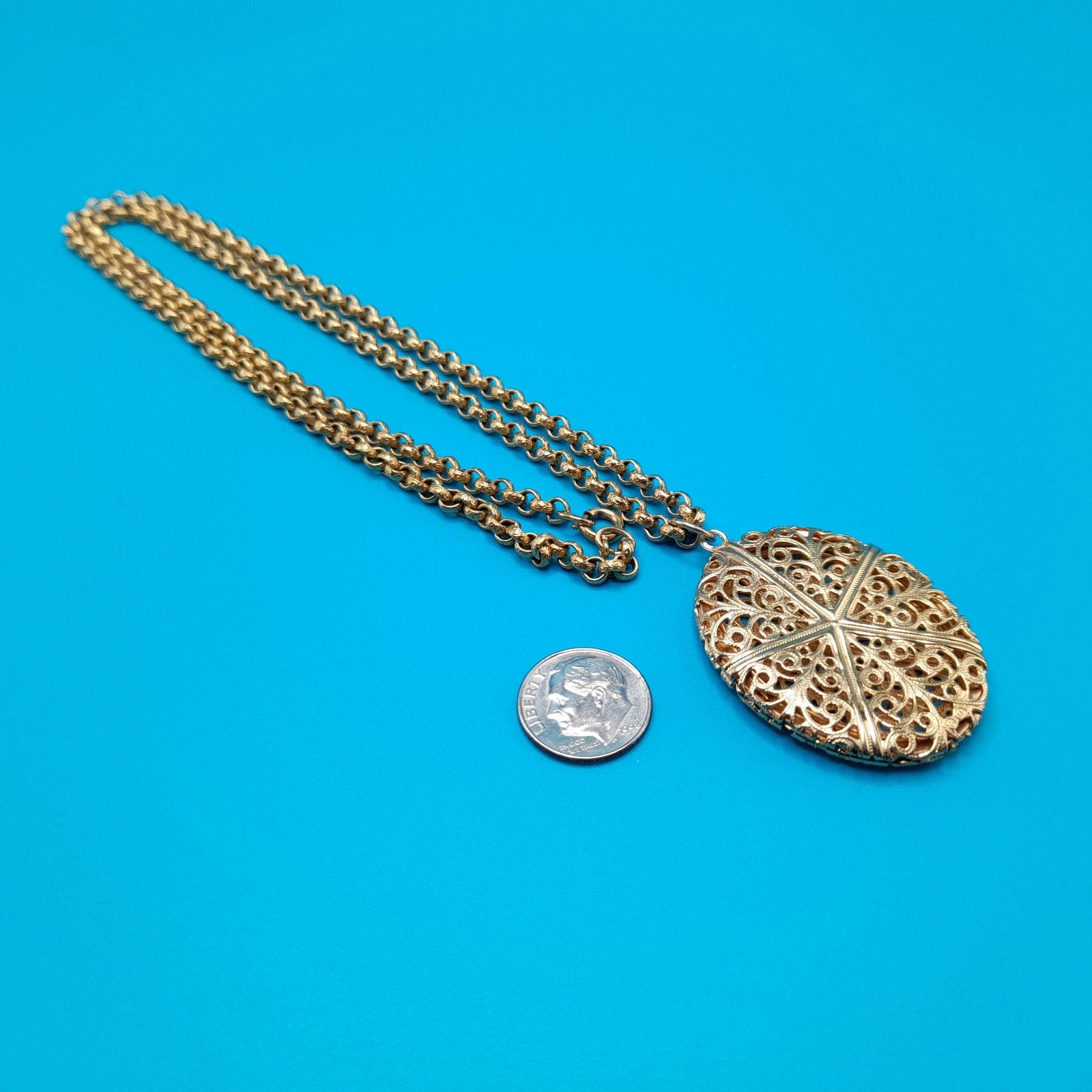 Vintage Filigree Locket Pendant Necklace, 24", Two Photo Locket, 1960s Jewelry
