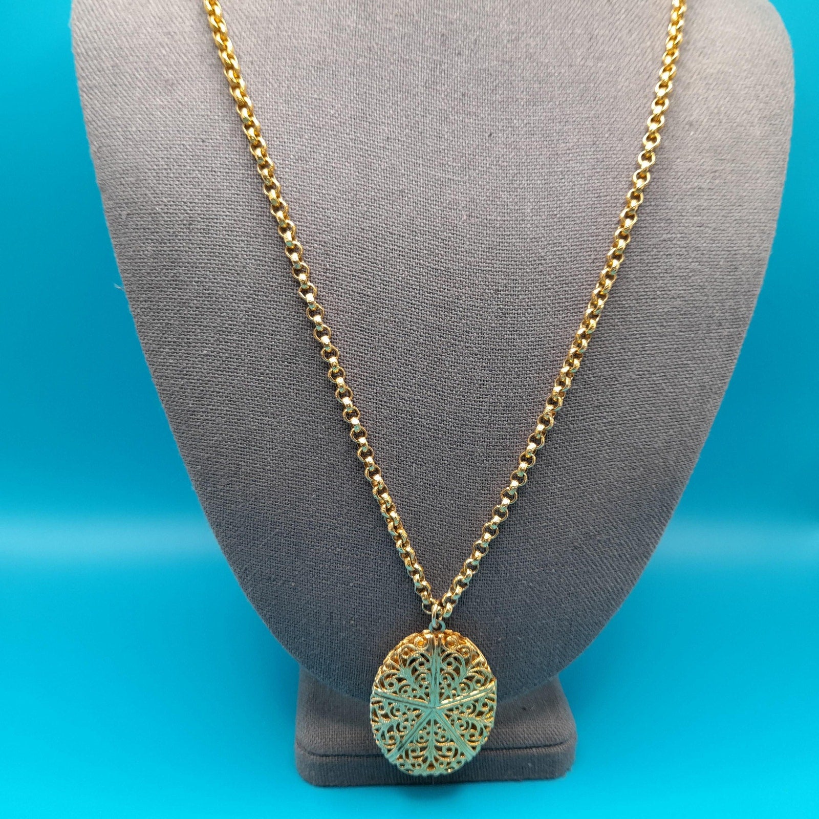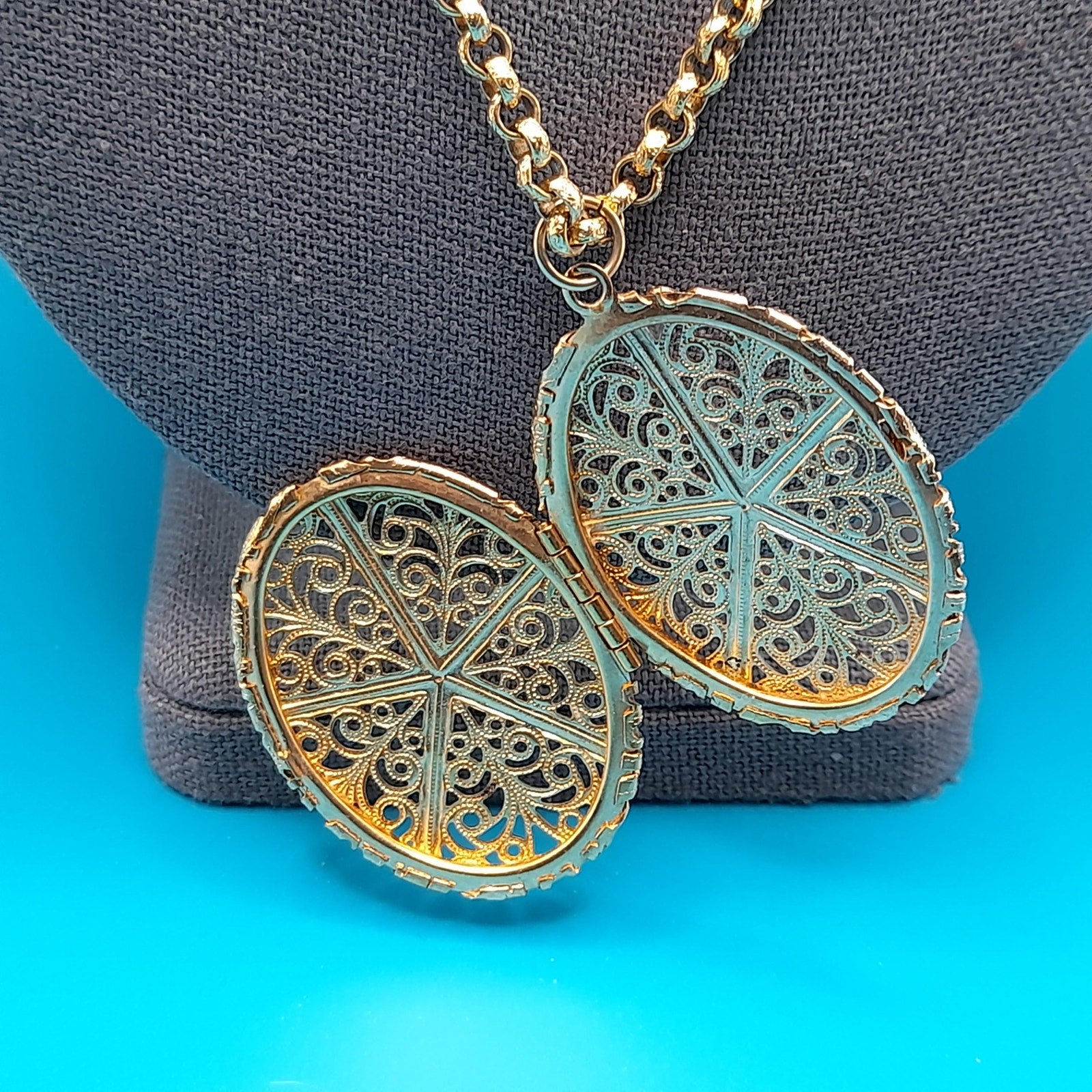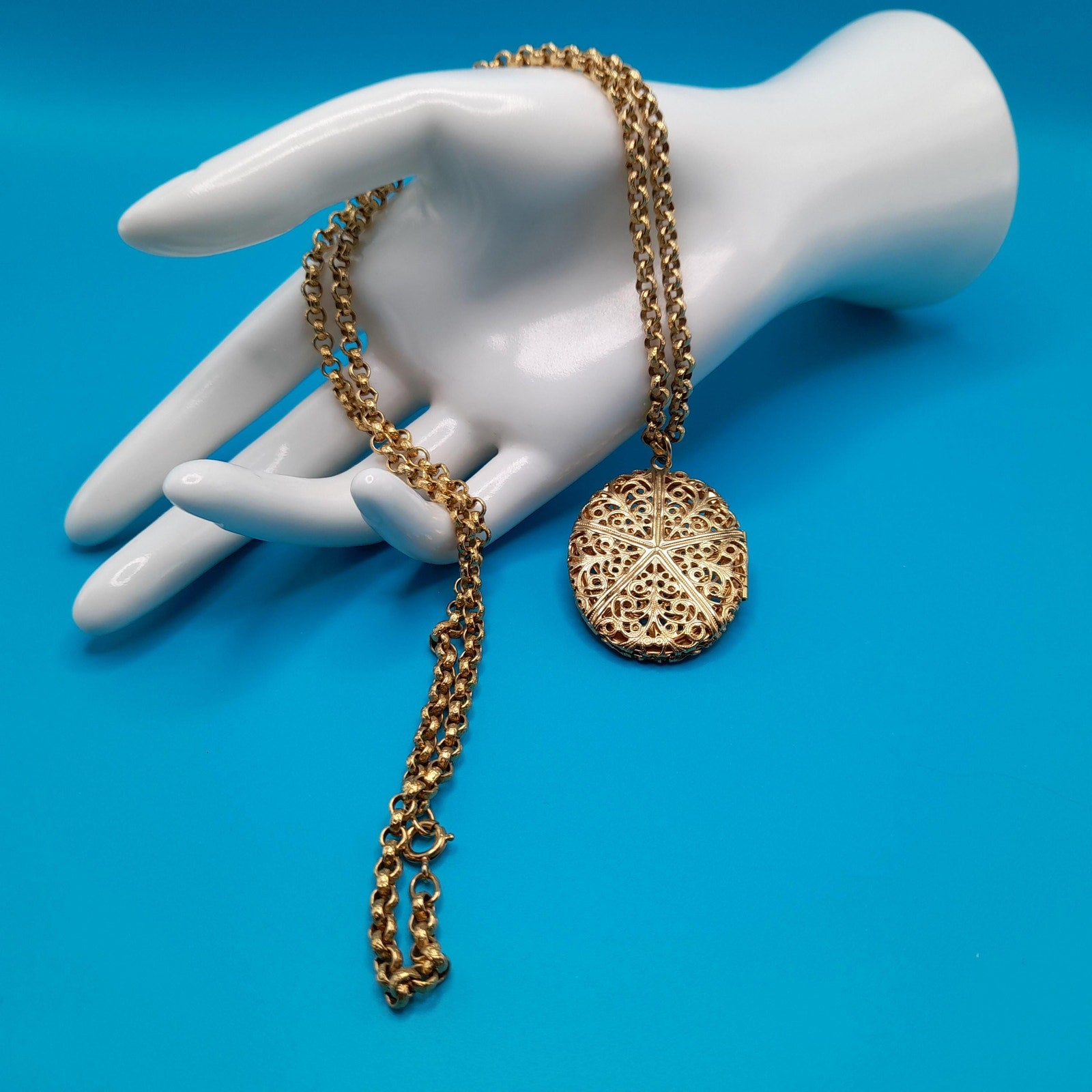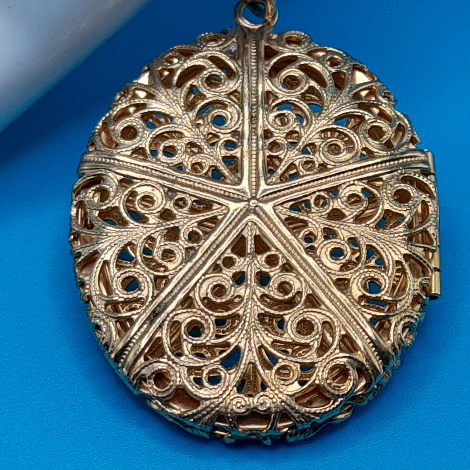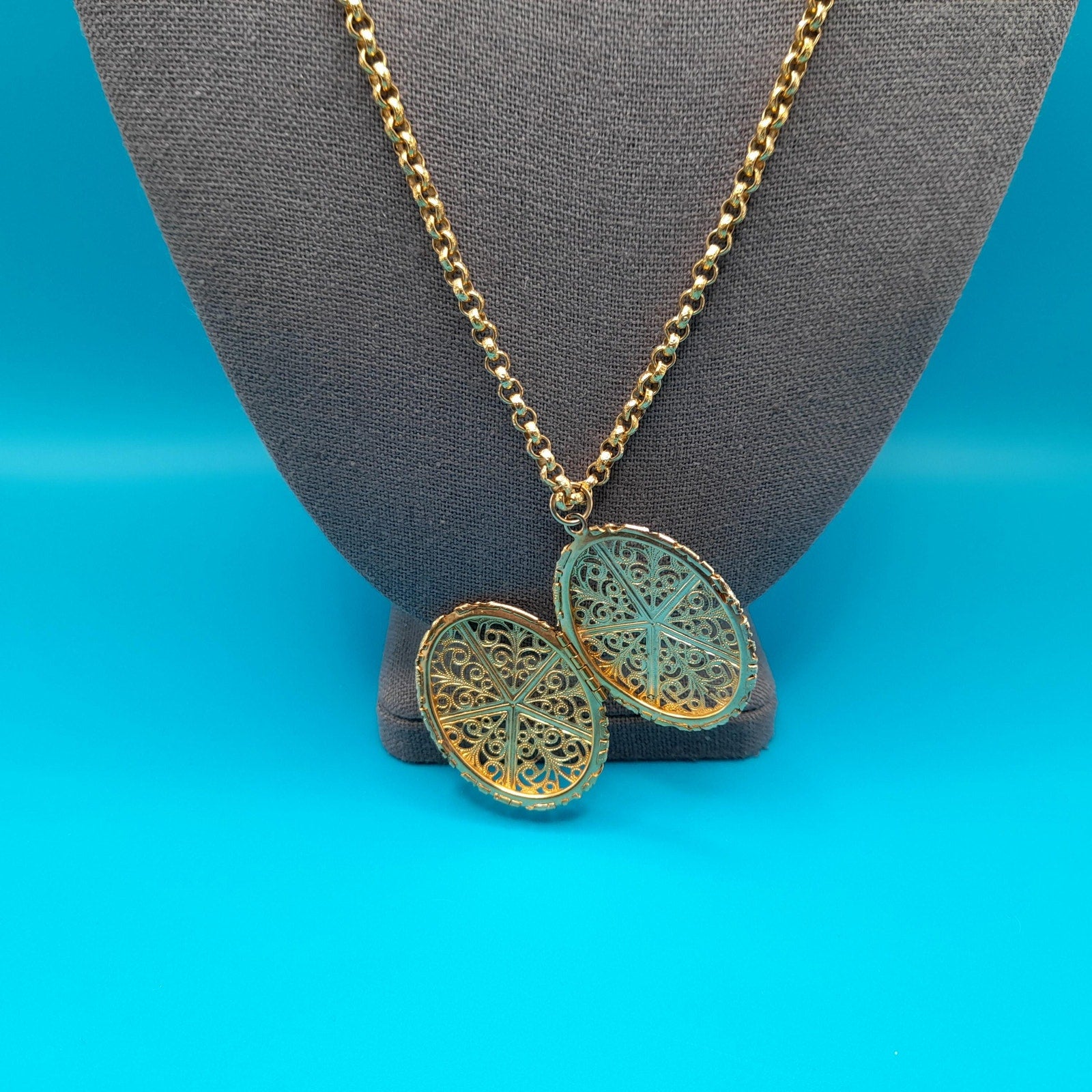 Vintage Filigree Locket Pendant Necklace, 24", Two Photo Locket, 1960s Jewelry