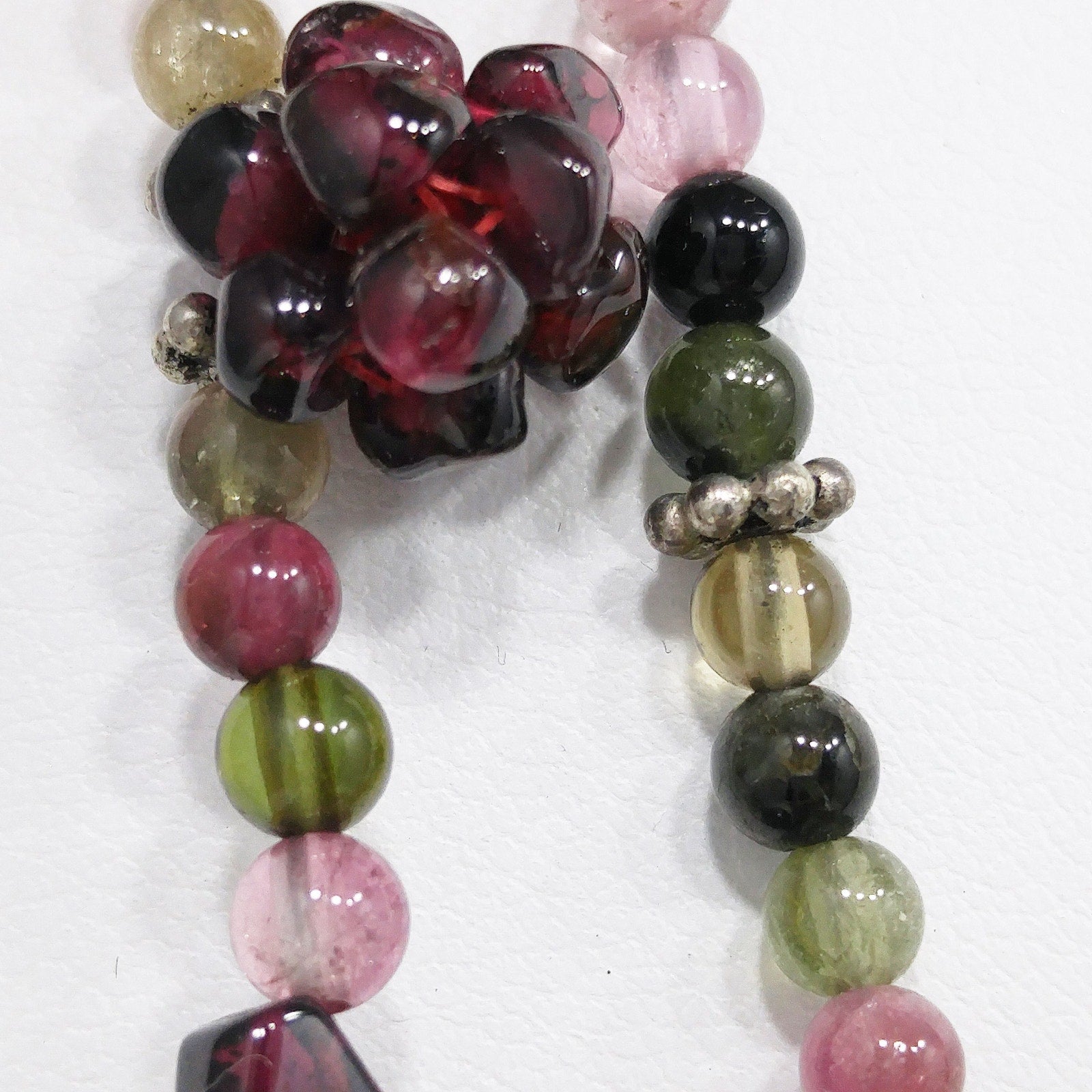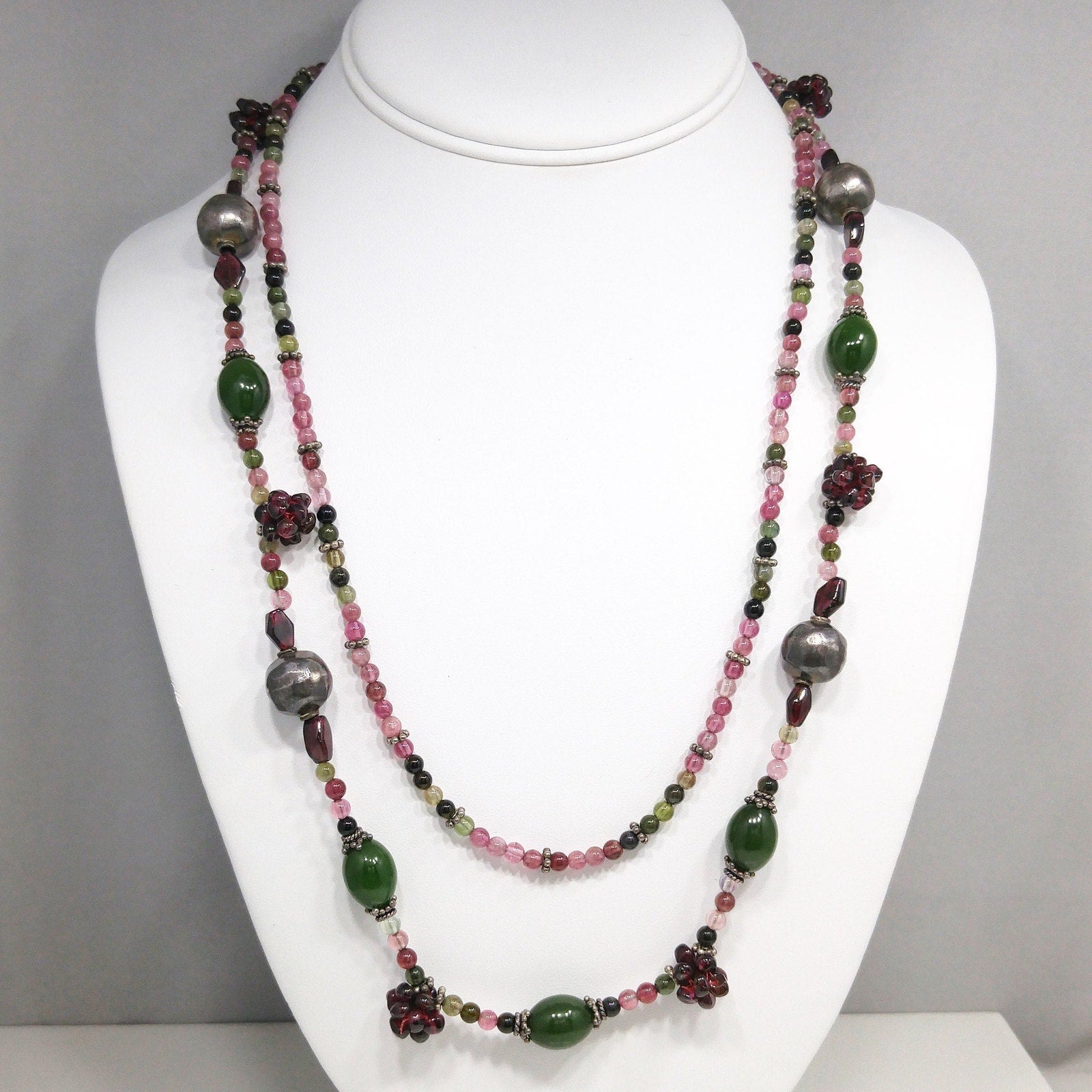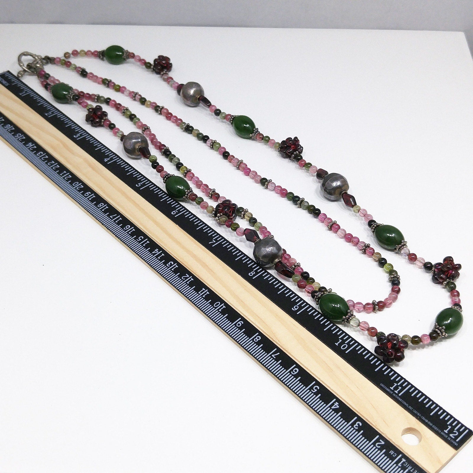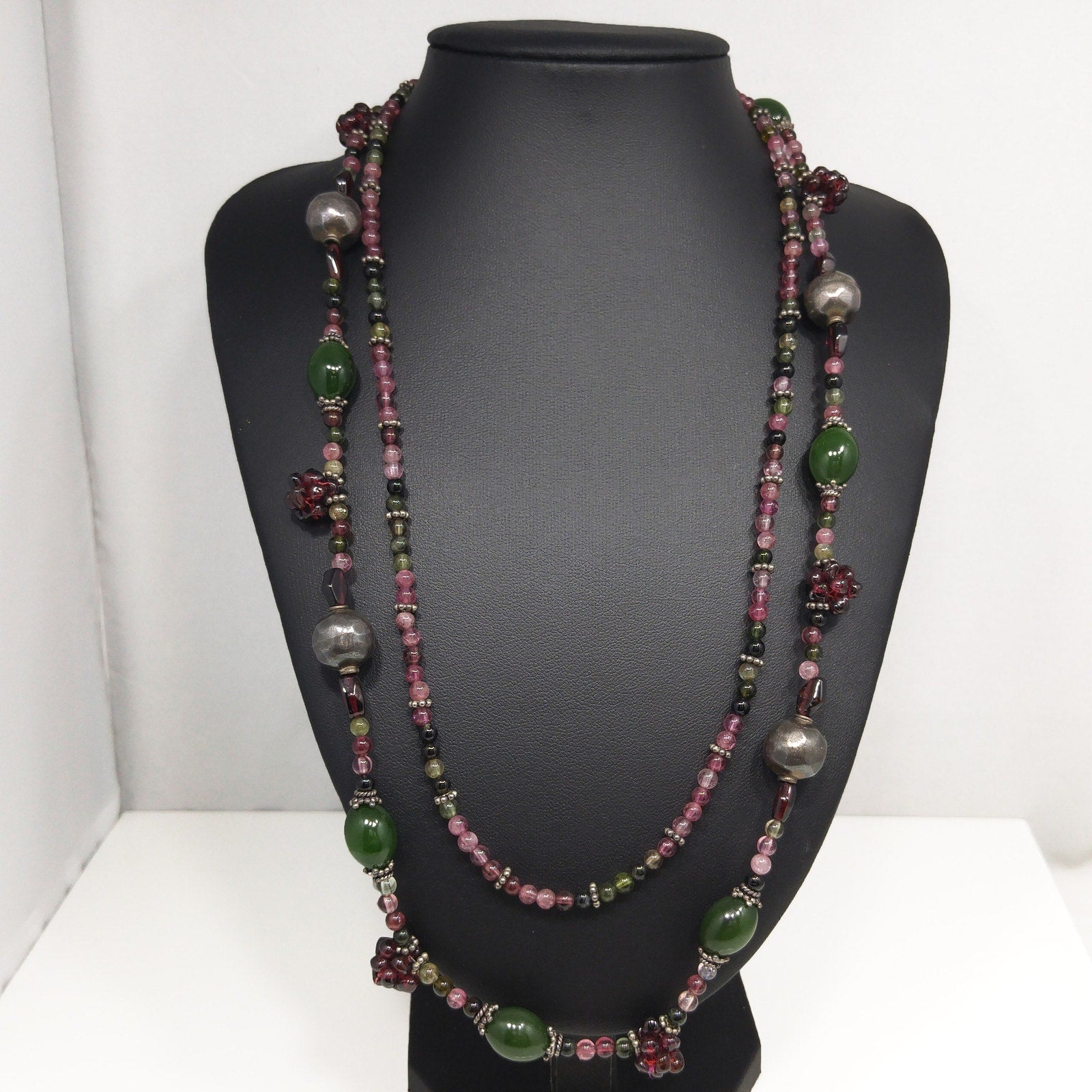 Vintage Gemstone Beaded Necklace, Garnet Clusters, Two Strands, 1990s Vintage Jewelry