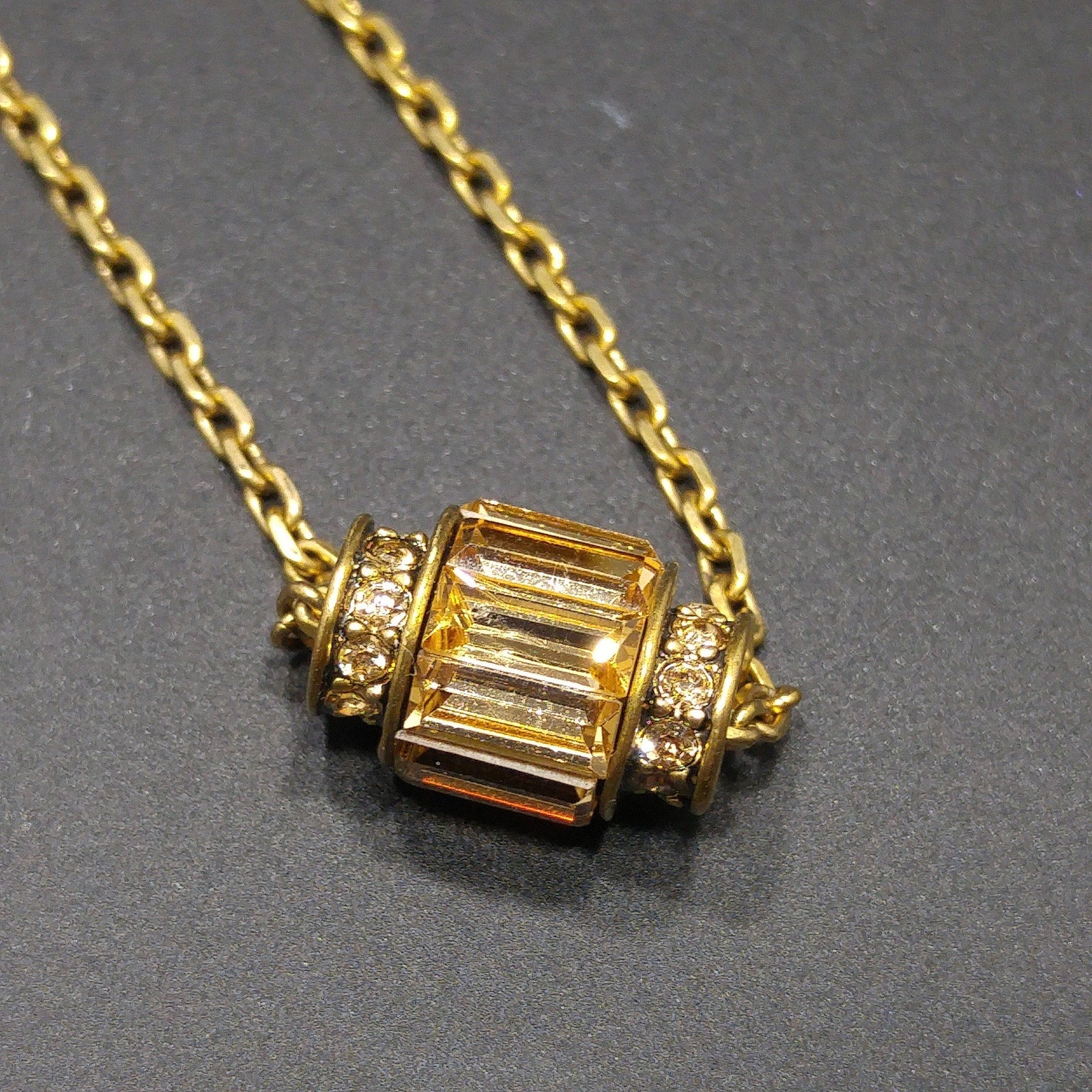 Vintage Givenchy Barrel Pendant Necklace, Topaz & Clear Rhinestones, 1990s