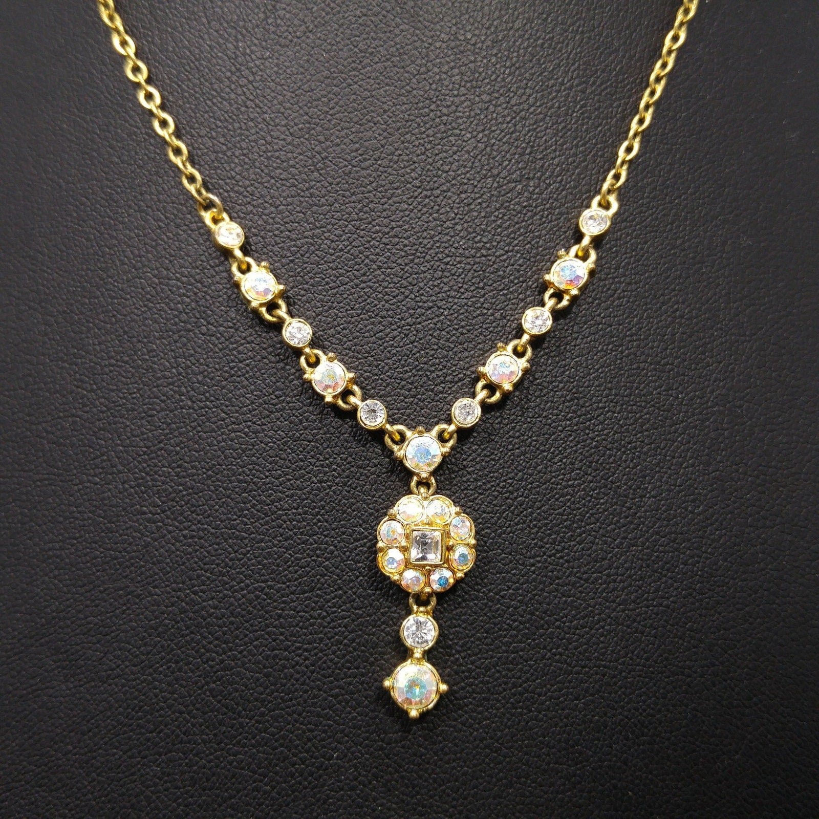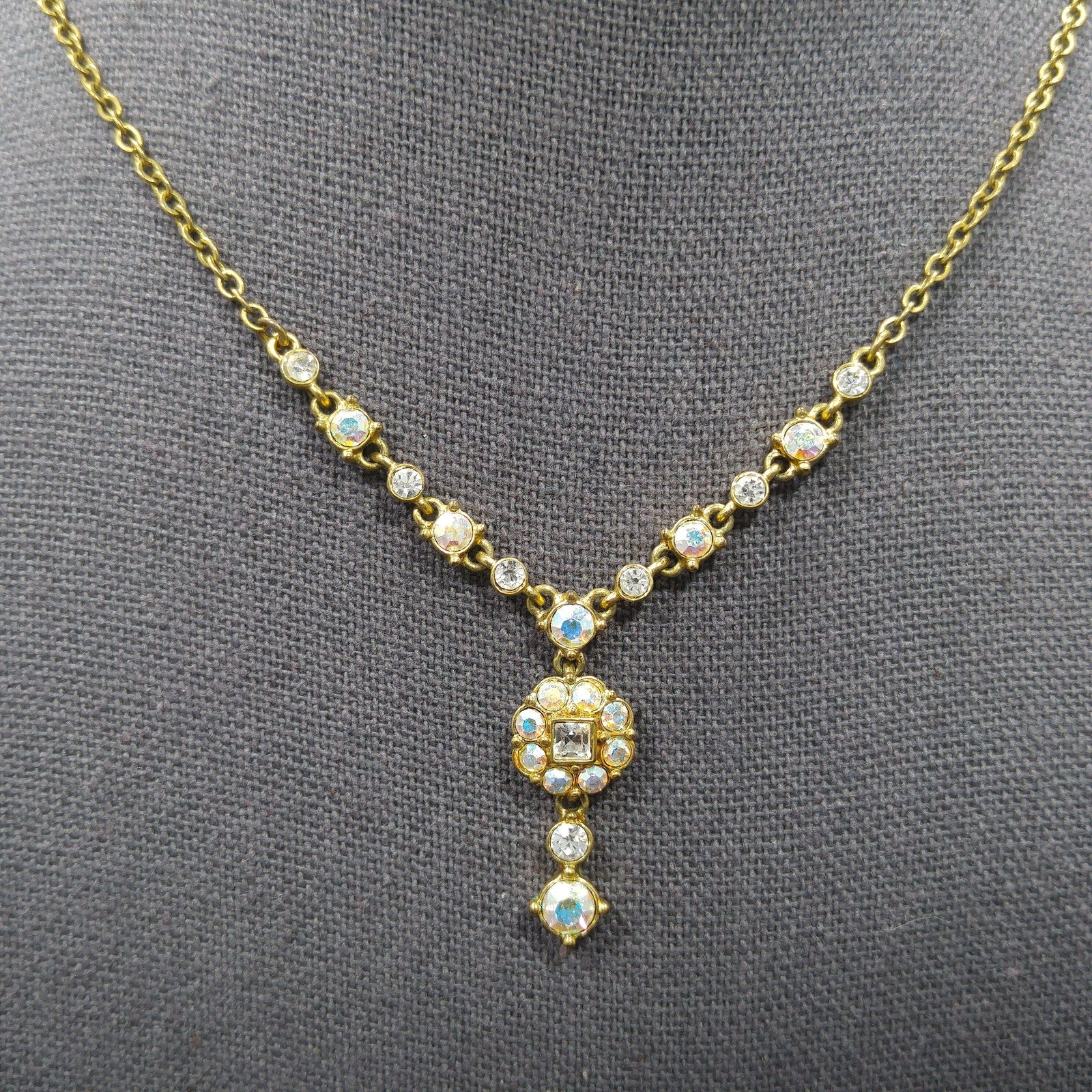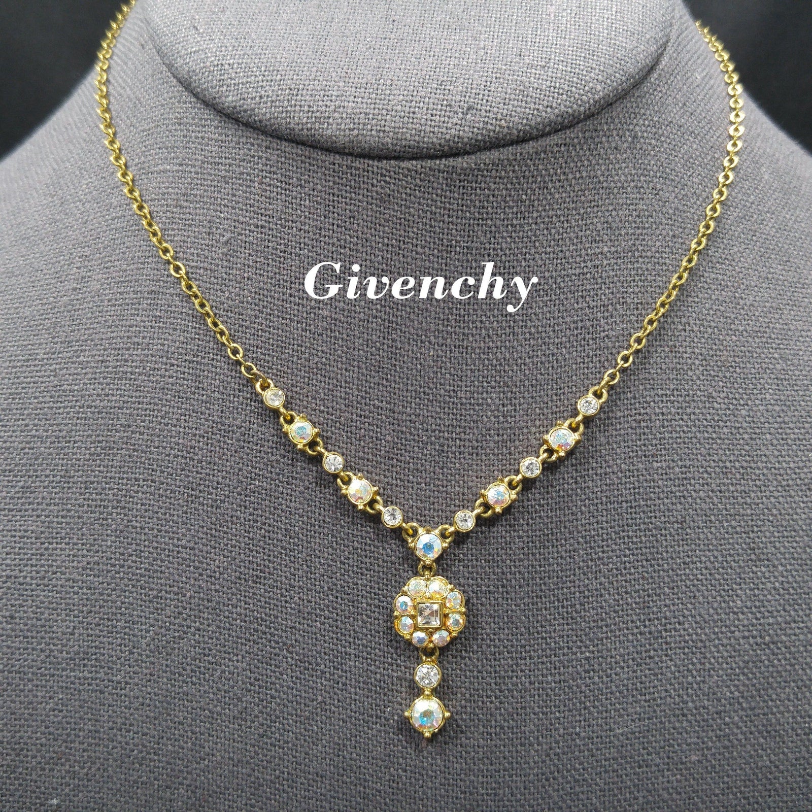 Vintage Givenchy Necklace – Aurora Borealis Rhinestones, Pendant Drop, 1990s