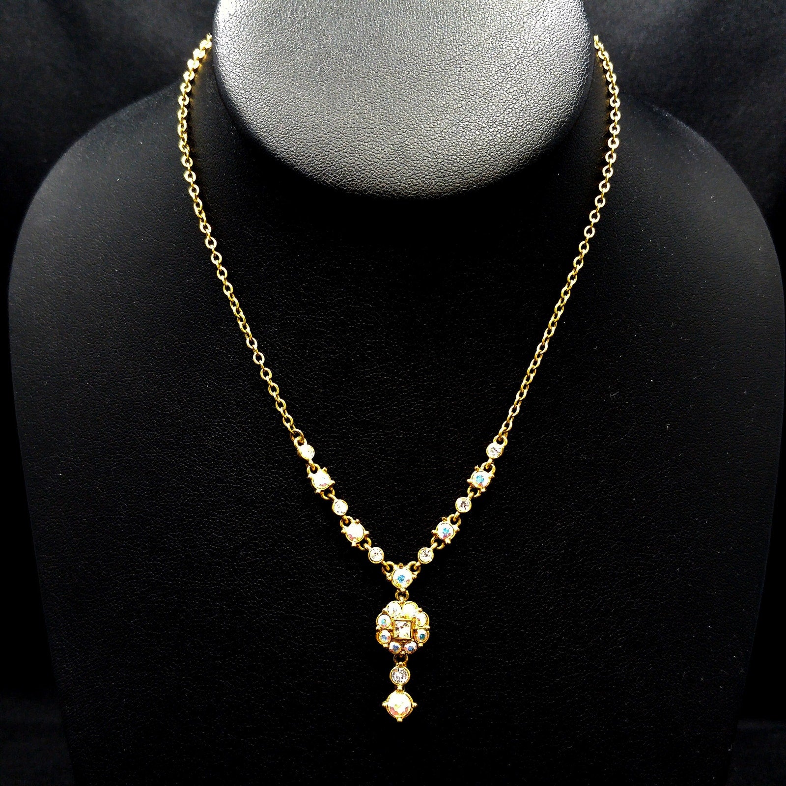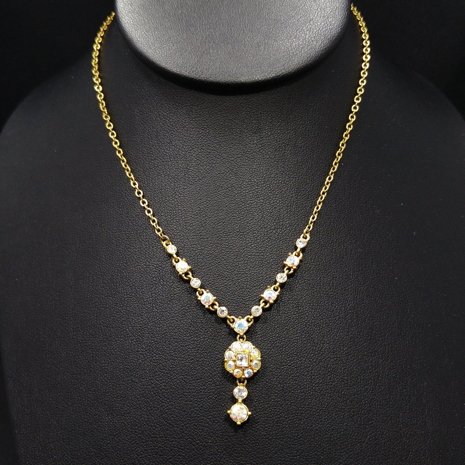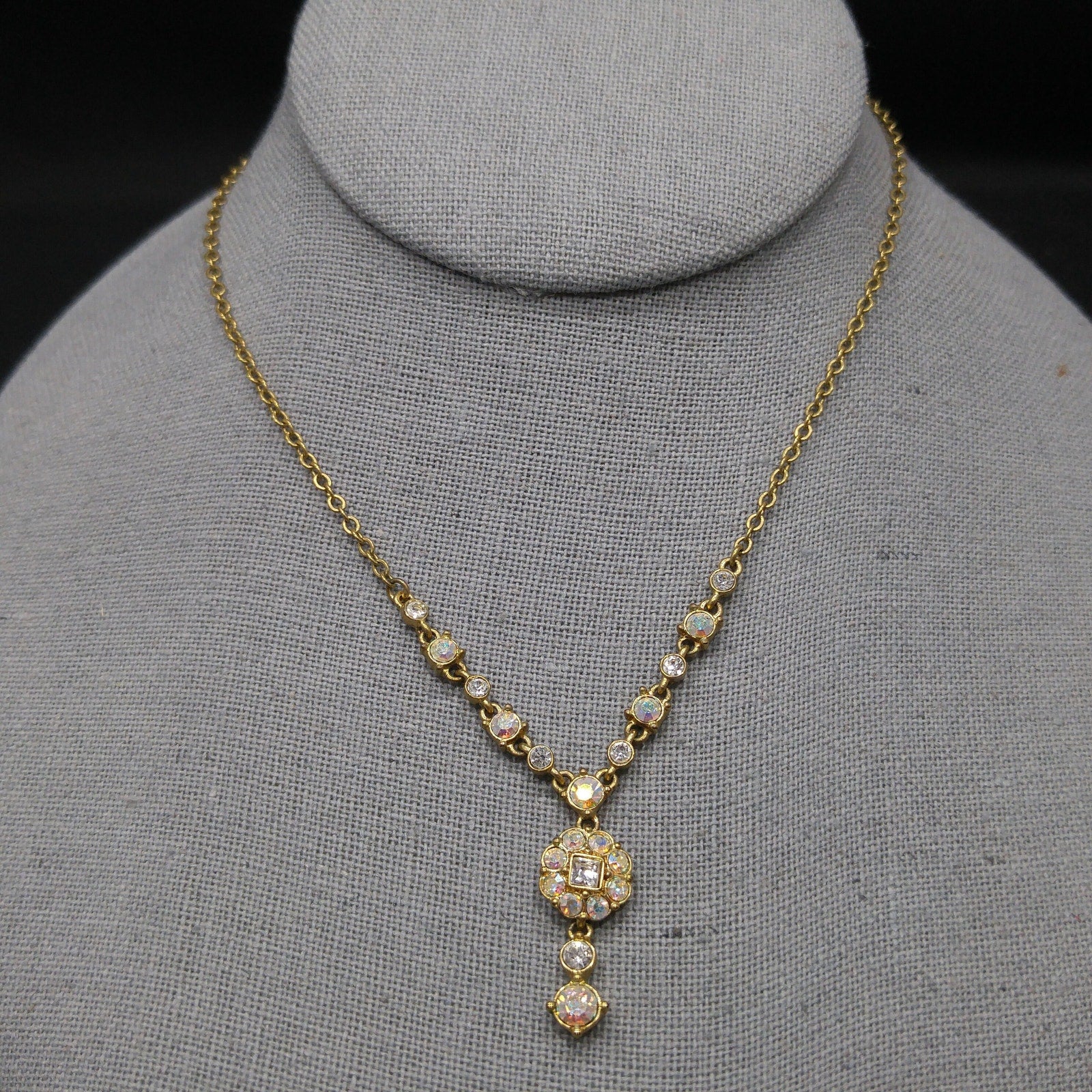 Vintage Givenchy Necklace – Aurora Borealis Rhinestones, Pendant Drop, 1990s