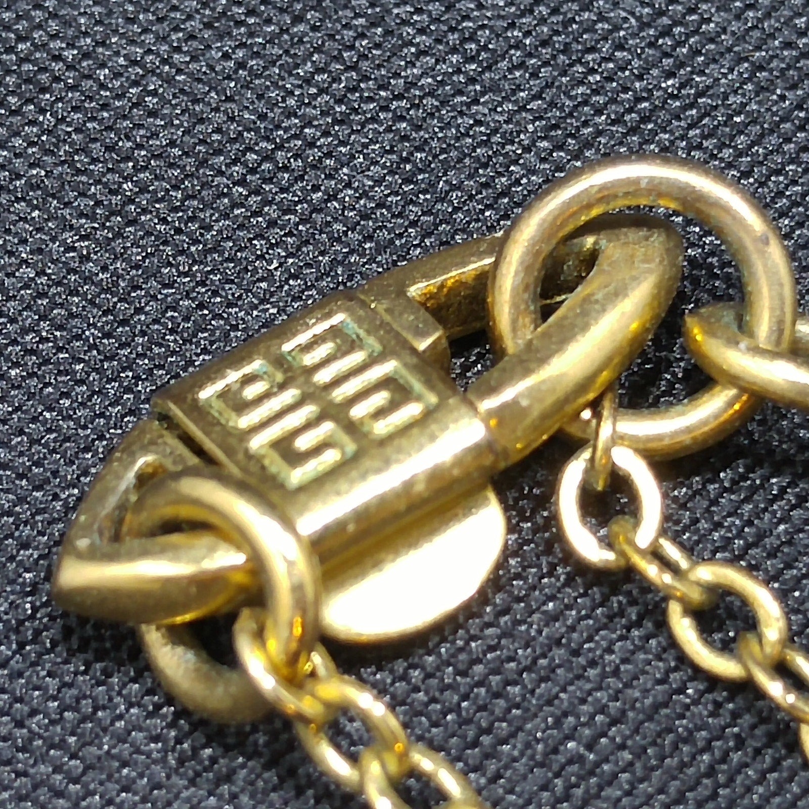 The extension chain allows the necklace to be worn between 15 to 18 inches, secured with the signature Givenchy clasp. The pendant reverse and the end fob are both signed Givenchy, confirming authenticity.