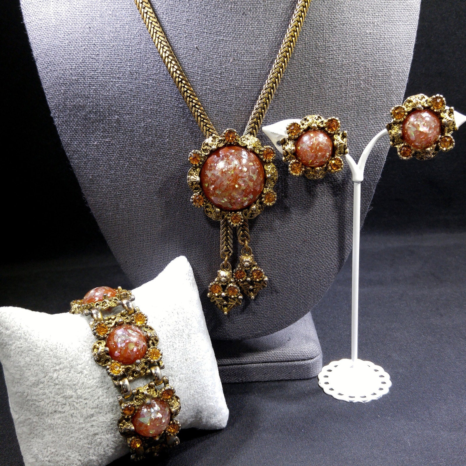 • Three-piece vintage set: necklace, bracelet & clip earrings
