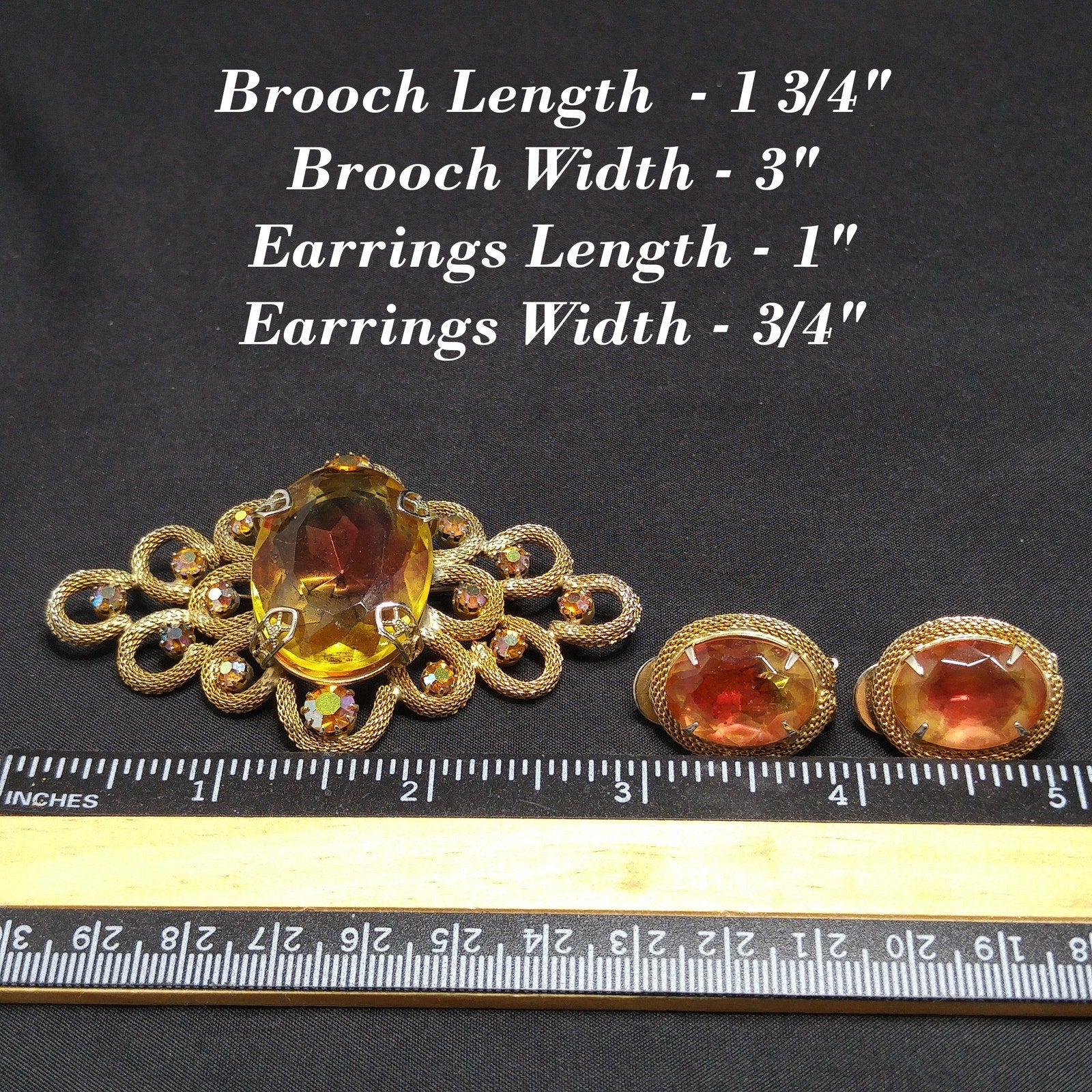 *Approximate Measurements: Brooch Length - 1 3/4 Inches, Brooch Width - 3 Inches, Earrings Length - 1 Inch, Earrings Width - 3/4 Inch