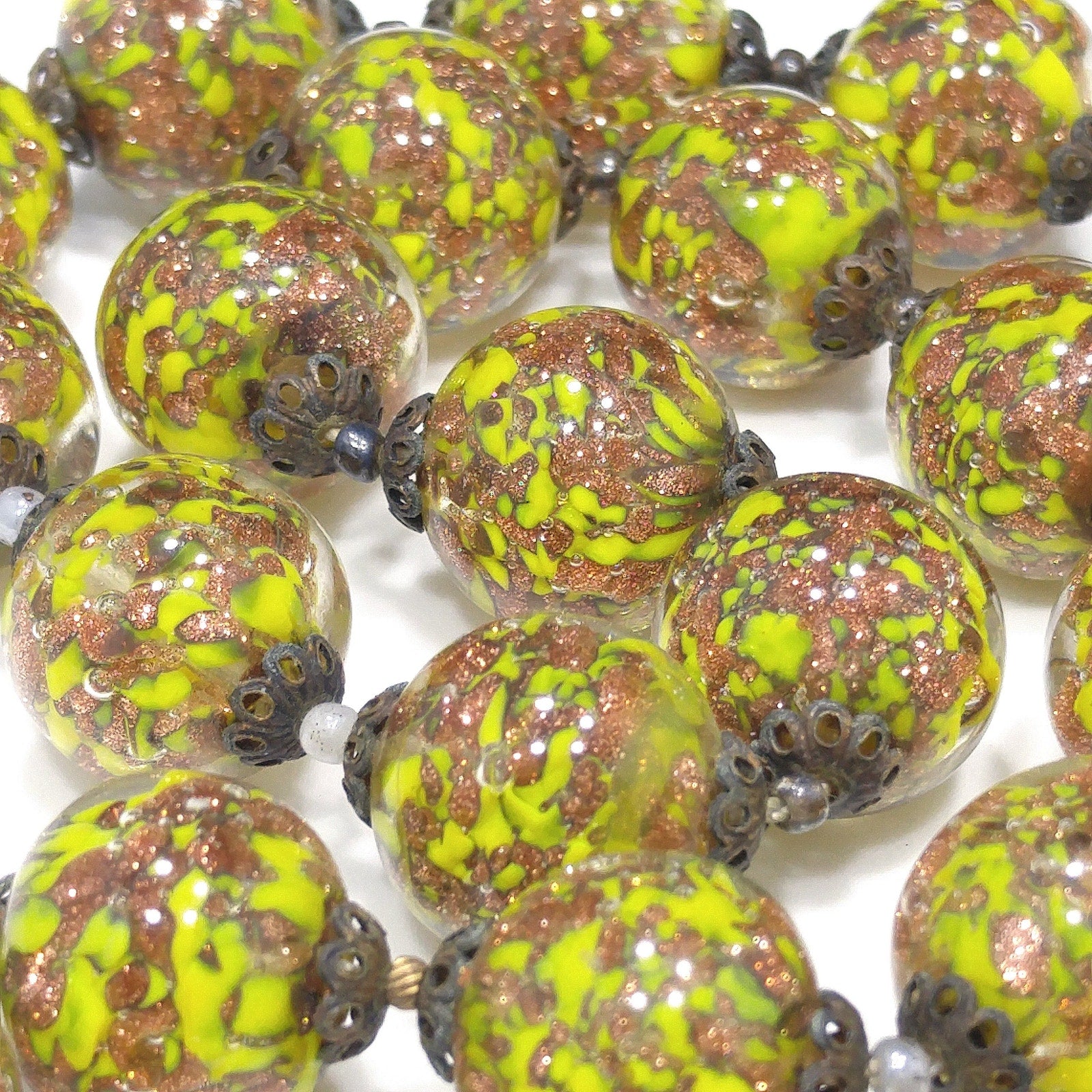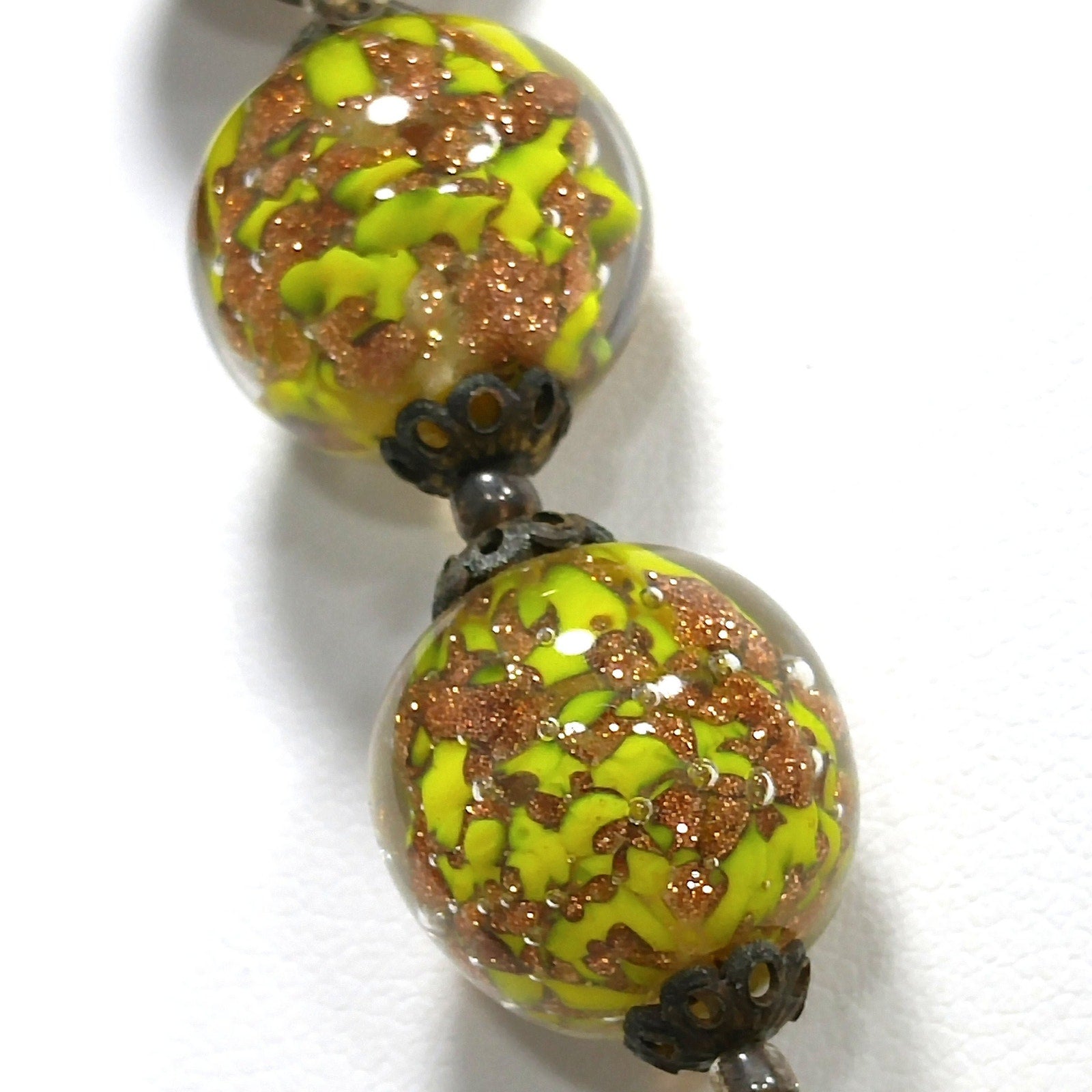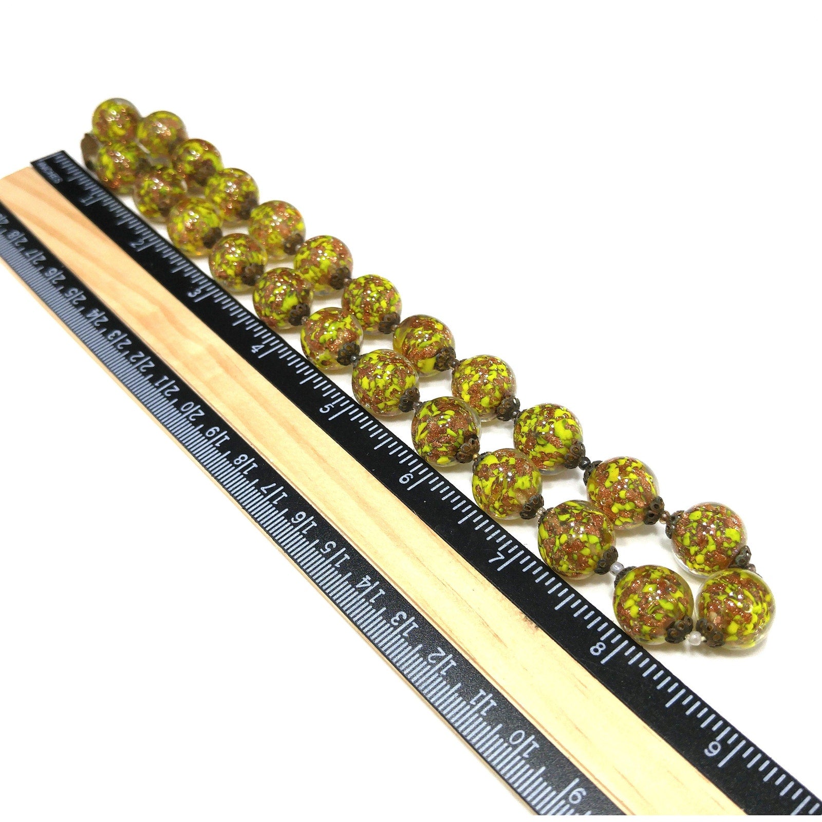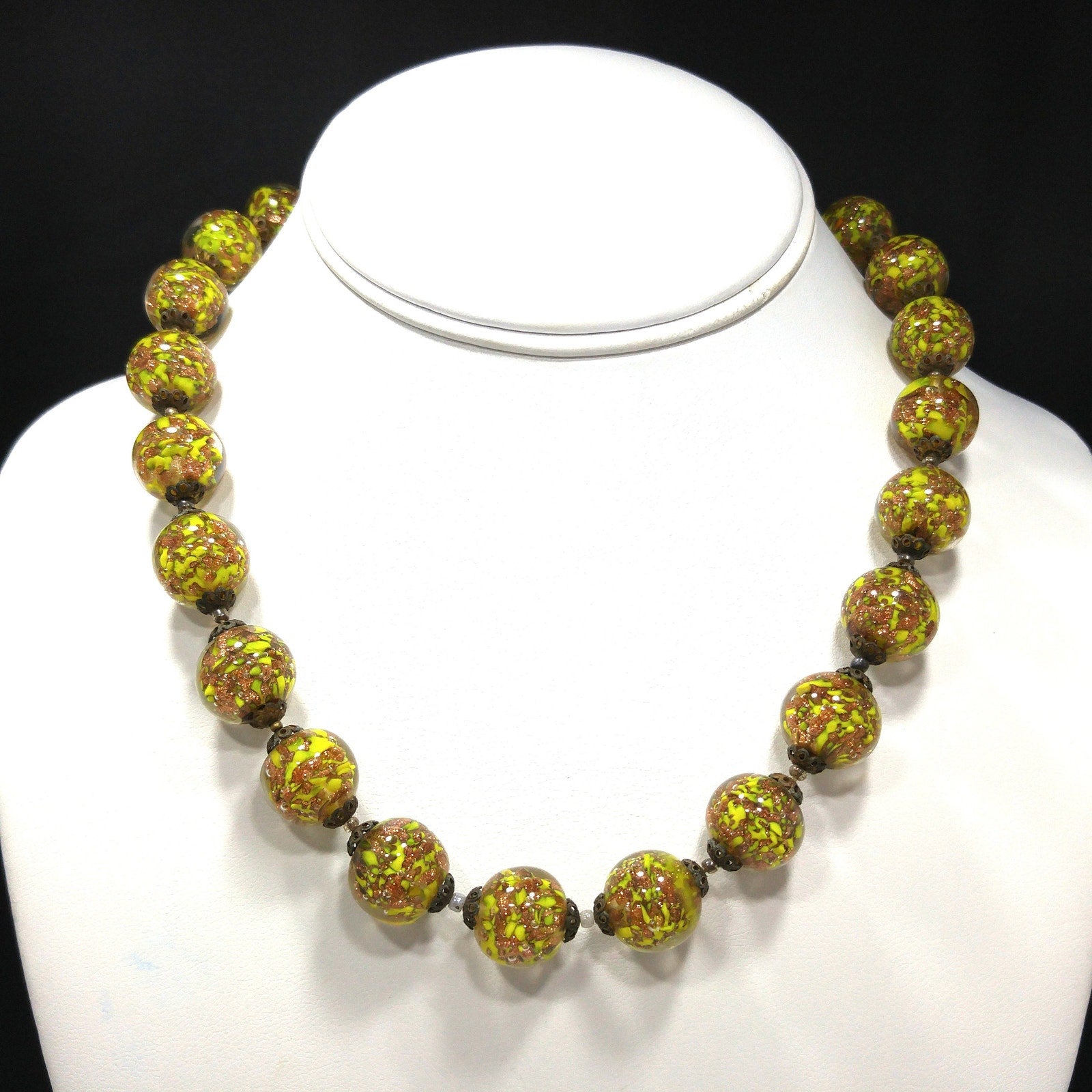 Vintage Green Venetian Glass Beaded Necklace, Copper Aventurine Italian Beads, 1930s Vintage Jewelry