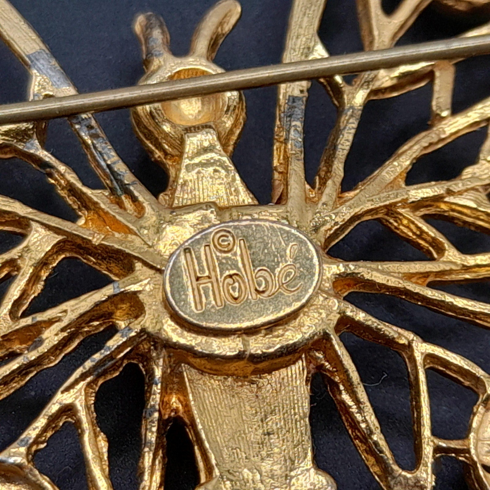 Vintage Hobe’ Gold Butterfly Brooch with Green Gemstones – 1960s Jewelry