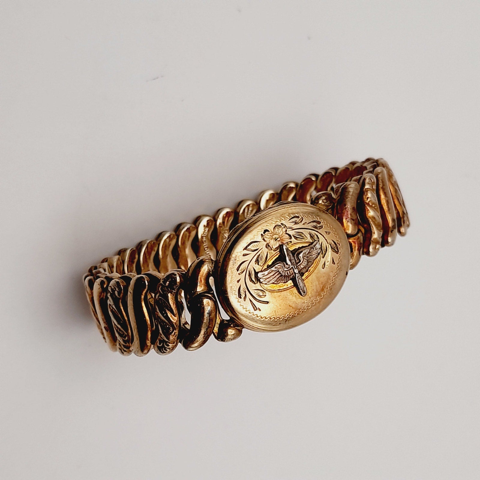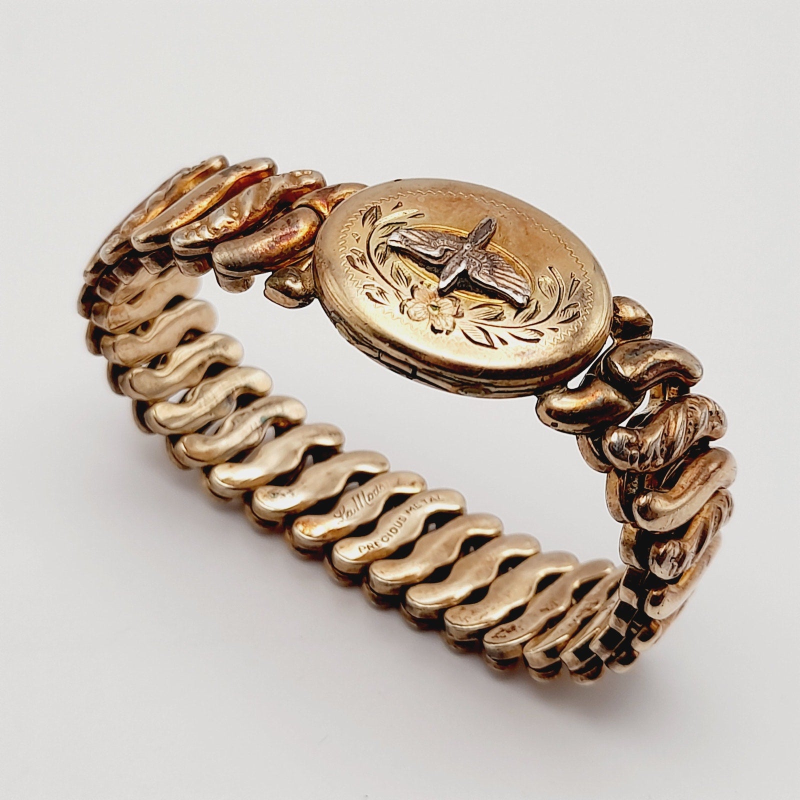 Vintage La Mode Locket Expansion Bracelet, 12K Gold-Filled Sweetheart Jewelry