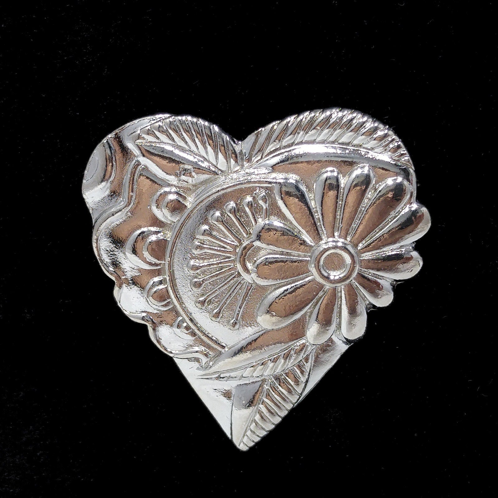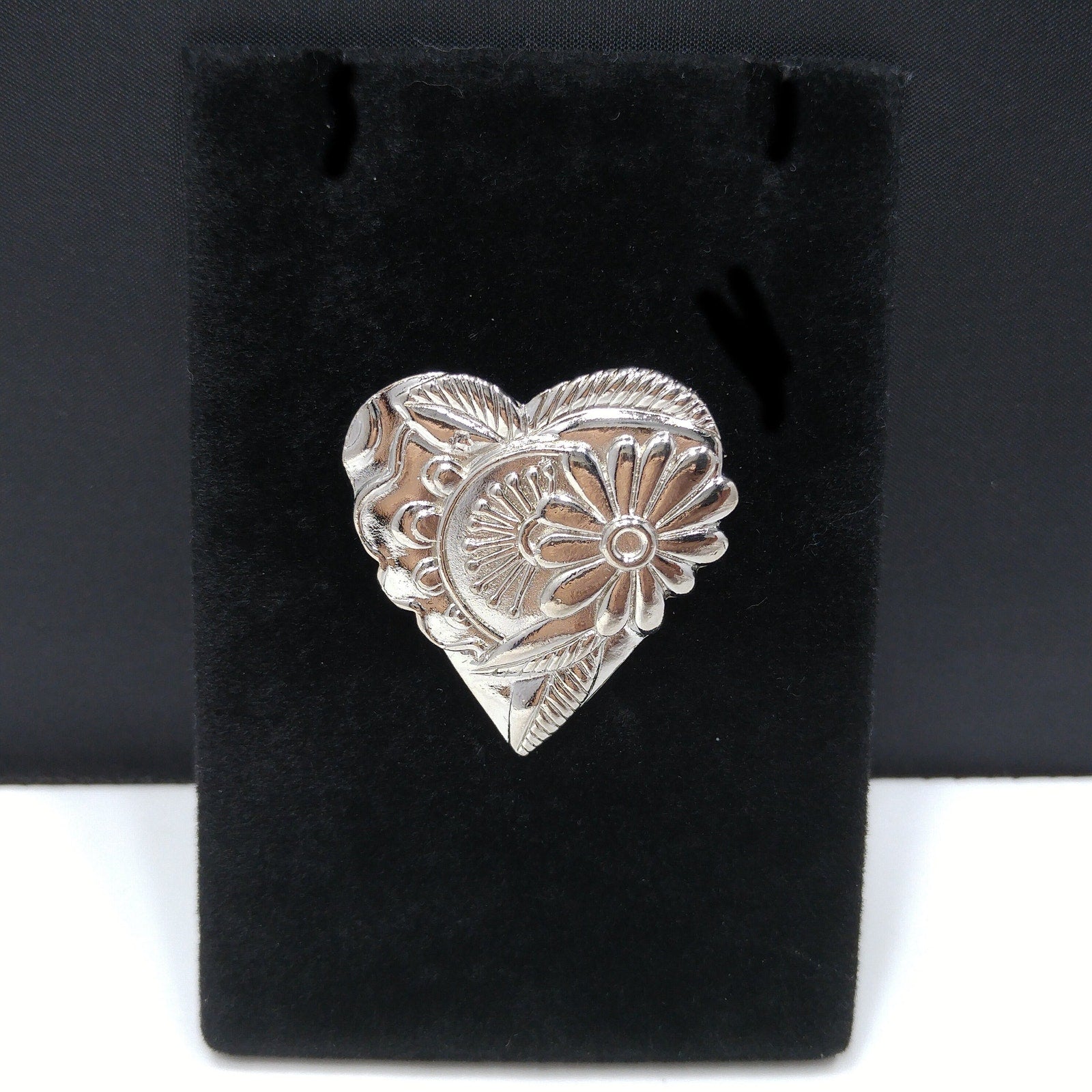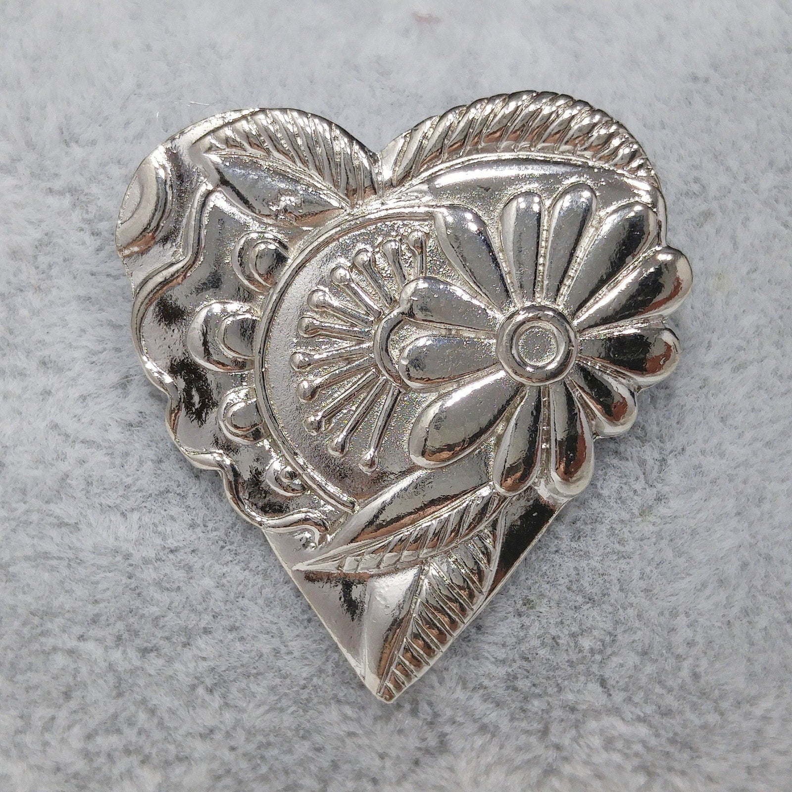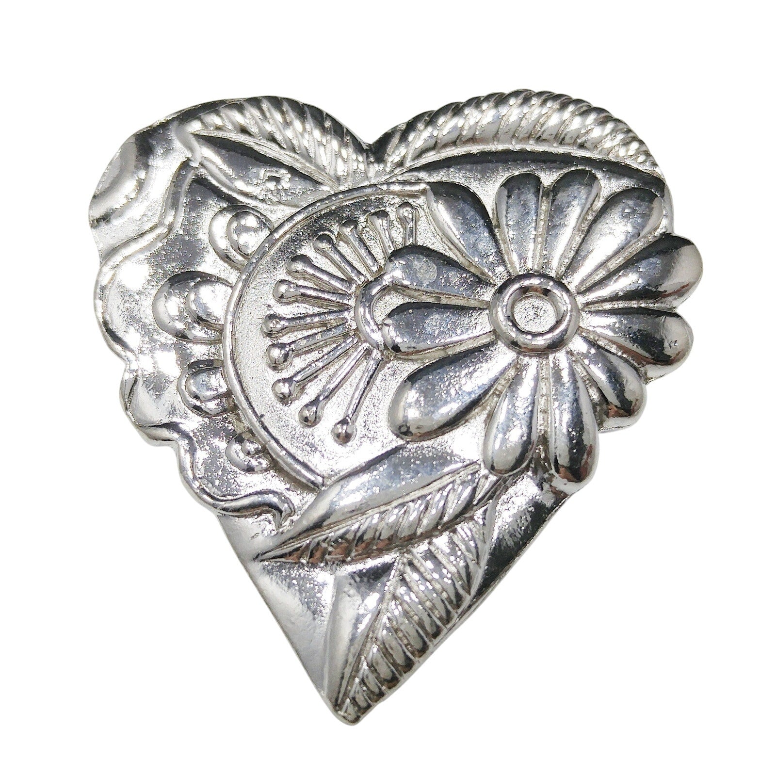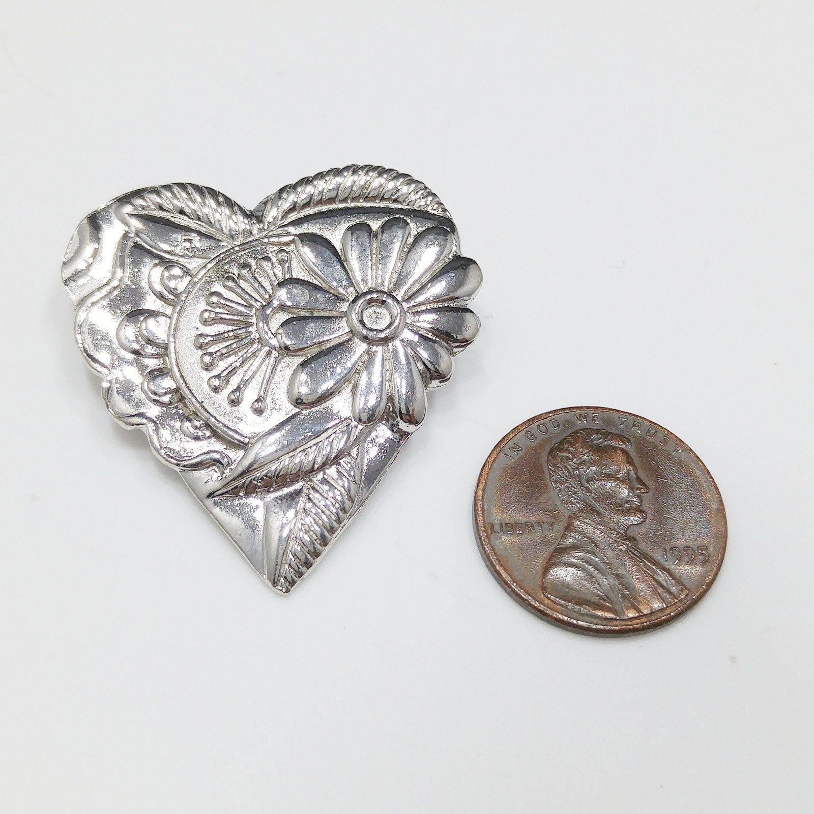 Vintage Laurel Burch 1993 Floral Heart Brooch, Silver Tone