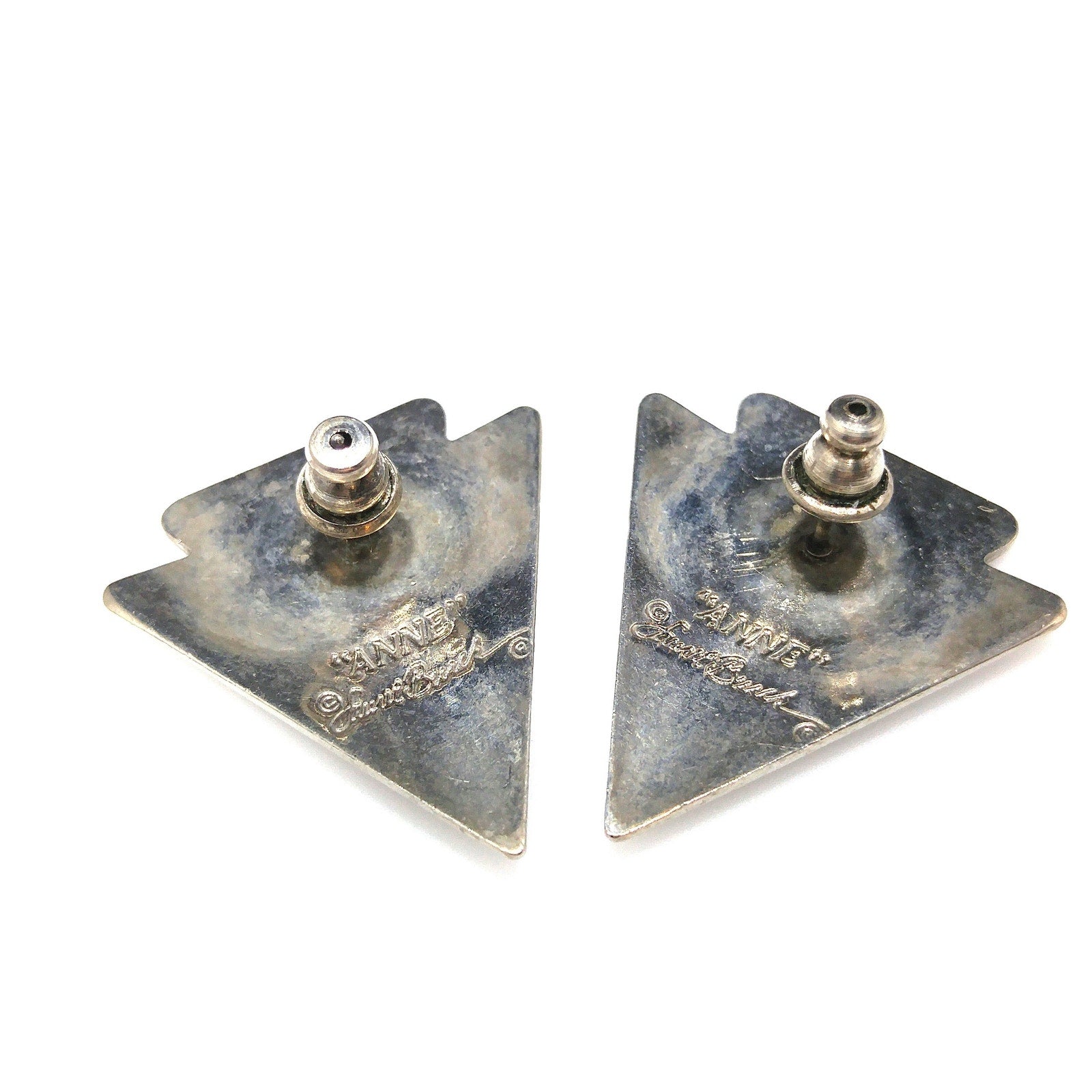 Vintage Laurel Burch "Anne" Triangle Post Earrings, Rhodium Plated, 1980s
